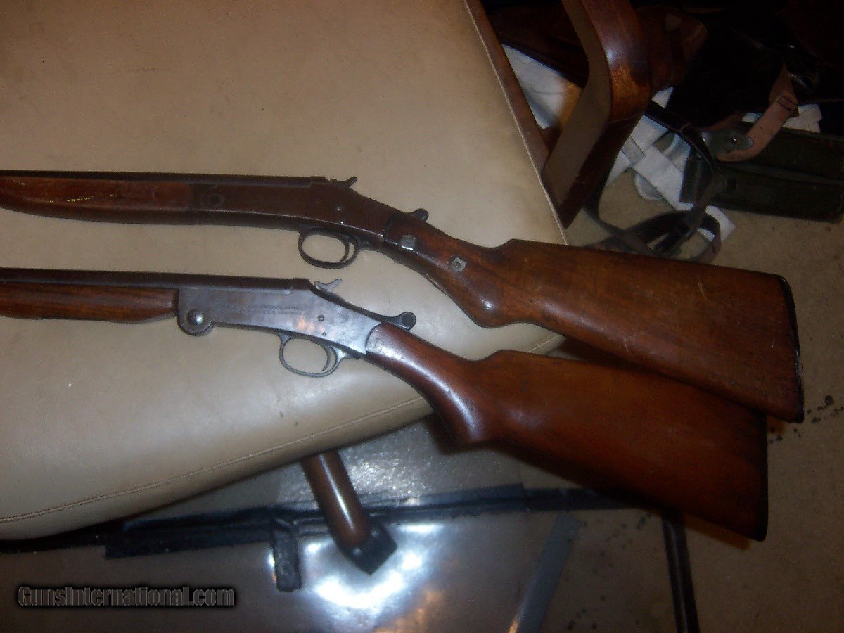 Description: the folding shotgun has a 21 inch barrel looks to have been shortened . in vg original condition with patina blue brown barrel and dull tiger striped case on receiver in original condition except for barrel nice bore with chip on bottom of pistol grip the other gun is free;;needs a new stock but wiil shoot as is;; both guns are shootable and work fine in dry fire $40 sh buy any 2 or more guns deduct 5% and get free shipping SOLD Curio/Relic: Yes Manufacturer: h&r |
