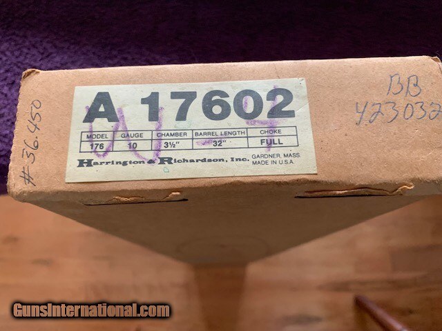 HARRINGTON & RICHARDSON MODEL 176, 10 GA., 32” FULL CHOKE, LIKE NEW IN THE BOX