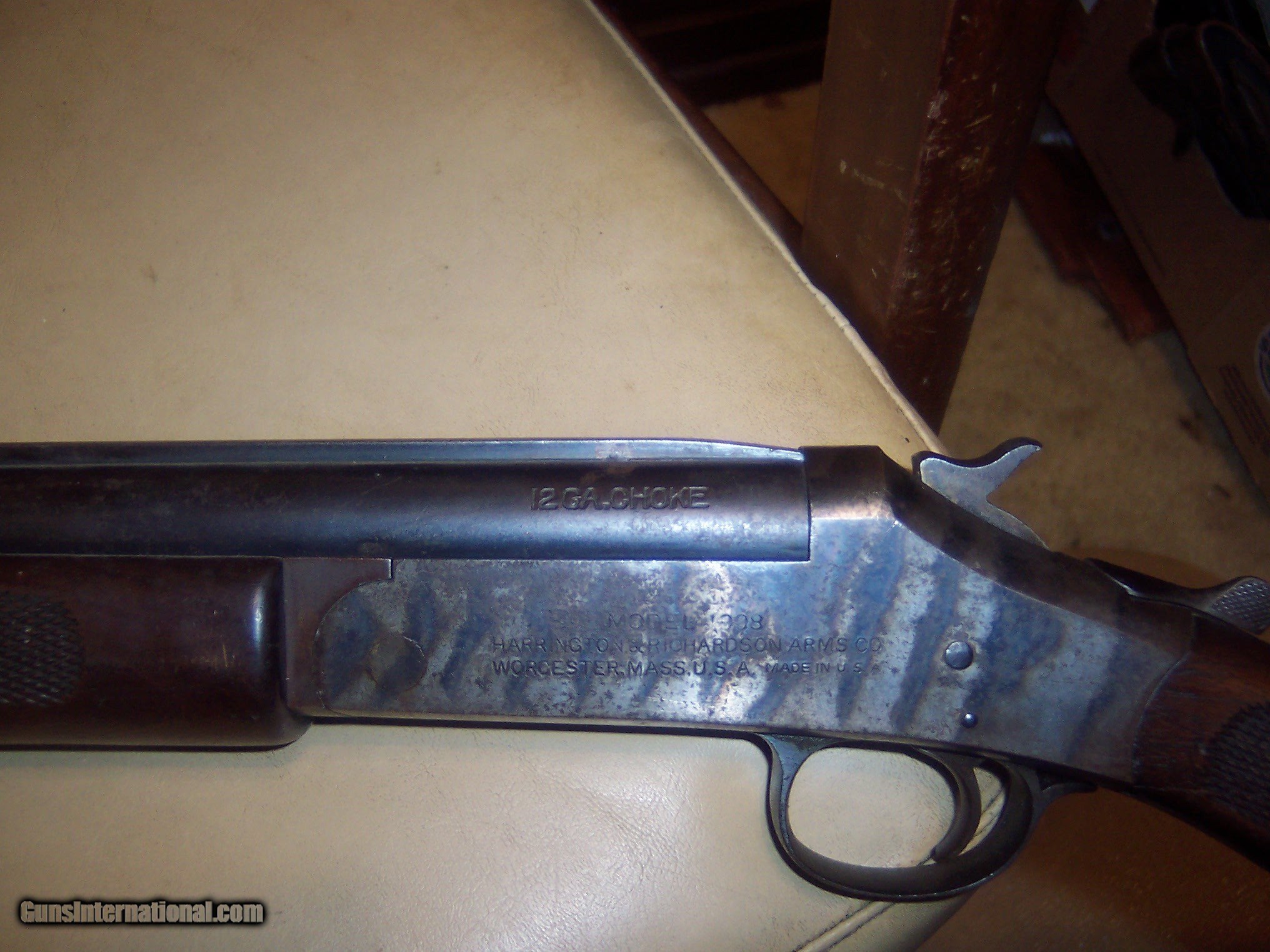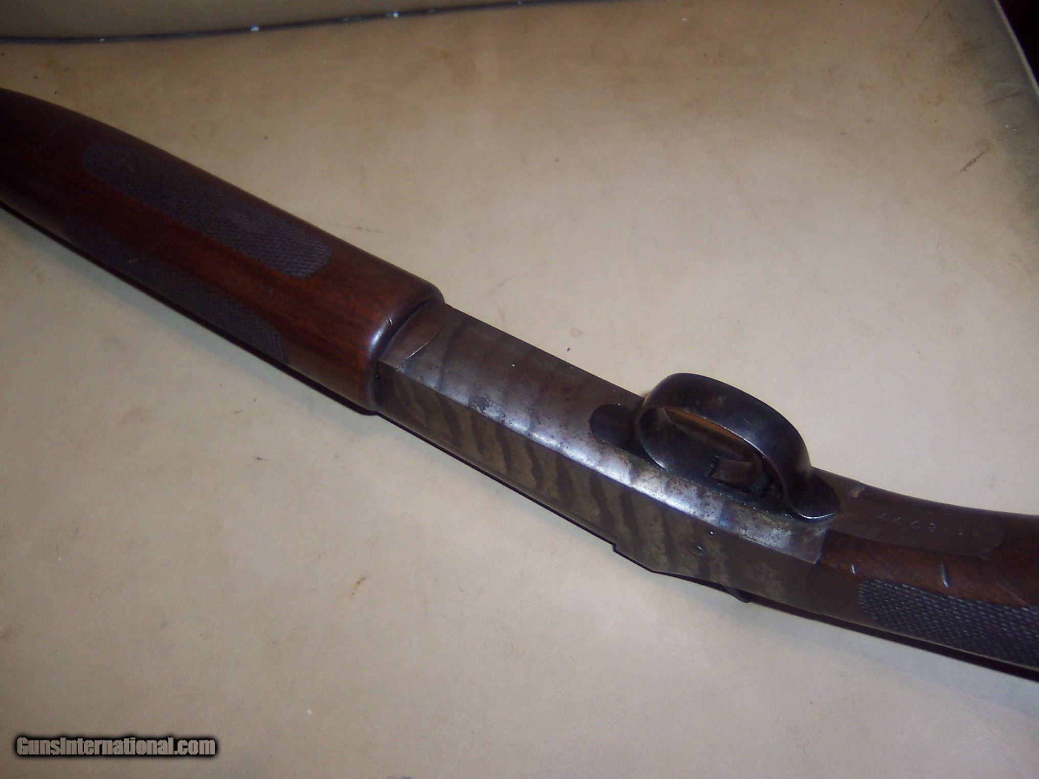 Description: 30 inch fine bore // serial #a448656/// 90 % dull blue // 80% case works fine and locks up tight / tight cracks in grip good hard to see // good collector but if shot a lot more cracks would get worse $50 sh SOLD Curio/Relic: Yes Manufacturer: h&r Model: 1908 |