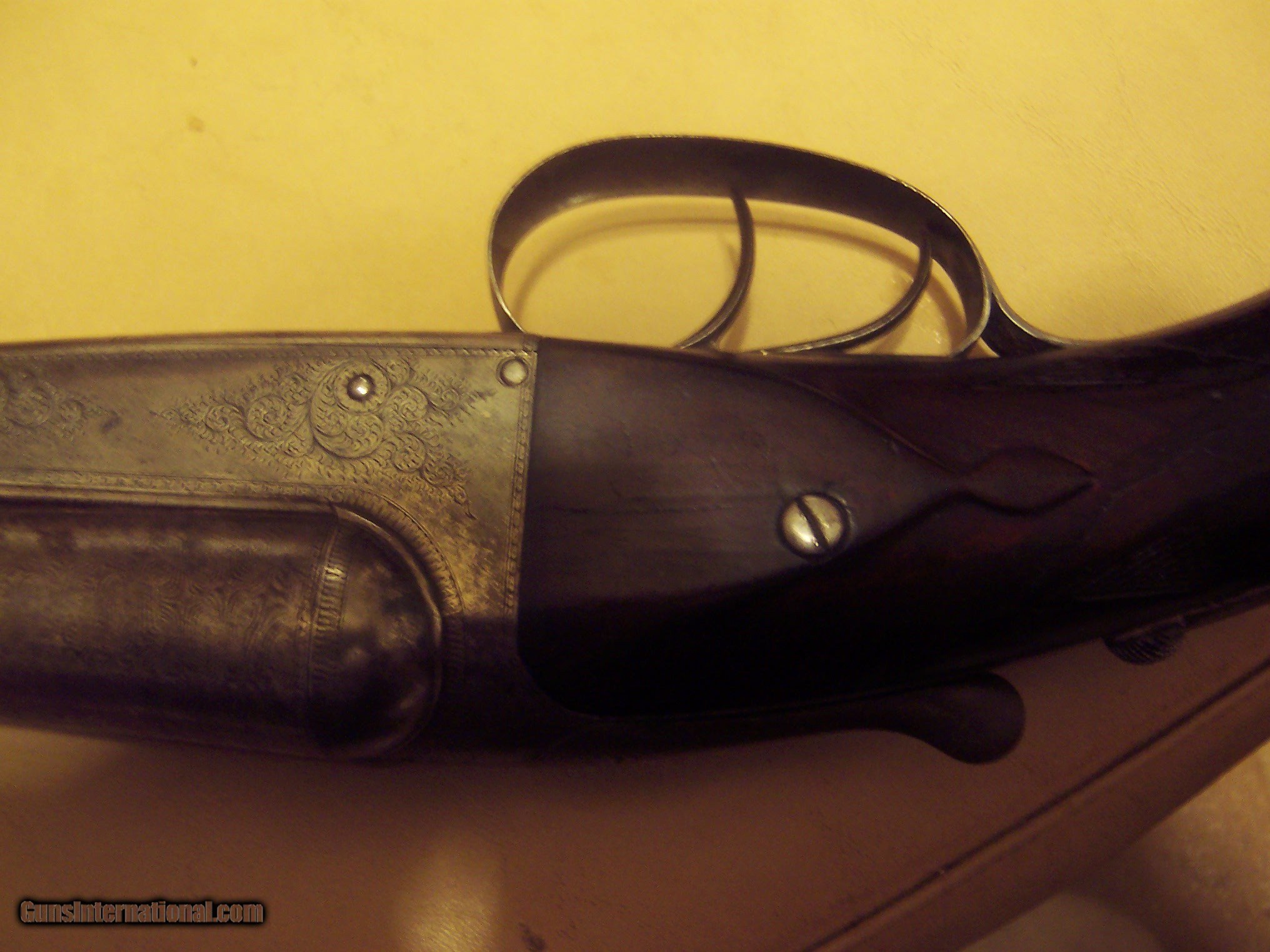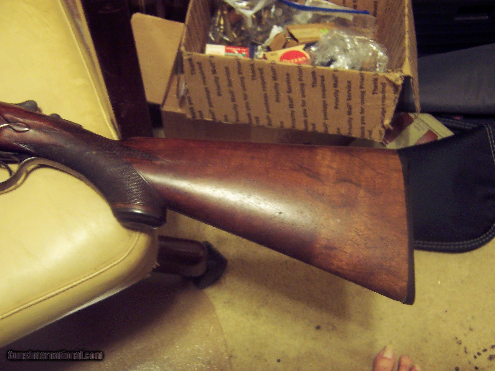 Description: one of the first if not the first hammerless american marked double shotguns sold in america made in england for h&r marked harrington & richardson worchester mas usa on rib... 12 ga 28 inch barrels nice shiney bores,, damascus barrels if you are a blsck powder shooter this could be for you locks up tight safety works checkering a little worn repaired chip in butplate gun in patina condition marked ansley and dealey on watertable,, stock bolt to tighted wood by tnag a profecional done job SOLD Curio/Relic: Yes Handgun Caliber: .17 Mach 2, .17 HMR, 4.6x30mm, 5.5mm Velo Dog Shotgun Gauge: 12 Gauge Manufacturer: harrington & richardson |