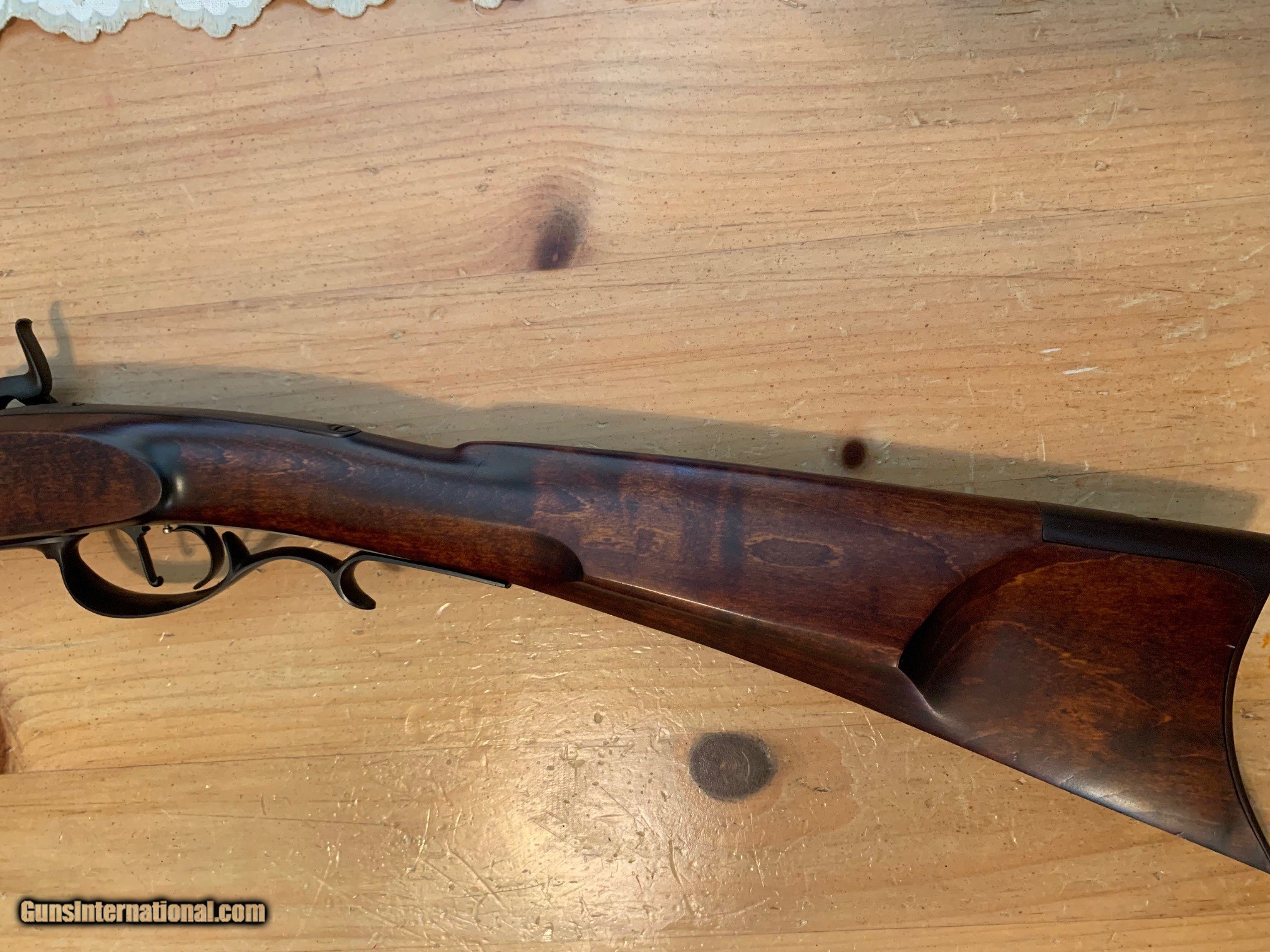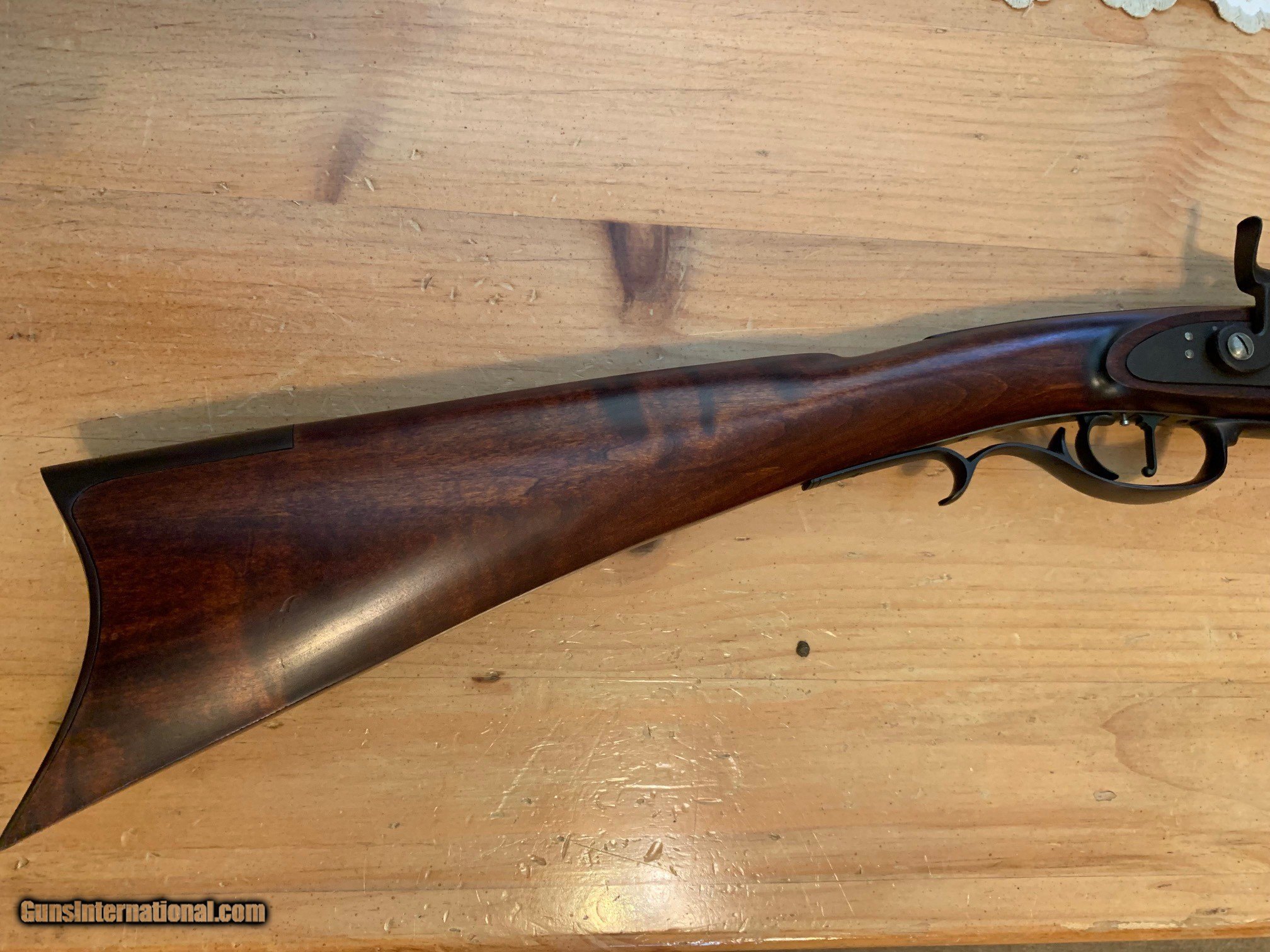 Description: RARE FIND!!!! Ted Hatfield Half Stock Mountain Rifle Very Early Missouri River Rifle Works (Pre-Pedersoli import) Lock: L&R Percussion Barrel: 32 inch Green Mountain, 1:70 Twist Caliber: 50 Serial Number: H0007 Lock marked: HATFIELD Condition is 99%, Rifle is UNFIRED!! $1350.00******SOLD PENDING FUNDS****** SOLD |