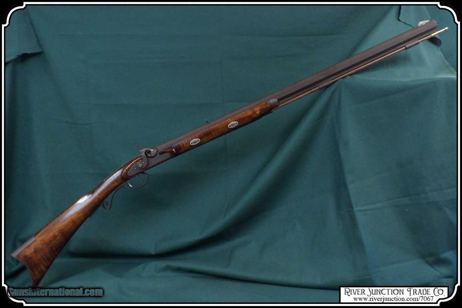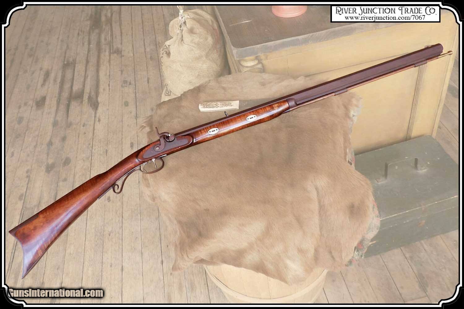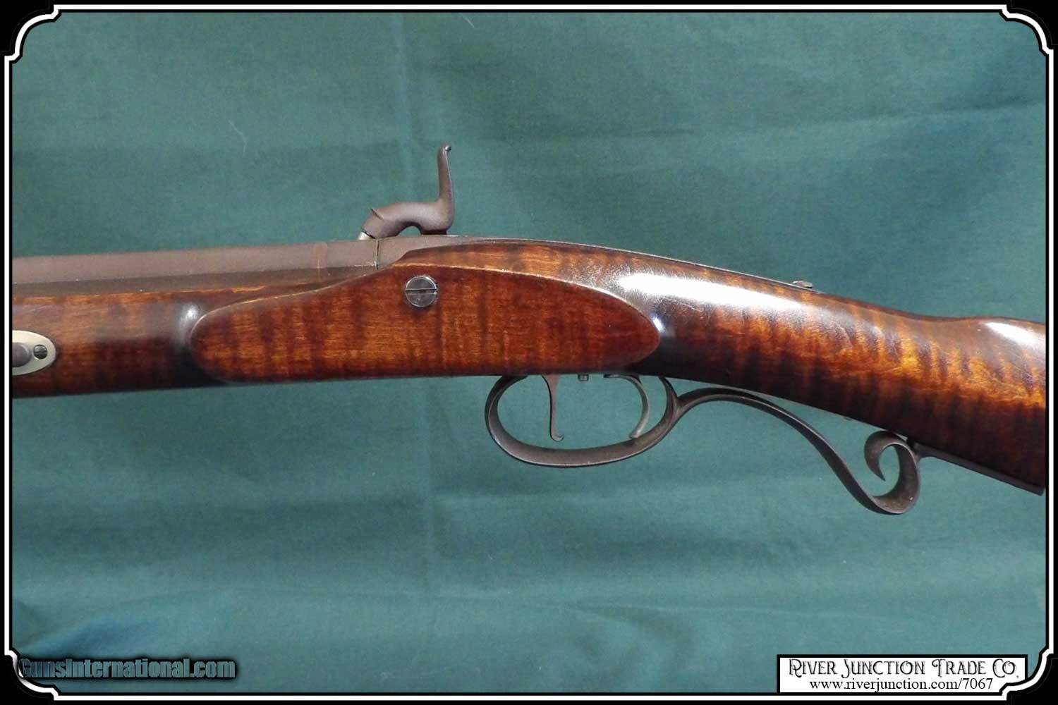 Description: This is an American made Hatfields from the late 1970's and far supieor than the Pedersoli import made under the Hatfield name. The Pedersoli Hatfields have "the black powder warning on the barrel" this one does not. It is the original American made gun. You don't see these come up for sale. This .54 caliber rifle has a perfectly browned octagon 1" x 32" barrel with 1:66 twist and fitted with fixed sights. The P+ grade Maple stock is mounted with browned steel and German silver furniture. The L&R percussion lock with Hatfield stamped on the plate is activated by L&R double set triggers. Length of pull is 14-1/2", overall length is 49”, and weight is 8.8 lbs. Good wood to metal fit - made by Tom Hatfield. This Rifle is a shootable recreation of the golden era of American made historic percussion and flint rifles and likely will be the last of the breed. SOLD |