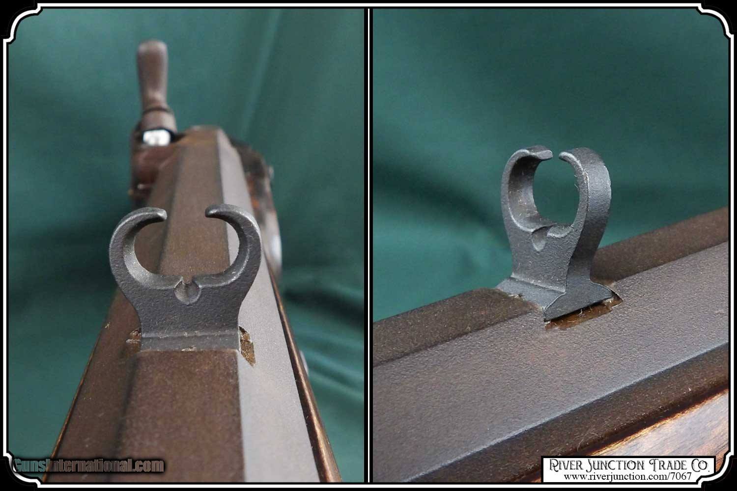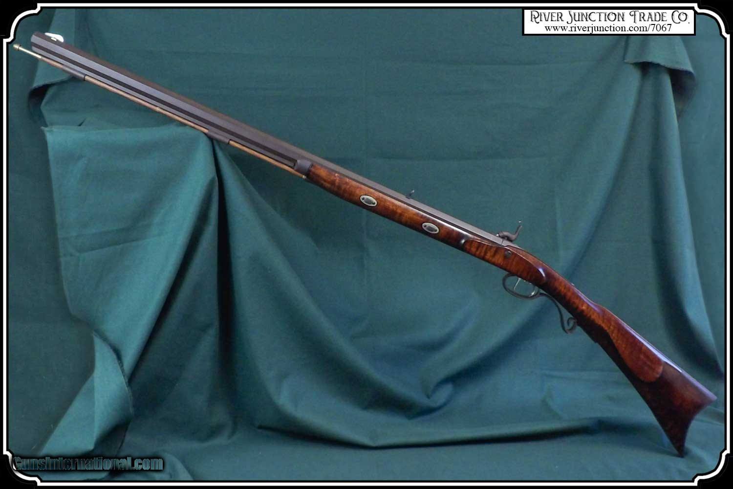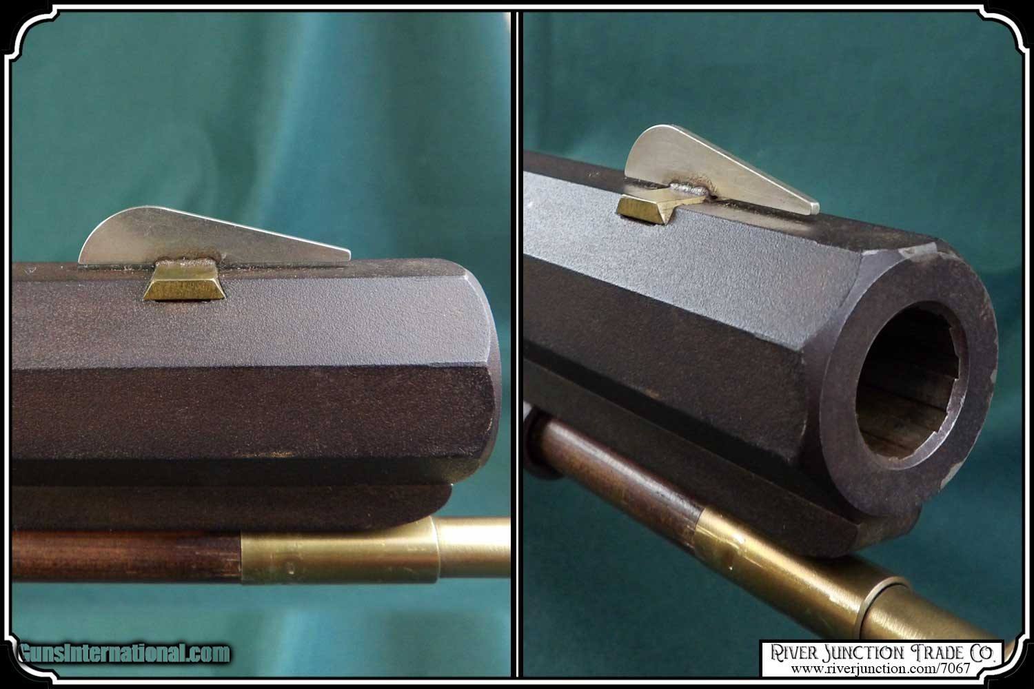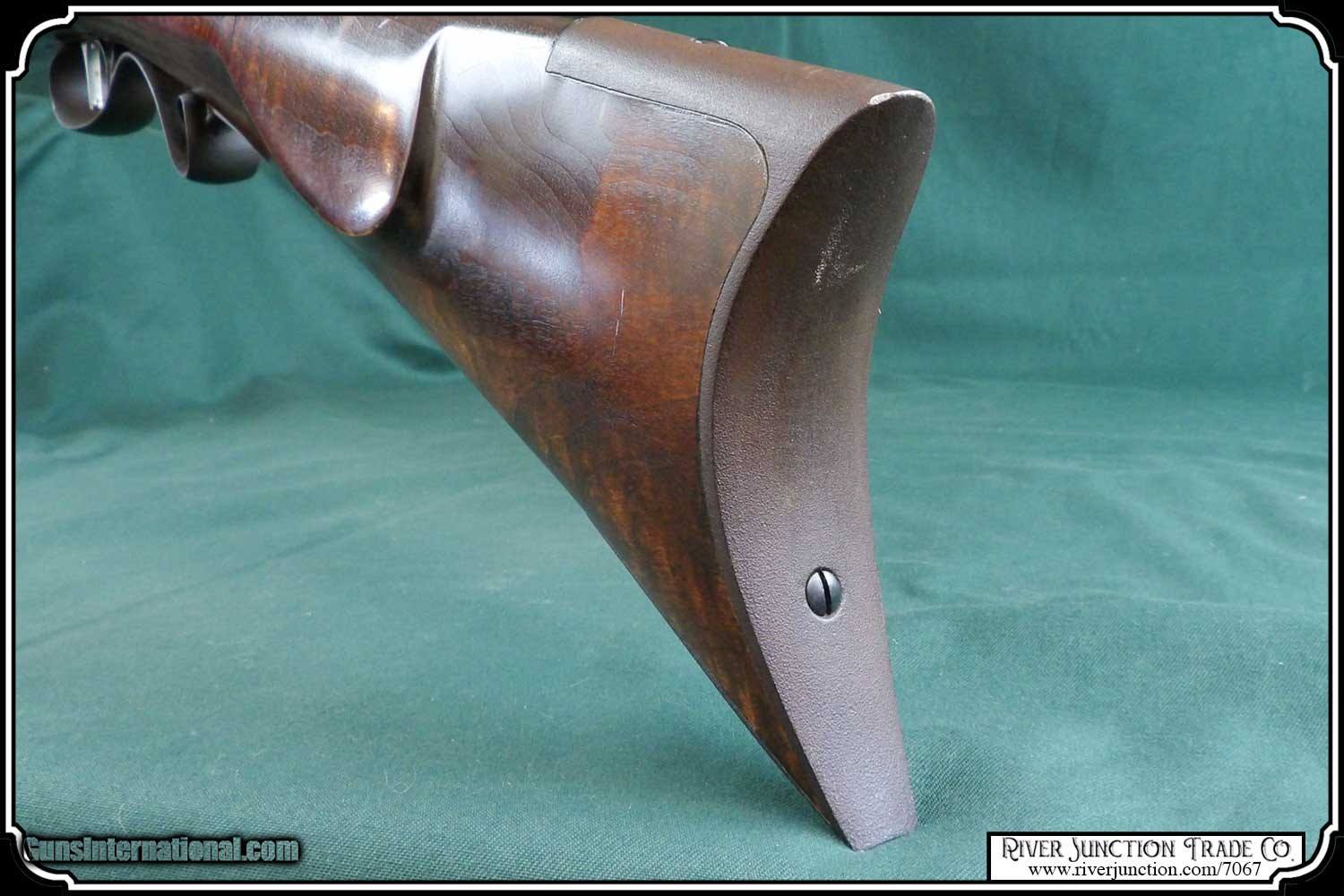 Description: This is an American made Hatfields from the late 1970's and far supieor than the Pedersoli import made under the Hatfield name. The Pedersoli Hatfields have "the black powder warning on the barrel" this one does not. It is the original American made gun. You don't see these come up for sale. This .54 caliber rifle has a perfectly browned octagon 1" x 32" barrel with 1:66 twist and fitted with fixed sights. The P+ grade Maple stock is mounted with browned steel and German silver furniture. The L&R percussion lock with Hatfield stamped on the plate is activated by L&R double set triggers. Length of pull is 14-1/2", overall length is 49”, and weight is 8.8 lbs. Good wood to metal fit - made by Tom Hatfield. This Rifle is a shootable recreation of the golden era of American made historic percussion and flint rifles and likely will be the last of the breed. SOLD |