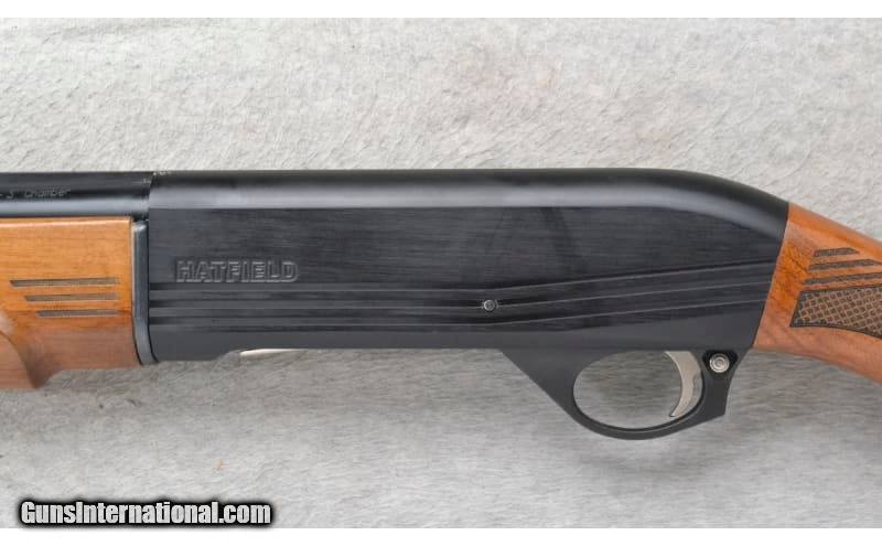 Description: This Hatfield Model SAS is a right hand semi-auto shotgun in 12 Ga. It has a 28 inch barrel with a ventilated rib. A red high visibility front sight. With a 3 inch chamber it comes with choke tubes. The butt stock is a checkered grip hardwood pistol grip. The forearm is a checkered grip hardwood with finger grooves. 12 Gauge SOLD Chambers: 3 inch. Metal Condition: Good. Some adhesive residue on the barrel. Bore Condition: Bright and shiny. Barrels: 28 inch barrel with a ventilated rib. Stock Dimensions: LOP 14 1/2 inches. Fore End: Checkered grip hardwood with finger grooves. Butt Pad: Black rubber recoil pad. Weight: 8 lb. 6 oz. Sights: Red high visibility front. Chokes: Modified choke tube in the gun. Comes with choke tubes. Item Location: Richfield, WI |