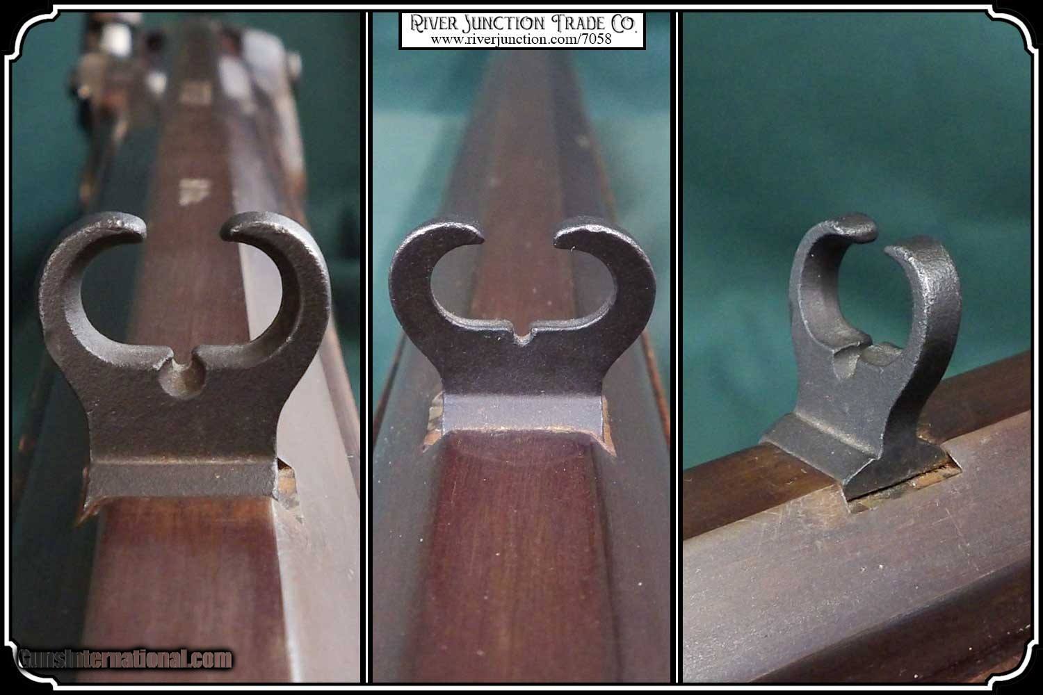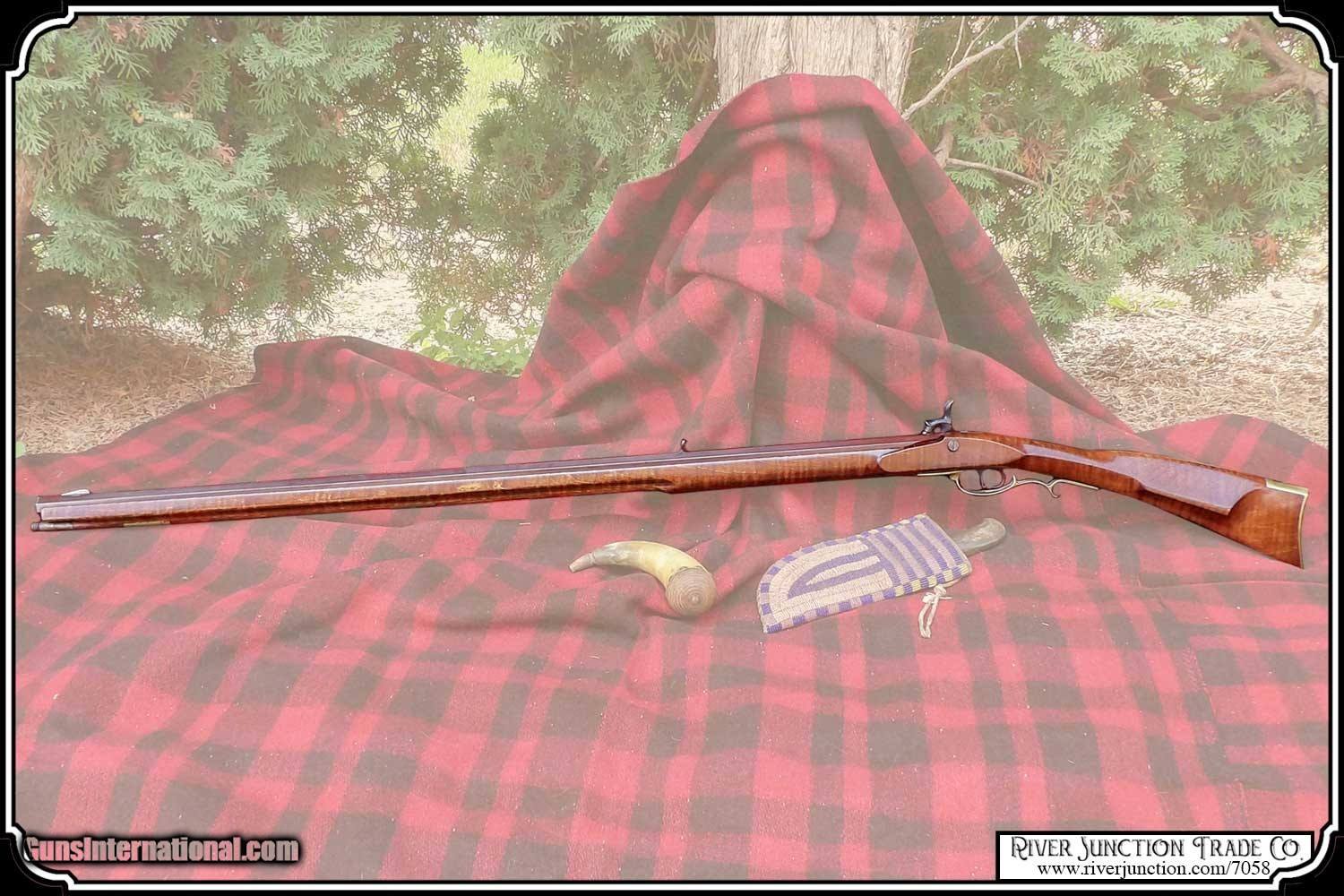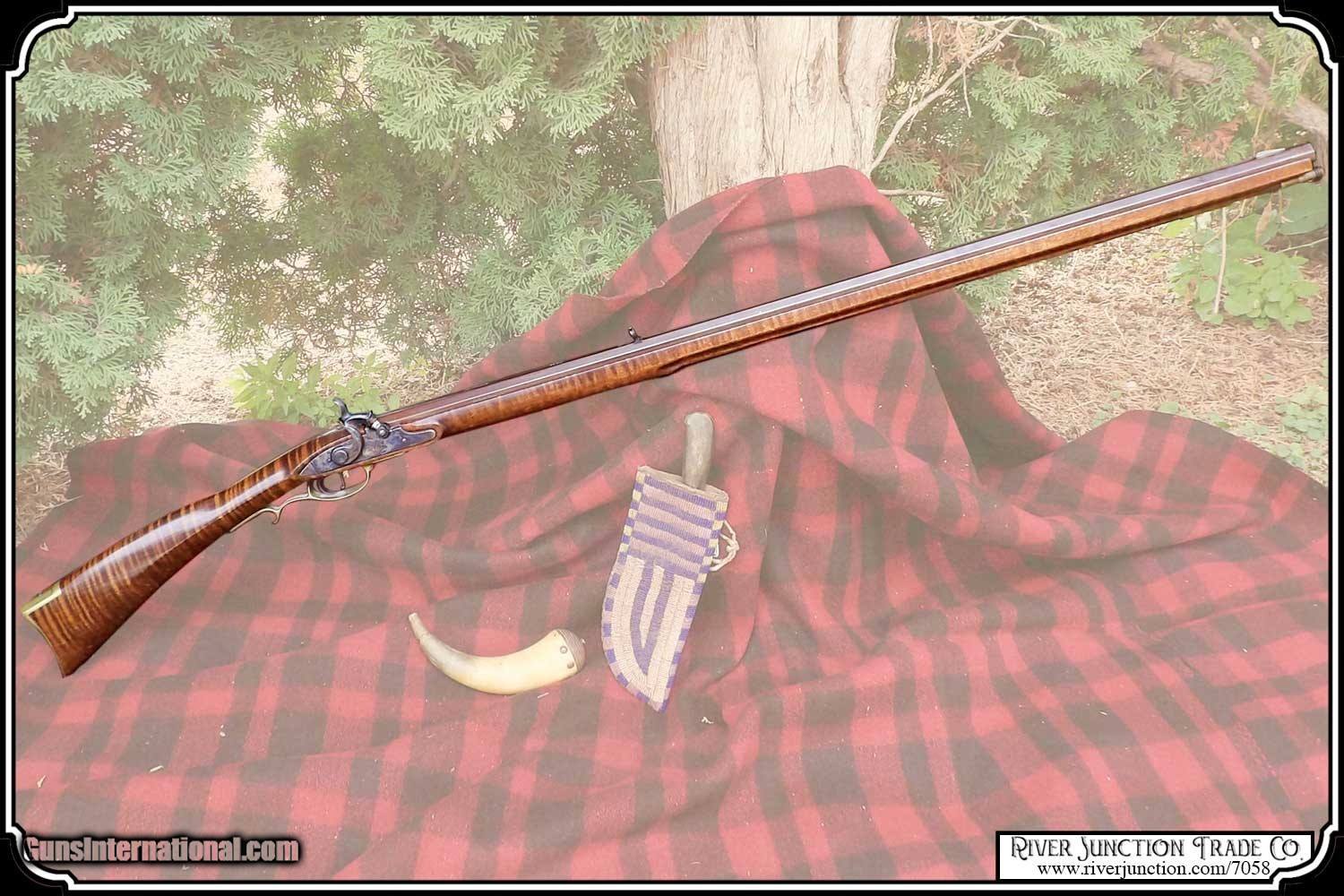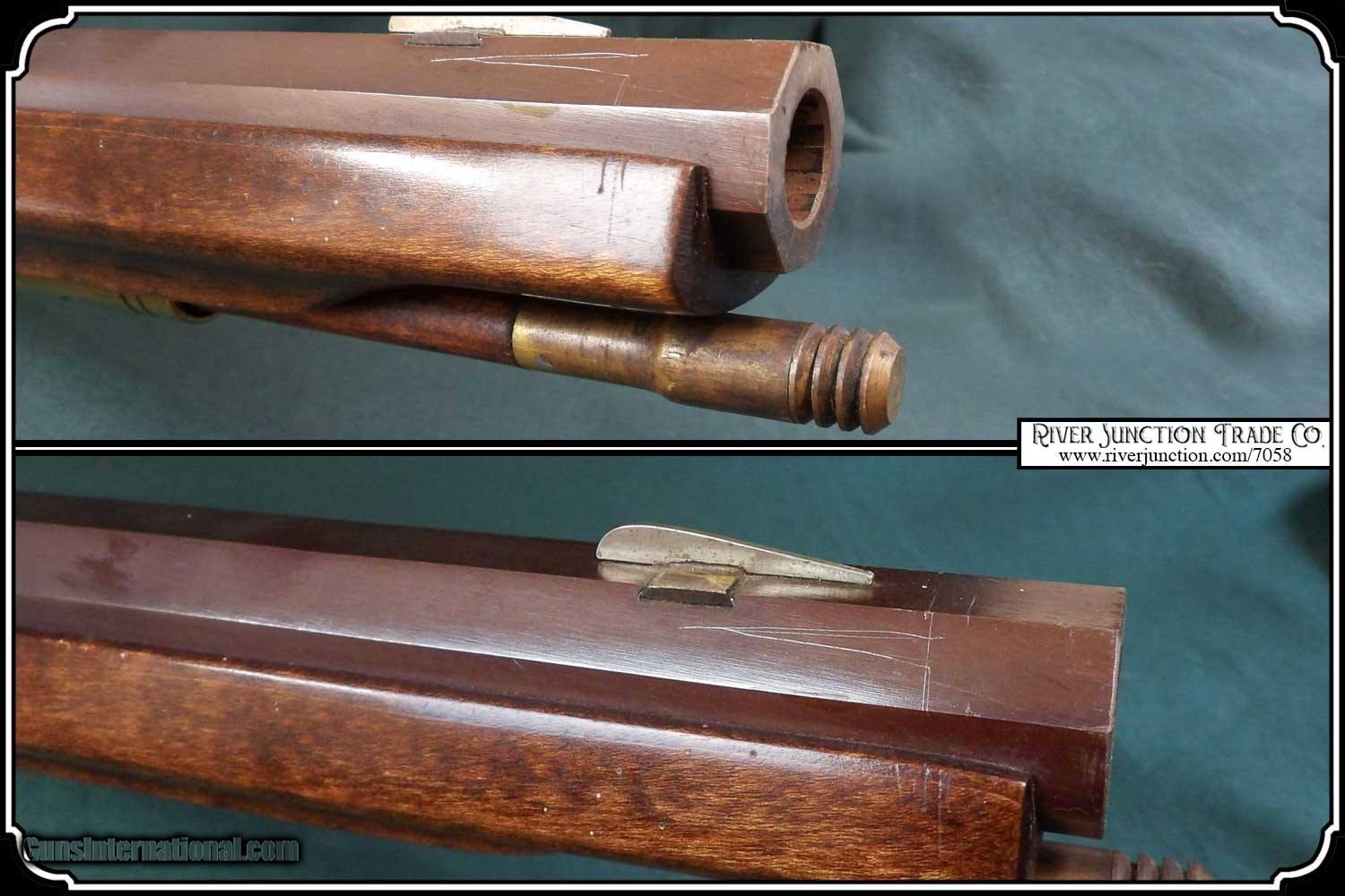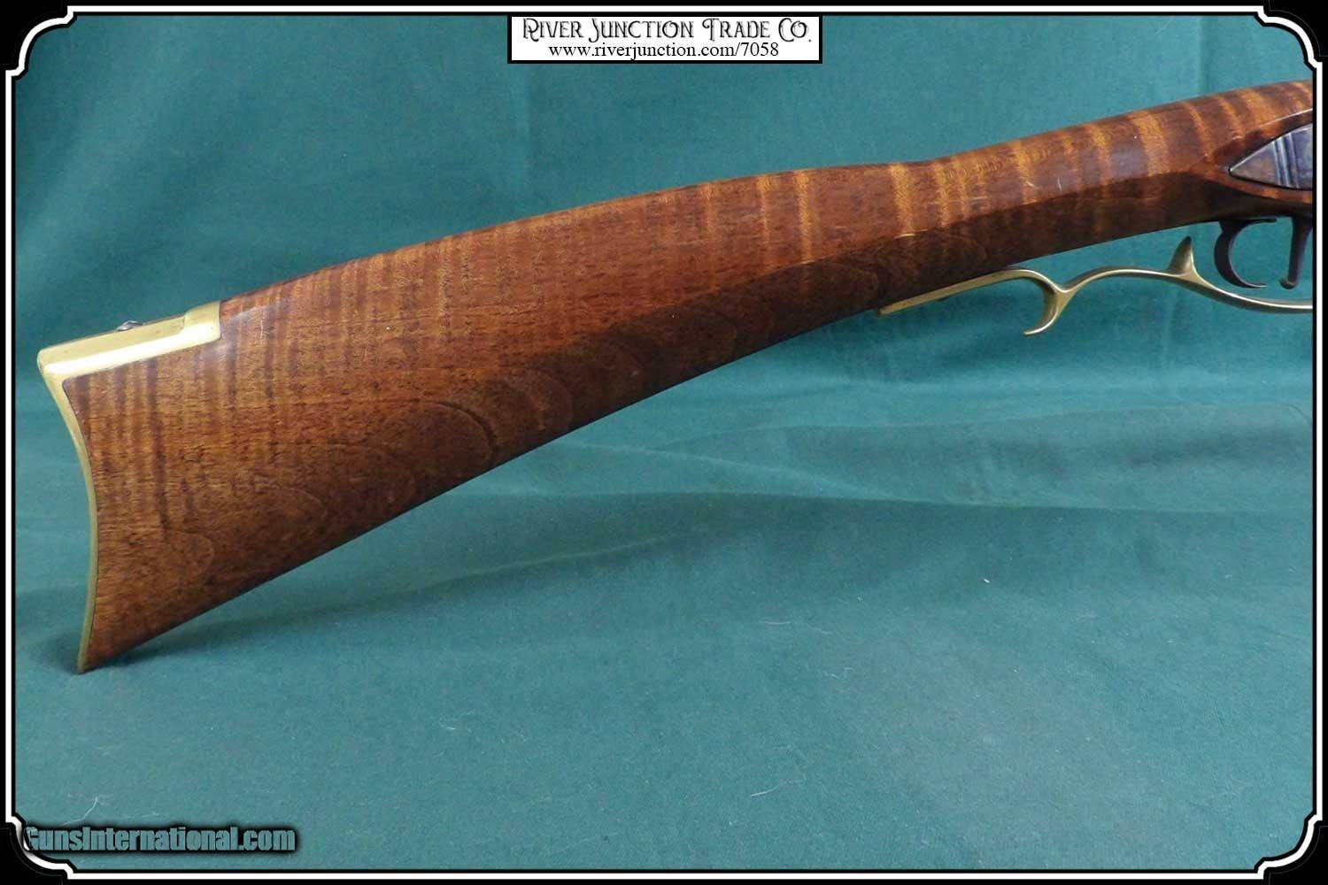 Description: Ted Hatfield Full-Stock Percussion Kentucky Style Long Rifle Back in the late 1970s, Ted Hatfield began building a pretty good reproduction Kentucky-style rifle in St. Joseph, Missouri and this is one of those. This Hatfield .50 caliber percussion full-stock rifle with strongly tiger striped stock, buckhorn sights, and double set triggers. The locks and triggers are made by L & R Lock Company. The barrel and the lock have Hatfield stamped on them. The overall length is 55 inches with a 14 inch pull and 3+-inch drop at the heel. This is a rifled octagonal.50 calibers with a 1:70 twist. The 39 inch barrel is browned. Very good plus. The bore is very good, and the action is crisp SOLD |