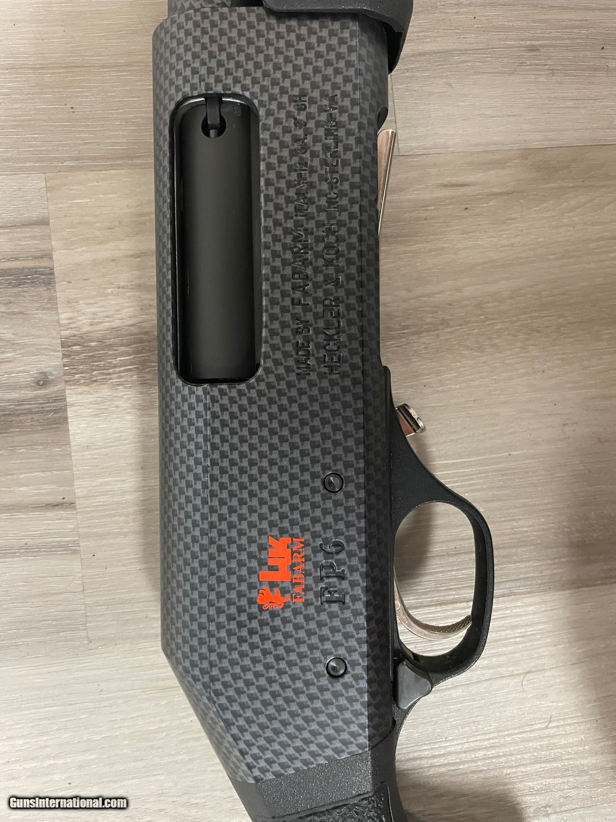 Description: Guns Listing ID: 634675 H&K Fabarm FP6 Shotgun w/Carbon Fiber finish 12 GAUGE chambered for 3\". THE GUN HAS BEEN SHOT VERY LITTLE. COMES WITH FACTORY PLASTIC CASE . The Fabarm FP6 is a pump-action combat shotgun that was manufactured by the Italian firearms company Fabbrica Bresciana Armi S.p.A. (FABARM) and merchandised by Heckler & Koch. It was intended for civilian and law enforcement use. SOLD Manufacturer: HECKLER & KOCH Model: FP6 Carbon Condition: Used - Non-Certified Barrels: 18 BARREL Gauge Info: 12 GA Finish: CARBON FIBER |