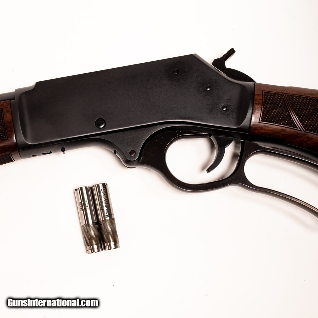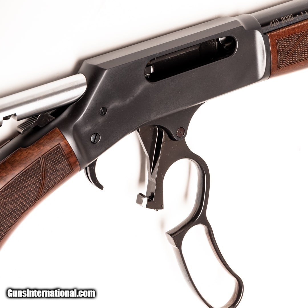 Description: Guns Listing ID: 608549 For the home and the field, this Henry H018-410 is a lever-action 410-bore shotgun made to protect and provide. Simple yet rugged, it is built with a steel frame and barrel and dark straight-grained American walnut furniture. Purchase includes full, improved cylinder, and modified chokes. SOLD Manufacturer: ATKIN, HENRY Model: H018-410 Condition: Used - Certified Barrels: 23.5 BARREL Finish: BLUED |