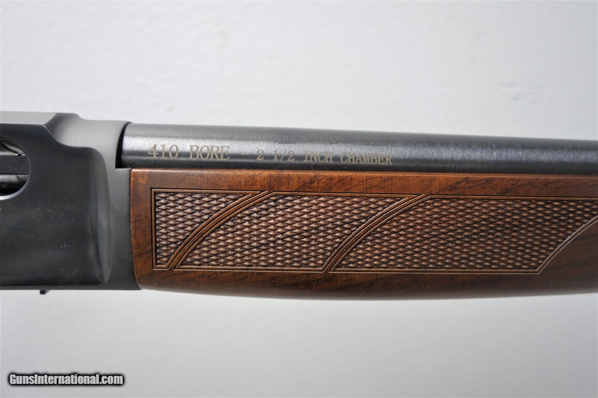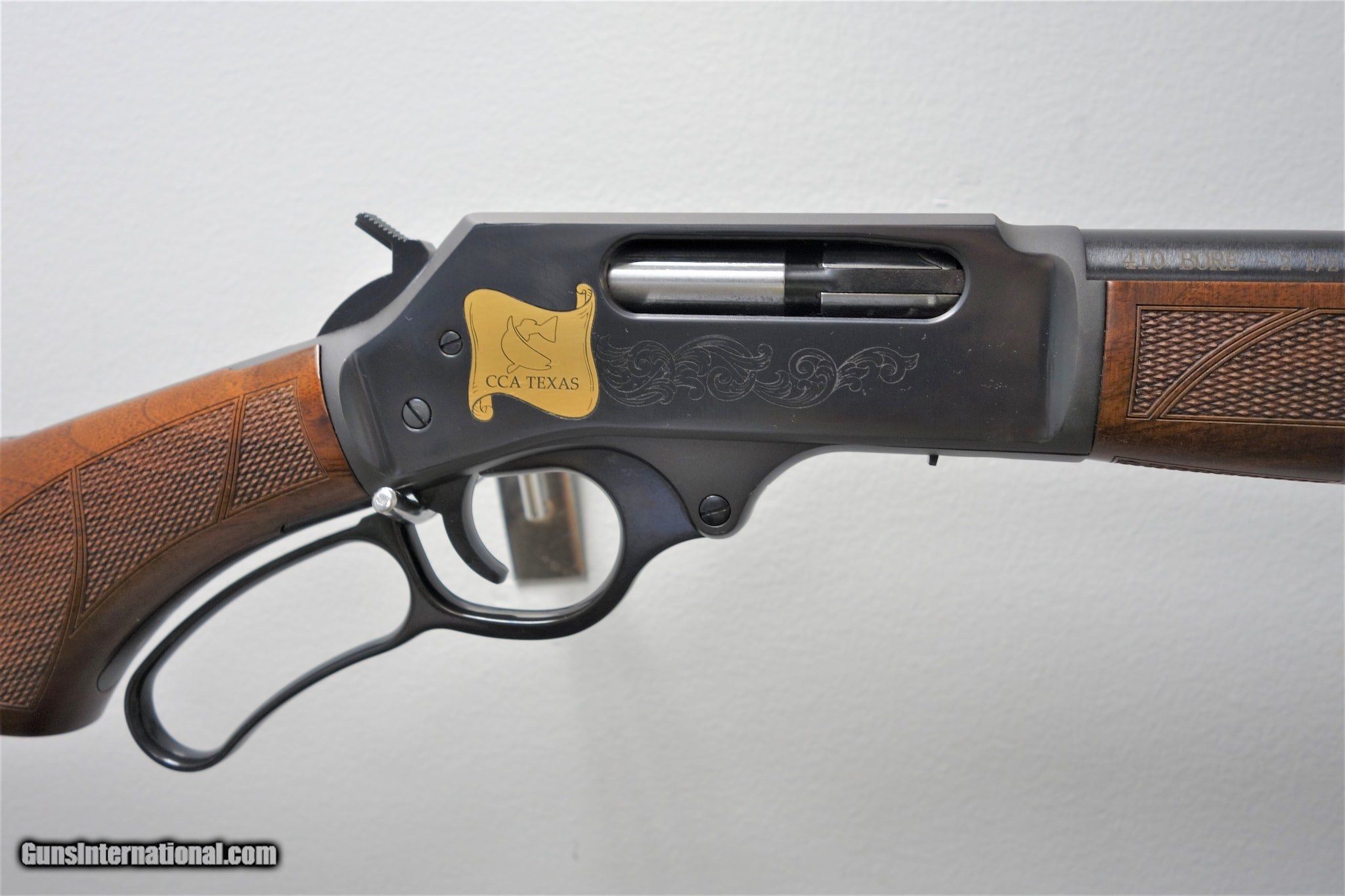Description: Guns Listing ID: 557108 Henry‚‚s Lever Action Texas CCA edition 410 shotgun. Its American walnut furniture is set off by intricate, deep checkering that will ensure a firm purchase on the stocks. A semi-buckhorn rear and ivory bead front sight accompanies a 24\" round blued steel barrel to deliver the accuracy. From whitetail hunting to days at the range, to standing as a favorite show-piece in the gun cabinet, the Lever Action is a must-have for any Henry aficionado. Brand Henry Category Shotguns Gauge 410 Gauge Barrel Length Range 24\" to 24.99\" Model: H018-410 Lever Action / Tube Fed Stock Finish Group Brown Capacity 6+1 Stock Material Wood Action Lever OAL 42.75\" Hand Right Sights Brass Bead Front Size Full Size Chamber 2.5\" Barrel Finish Blued Choke Configuration Invector Application Field Chokes Included Full Receiver Material Steel Safety Transfer Bar Barrel Description 24\" Round Barrel Length 24\" Length of Pull 14\" Max Capacity 6 Receiver Finish Blued Stock Finish American Walnut *Firearm only - no box SOLD Manufacturer: HENRY Model: H018-410 Condition: Used - Non-Certified Barrels: 24 BARREL Gauge Info: 410 BORE Finish: BLUE |