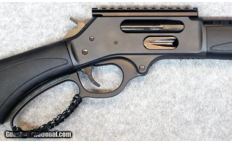 Description: Henry ~ H018X-410 ~ Chambered in .410 Bore. Is a lever action 6 + 1 capacity shotgun with modern enhancements. Features a 20" choke ready barrel, with a full chokes installed, paired with a fiberoptic front sight and a picatinny rail. Black receiver features side gate loading and is complimented with black polymer furniture. Comes with box. .410 Bore SOLD Chambers: .410 Bore. Metal Condition: Very good condition. Bore Condition: Very good condition. Barrels: 20" inches. Triggers: 8 pounds. Stock Dimensions: 14" LOP. Fore End: Polymer. Butt Pad: Rubber. Weight: 7.5 pounds Sights: Fiberoptic front sight. Chokes: Full Choke. Item Location: Acworth, GA |