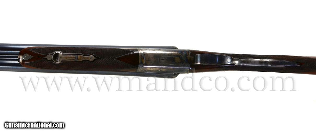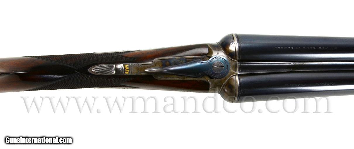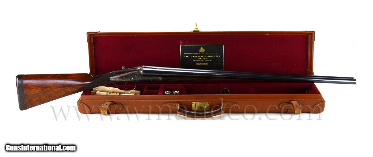 Description: Holland & Holland 12 Gauge Dominion Ejector. The gun is clean and was colored at St Ledger and restored through Holland, London in the early 90s. The gun has been shot very little since then. The action is clean with 95% case colors, double triggers, tight on the face, border engraving is sharp, triggers are great. The barrels are ooriginal Holland with a swamped rib and Nitro proofs, 2 1/2" chambers, The bores are clean .740/.740 to proof, perfect blue and the walls are good. The stock is straight hand/ splinter with nice chequering and finish, 14 3/8" length of pull, 2" drop at heel, 1 1/2" drop at comb, the gun has nice balance overall. 6lbs 6oz. Cased. 0217641 $8500.00 Always looking for Pre War American Sporters, RG Owen, Neidner, Sedgley, Wundhammer, Howe, Seymour Griffin, Hoffman, Springfield '03, Mauser, Fred Adolph, Griffin & Howe and Damascus barreled English and continental hammerguns, Damascus barreled American shotguns. Call me at 214-789-2524 with any questions! SOLD Curio/Relic: Yes |