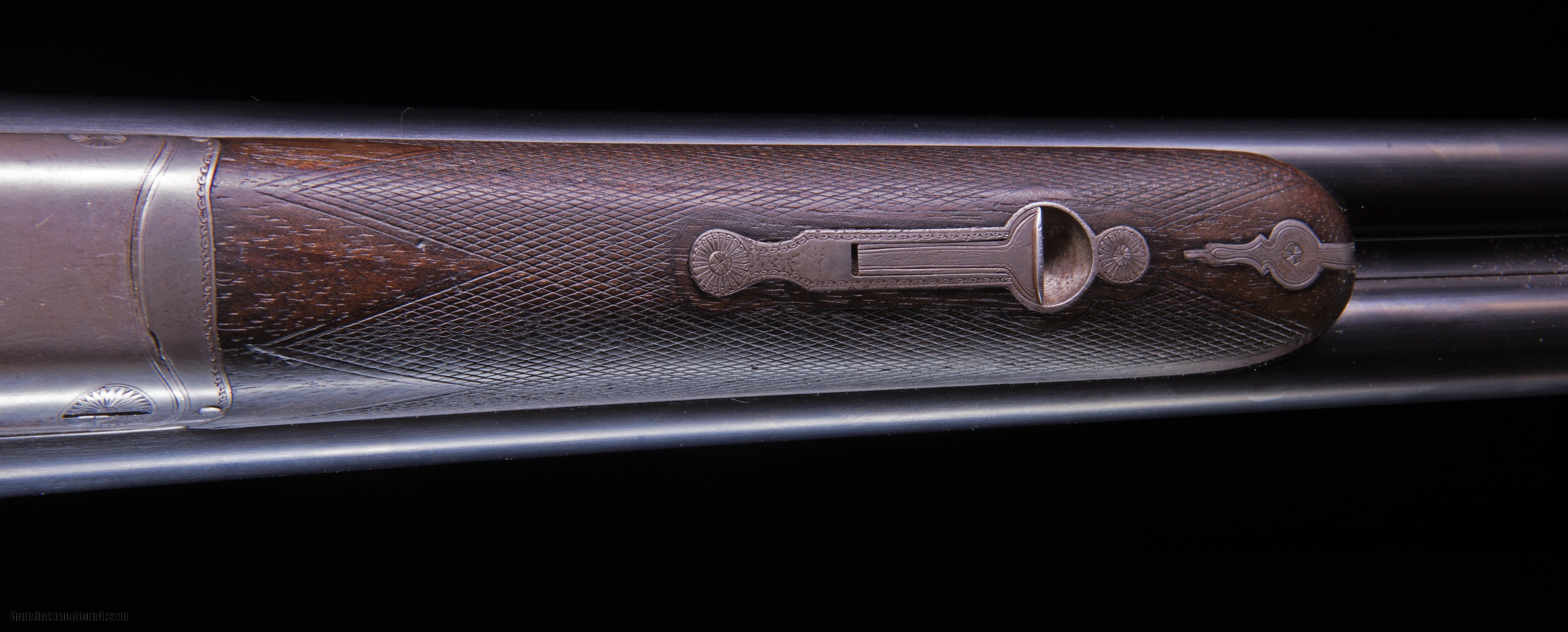 Description: Hammerless Sidelocks - Great barrels, great walls, great chokes and stock dimensions. What more could a person want? We shot this gun on clays recently and both Jason and I really enjoyed it. It was built about 1904. *** Note: To see this gun with high resolution photos and a zoom-in feature, go to the vintagedoubles main site and search for the gun ID: 3379 or browse the main site to see our full gun collection. SOLD Manufacturer: Holland & Holland back action sidelock for a very nice price and ready for the field! Model: Dominion Serial Number: 19929 Ejectors: No Barrels: 30 Barrel Type: Steel Action: Sidelock ejector Gauge Info: 12 gauge Stock Comb: 1 7/16 Stock Heel: 2 3/16 Stock Cast: 1/4 LOP: 15" to checkere Weight: 6 lbs. 10 oz. Choke Left: .018 Mod Choke Right: Cylinder Proof:Nitro: 2 1/2 Minimum Wall Thickness Left: .028 Minimum Wall Thickness Right: .028 |