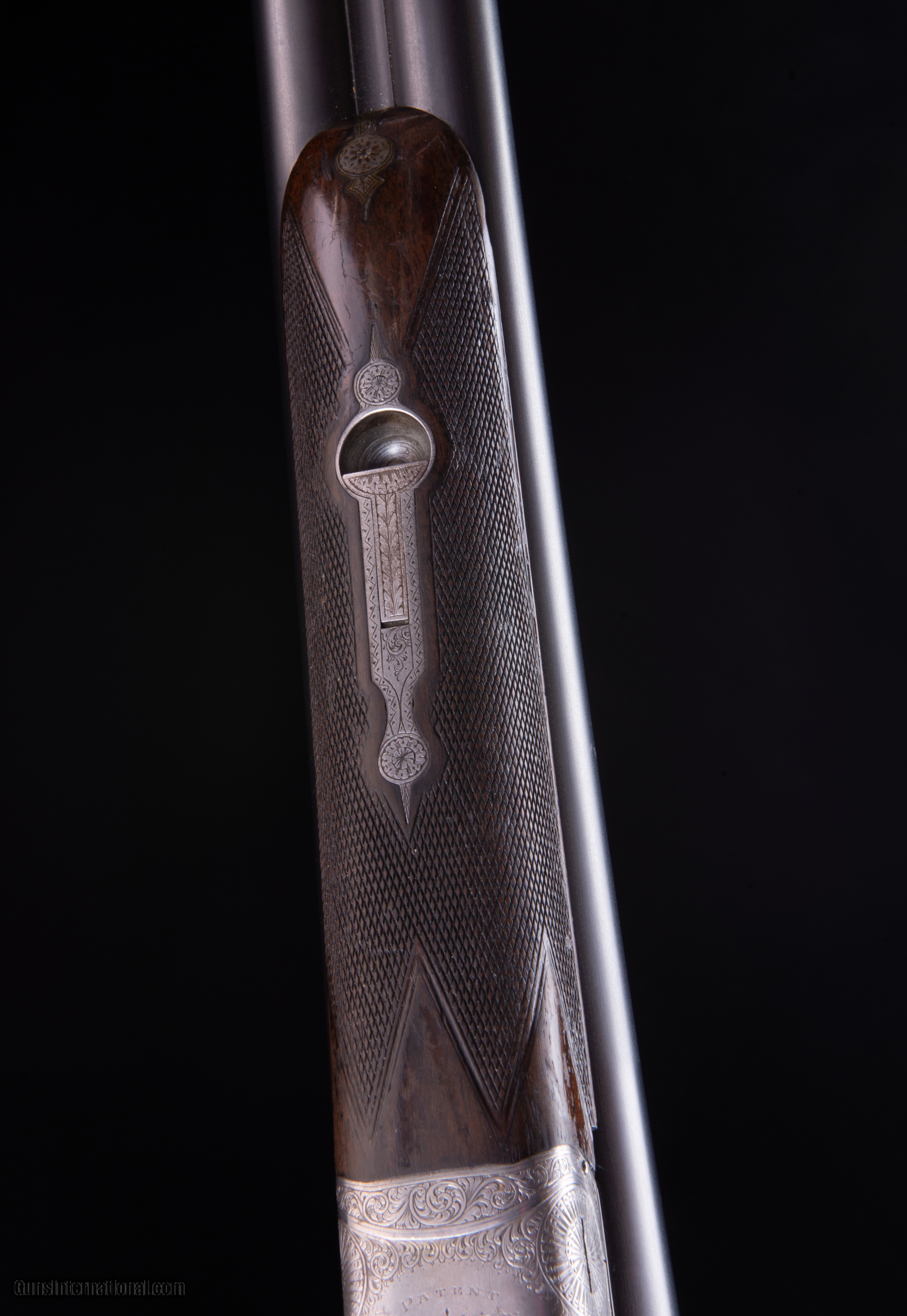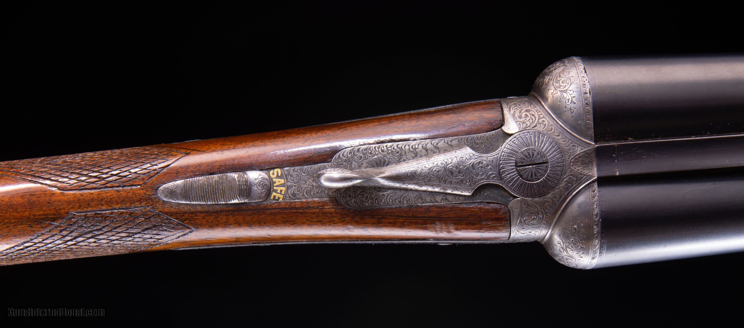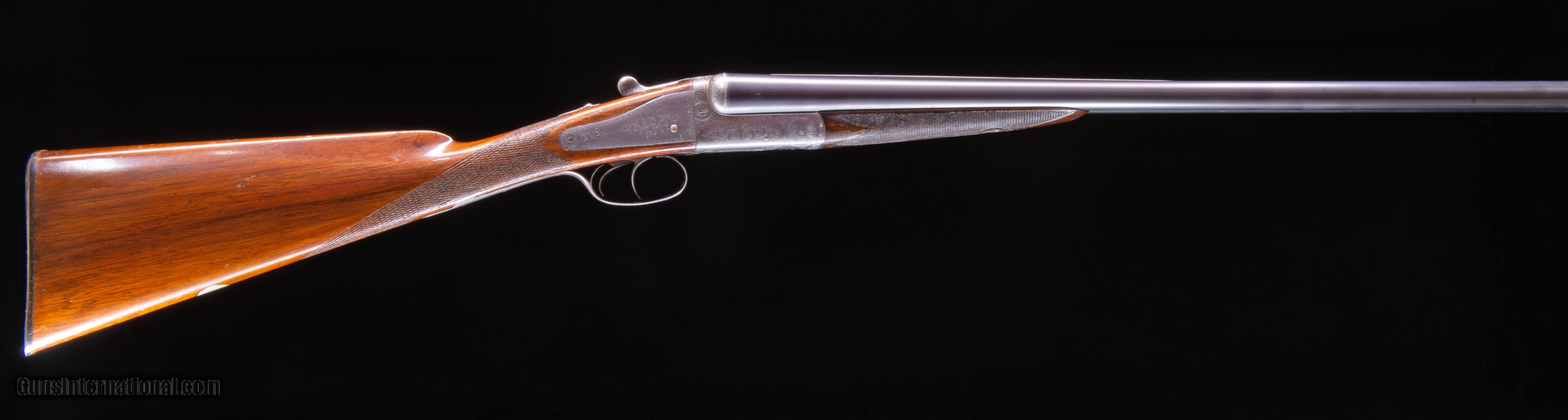 Description: Hammerless Sidelocks - This gun is tight and field ready. The 2 3/4" proofs do make it versatile. It is unusual for the Holland Climax or Dominion back action sidelocks to have engraving and this one is very well done. Holland records indicate this gun was built in 1901. *** Note: To see this gun with high resolution photos and a zoom-in feature, go to the vintagedoubles main site and search for the gun ID: 4436 or browse the main site to see our full gun collection. SOLD Manufacturer: Holland & Holland back action sidelock with plain wood but very nice engraving Model: Dominion Serial Number: 20987 Ejectors: Yes Barrels: 30 Barrel Type: Sleeved Action: Sidelock Gauge Info: 12 gauge Stock Comb: 9/16 Stock Heel: 2 3/16 Stock Cast: 1/4 LOP: 15 Weight: 6 lbs 14 ounces Choke Left: .029 full Choke Right: .018 Mod Proof:Nitro: 2 3/4 Minimum Wall Thickness Left: .037 Minimum Wall Thickness Right: .036 |