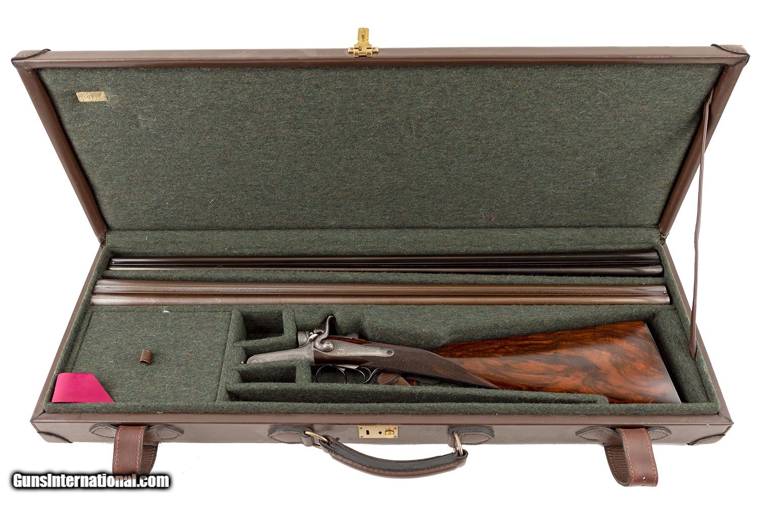 Description: SN# 84XX 28GA - 28" SOLID RIB DAMASCUS BARRELS (.003 AND .003 CONSTRICTIONS) 2 3/4" CHAMBERS WALLS: .020 LT; .022 RT 410 - 28" SOLID RIB BARRELS (.014 AND .018 CONSTRICTIONS) 3" CHAMBERS FITTED BY RIZZINI IN 1985 (AN DATE CODE) DOUBLE TRIGGERS EXTRACTORS SPLINTER FOREARM ENGLISH GRIP BUTT PLATE EXCELLENT CONDITION WITH SOME MINOR HANDLING MARKS 5LBS 5 OZ W/ 410 BARRELS 4LBS 12 OZ W/ 28GA BARRELS 2 1/4" DAH 1 3/4" DAC 14 5/8" LOP CASED SOLD |
