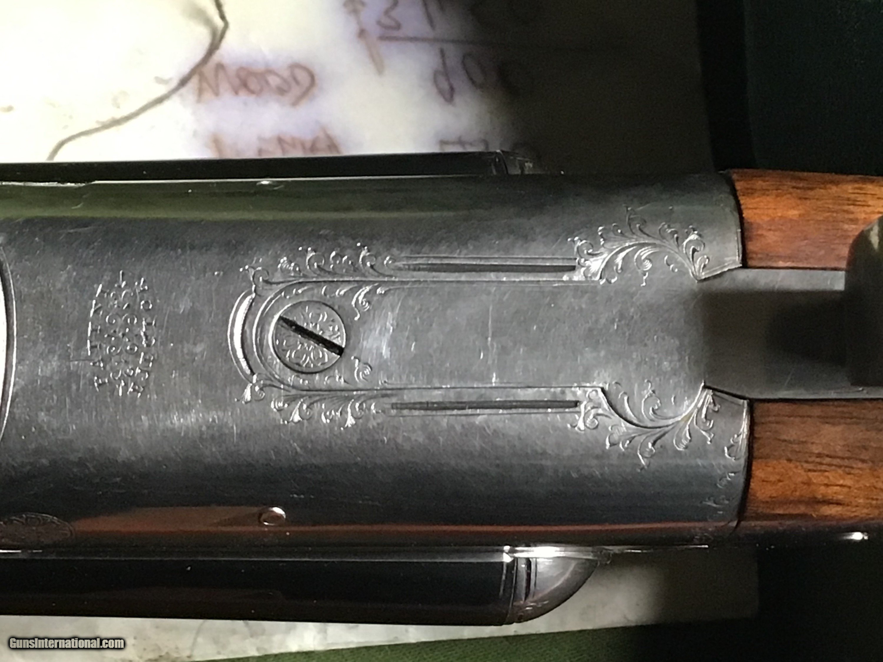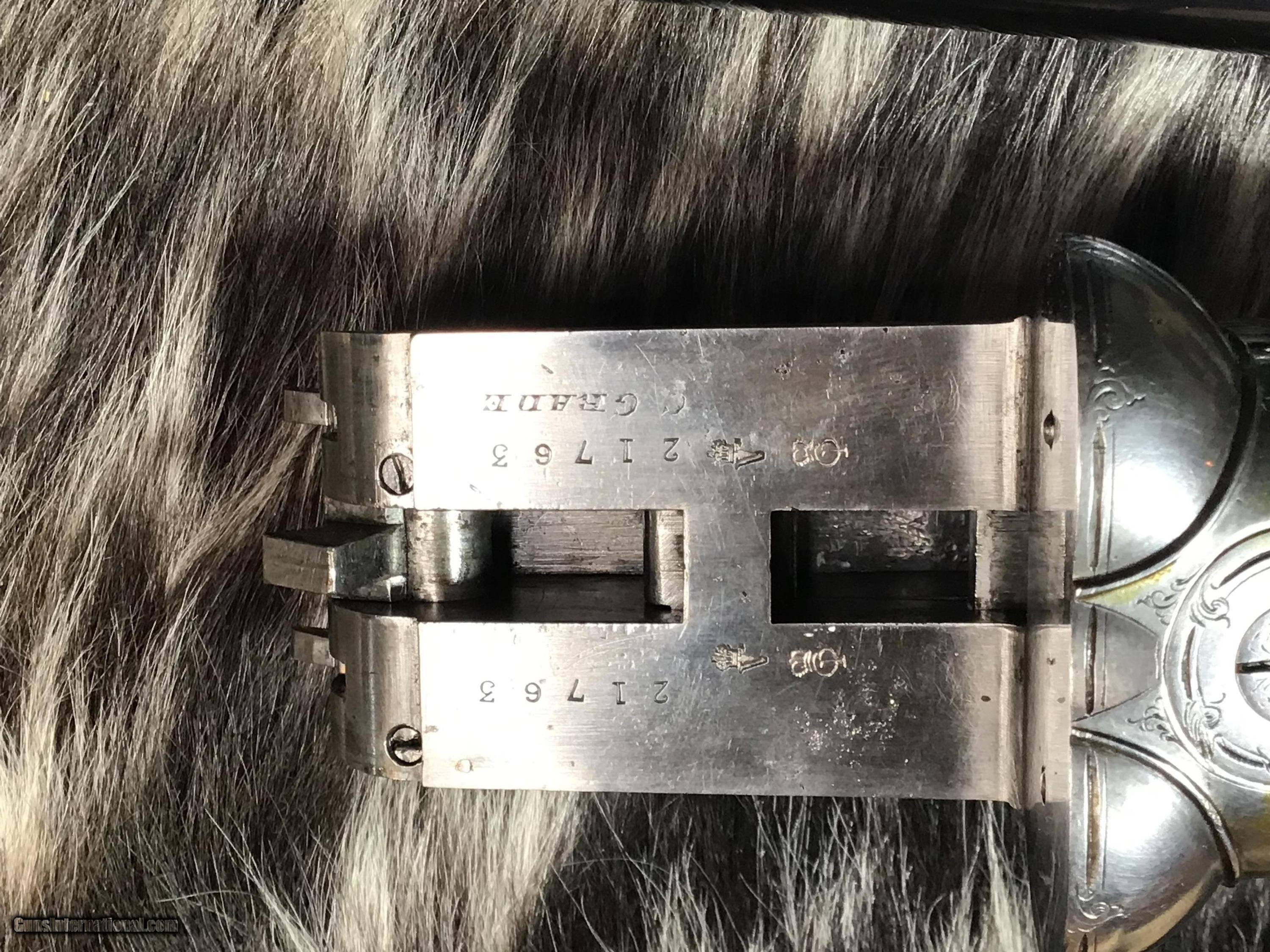Description: Cased Holland & Holland Dominion SxS shotgun wearing 30 inch Blued barrels in front of an Nickel & Engraved sidelock action. Gorgeous English straight gripped stock with high grade Walnut and perfect hand checkered furniture. Tight lockup with patented H&H ejectors.Checkered butt, Double triggers for instant barrel choice. Mirror bores, Splinter forearm ,checkered and engraved hardware. Born a 2 1/2 inch gun , rechambered/rebarreled to accept 2 3/4 inch cartridges. Owners engraved initials "MAB" on brass tab on stock matches owners card on case from Southampton England. A delightful high quality Holland & Holland SxS with case, spec sheet and receipt for work done at Shooting School shop in England. A perfect side by side to hunt, shoot, cherish and pass down from your investment firearms collection. Add 3% if paying with credit card. Free shipping for all US Veterans. God Bless America from a proud American, and a Viet Nam Vet , thankful for our freedoms.. paid for by the Blood ,Sweat and Tears of our brave men and women in uniform. Ten Below Firearms is a Veteran owned and operated business. We specialize in out of production models of high quality firearms. We love to ship! We ship to all states where legal, just give us a call! Handguns normally ship for $35 and Long guns for $50 and up for extra length long guns. That's 2-3 day USPS Priority shipping, Delivery conformation and with tracking number. Optional Postal insurance is additional $1.85 per $100 and highly recommended. We are OPEN BY APPOINTMENT ONLY FOR IN PERSON VISITS, We trade, sometimes. All payments sent via USPS Priority mail must be received within FIVE DAYS of date of purchase or item will be relisted for sale. **PROPS MAY BE USED FOR PHOTOS, PROPS ARE NOT INCLUDED WITH THE SALE OF THIS FIREARM** Thank you! Layaway:If needed we offer a 60 day layaway program. We offer FREE 60-day layaway. Buyer must pay at least 1/3 down and the remaining balance in 60 days. On all uncompleted layaways, all payments made will be non-refundable. The 60 days begins the day the buyer commits to buying the gun. 90 day layaway is available with 1/2 down, via phone. All layaway sales are final. Layaway is not available on negotiated prices. SOLD Curio/Relic: Yes Shotgun Gauge: 12 Gauge Manufacturer: Holland & Holland Model: Dominion SxS Serial Number: 21763 Barrel Length: 30 inch Bore: Smooth Chambers: 2 3/4 inch Ejectors: Yes Condition: Excellent Metal Condition: Excellent Wood Condition: Excellent Bore Condition: Excellent Barrels: SxS Action: Break Triggers: Double triggers Stock: Straight grip Walnut Stock Comb: 1 7/16 inch Stock Heel: 1 13/16 inch Stock Cast: 7/16 inch Fore End: Splinter LOP: 14 3/16 inch Rib: Matted Finish: Blued & Nickel Weight: 6.7 pounds Sights: White bead Choke Left: Imp mod Choke Right: Mod Case: Leather case Item Location: Mn |