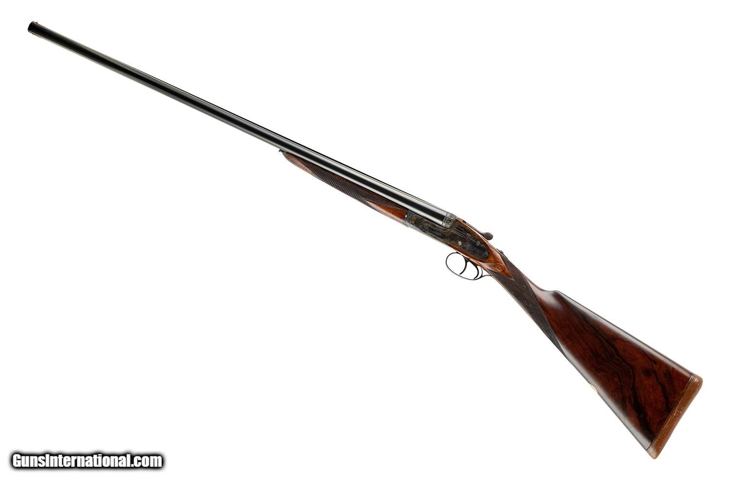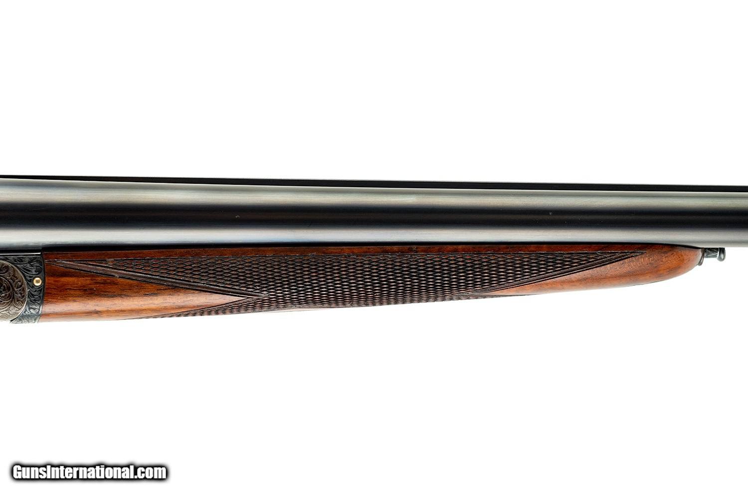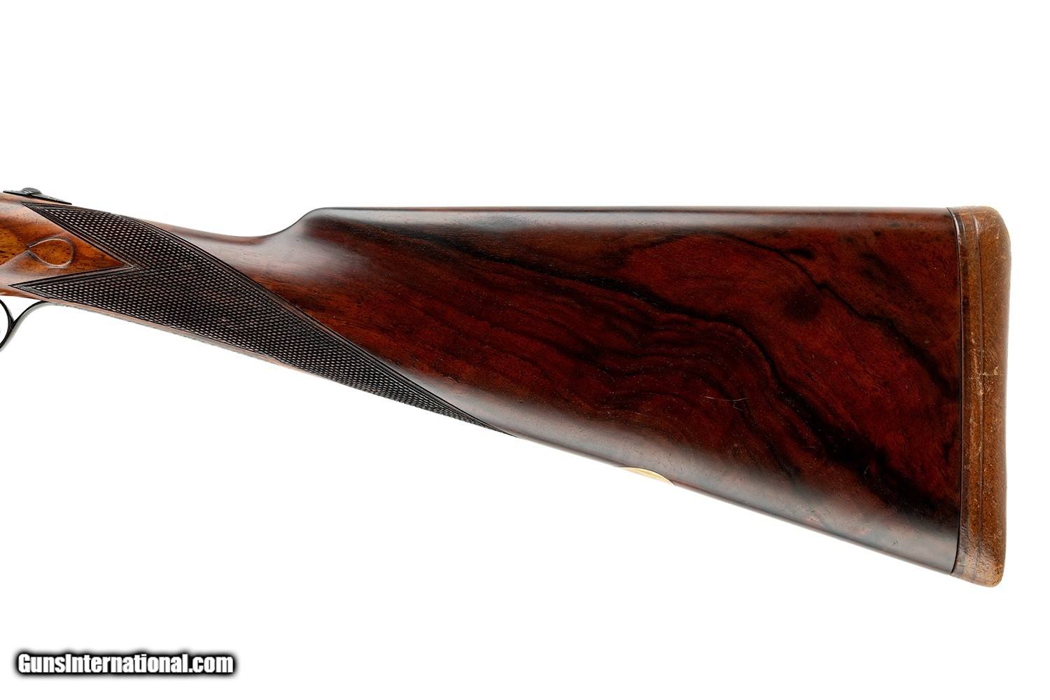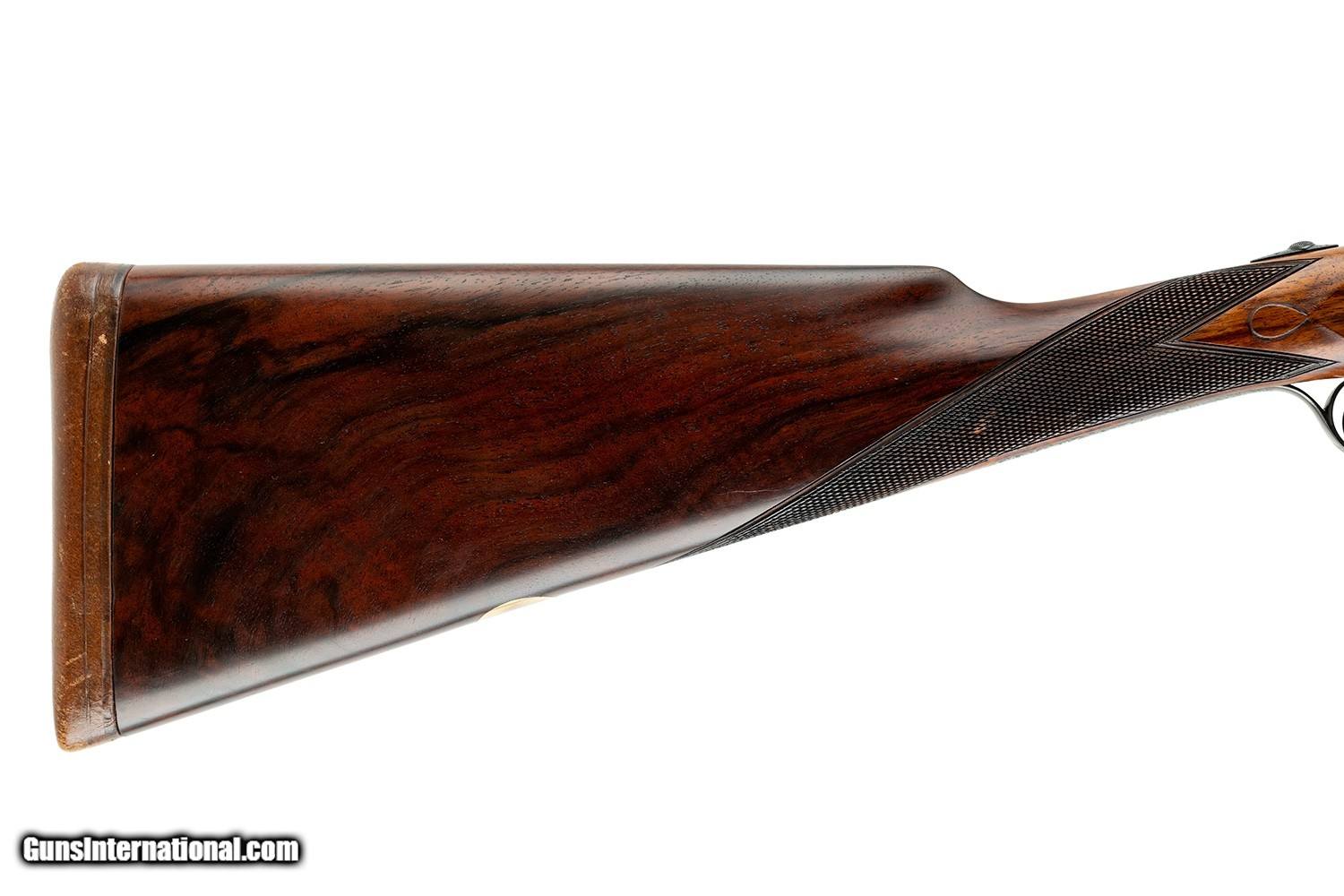 Description: #36XXX 28" SELF OPENER (.009 AND .012) 2 3/4" DOUBLE TRIGGER W/ HINGED FRONT TRIGGER EJECTORS SPLINTER FOREARM ENGLISH GRIP LEATHER COVERED PAD EXCELLENT MINT ORIGINAL CONDITION MAKERS OAK AND LEATHER CASE W/ ALL ACCESSORIES 6LBS 4 OZ 2 1/2" DAH 1 1/2" DAC 15 1/4" LOP SOLD |