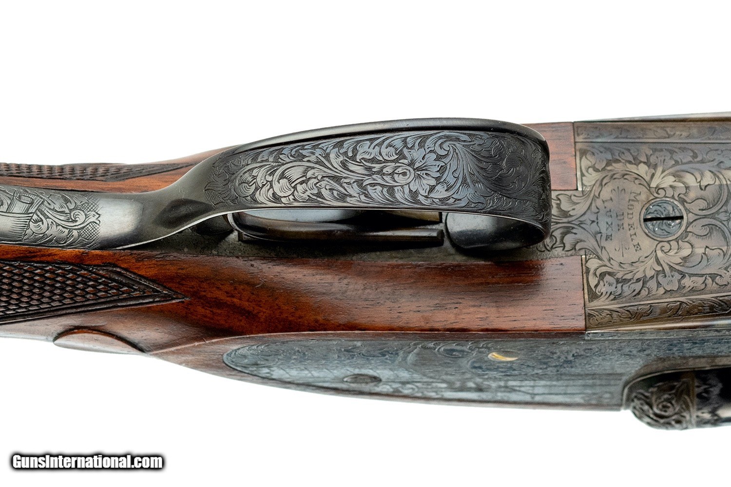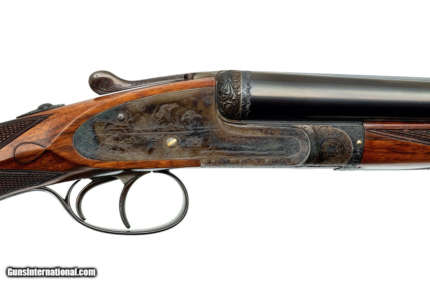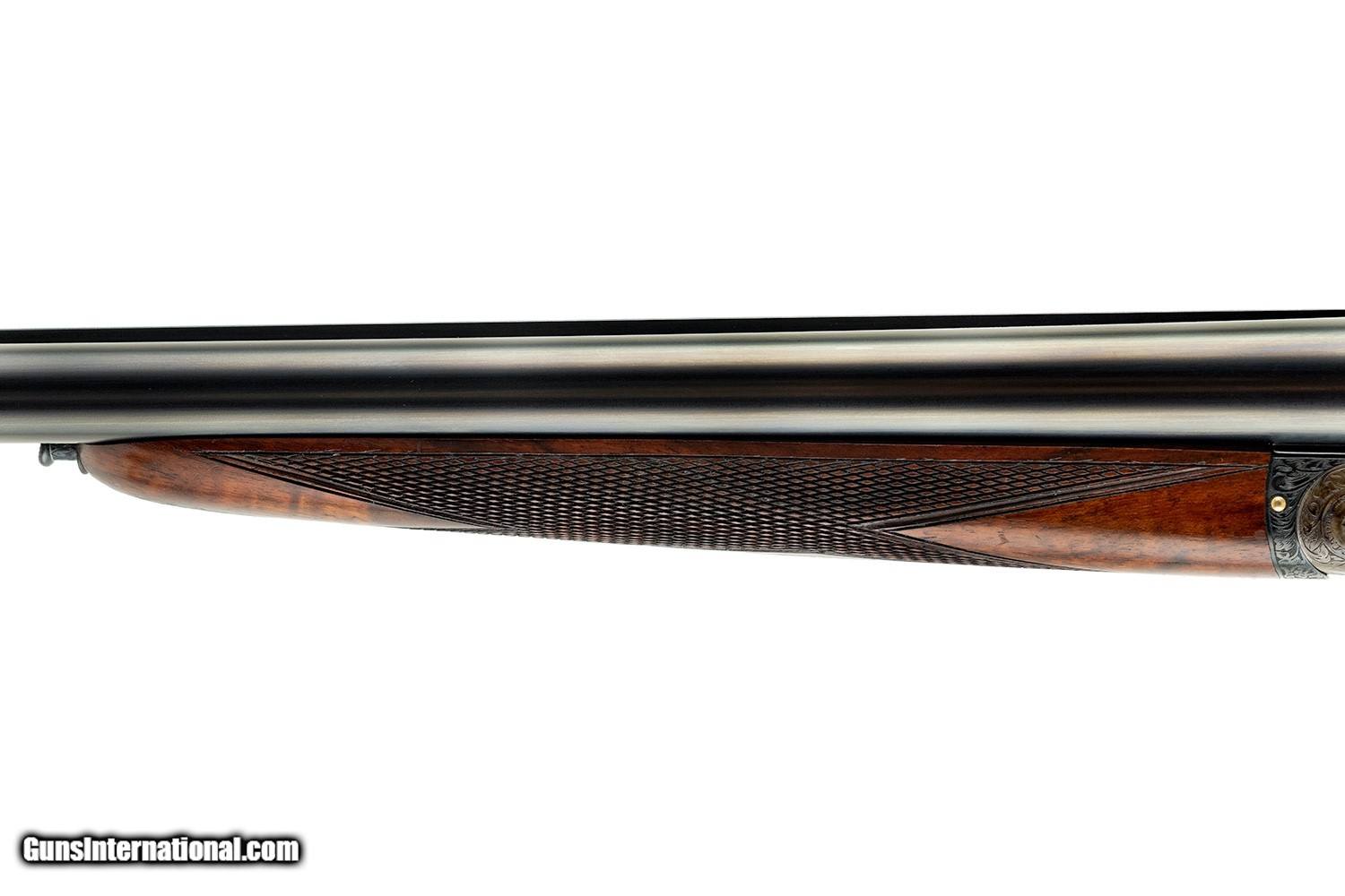 Description: #36XXX 28" SELF OPENER (.009 AND .012) 2 3/4" DOUBLE TRIGGER W/ HINGED FRONT TRIGGER EJECTORS SPLINTER FOREARM ENGLISH GRIP LEATHER COVERED PAD EXCELLENT MINT ORIGINAL CONDITION MAKERS OAK AND LEATHER CASE W/ ALL ACCESSORIES 6LBS 4 OZ 2 1/2" DAH 1 1/2" DAC 15 1/4" LOP SOLD |