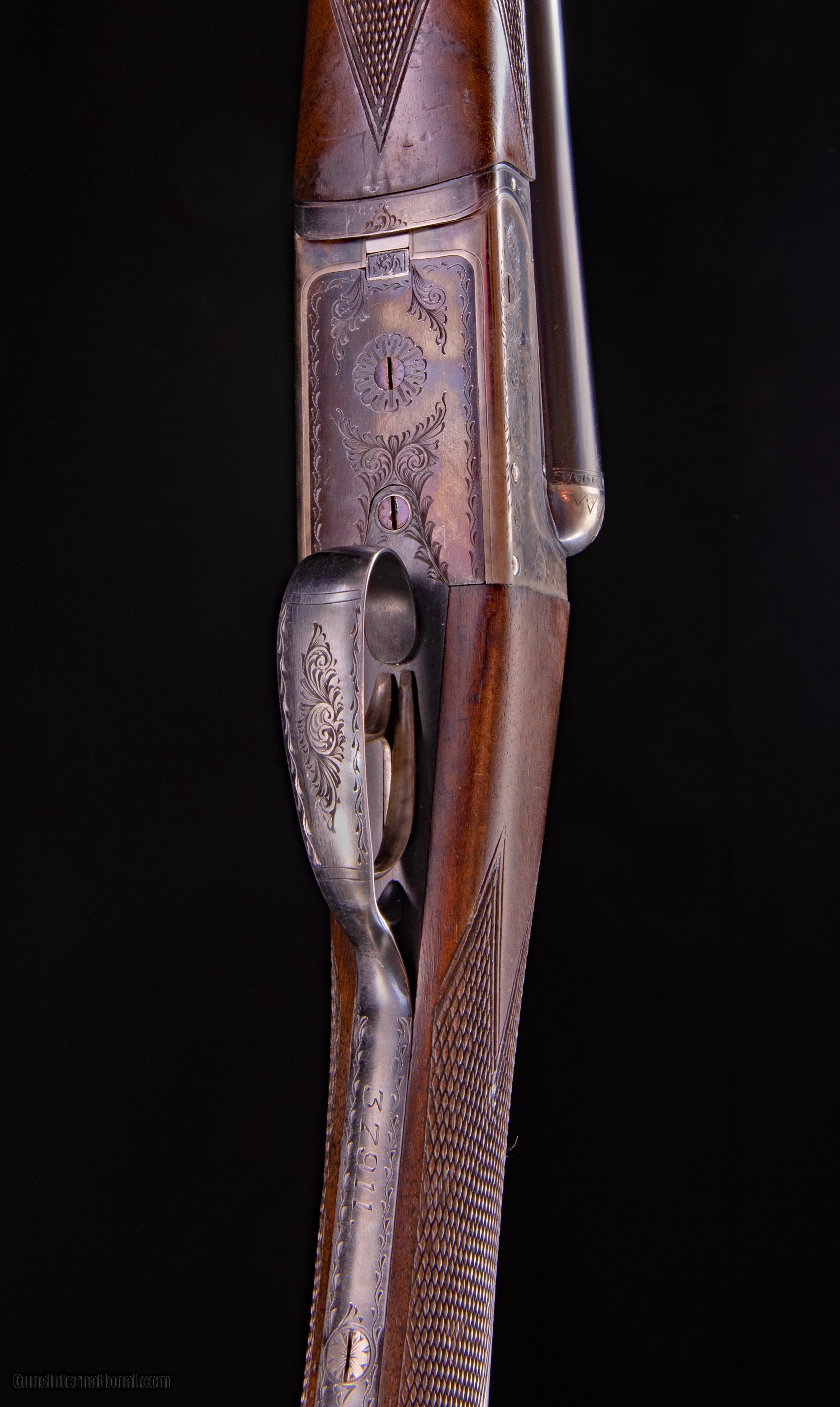 Description: Boxlocks - Holland and Holland had these guns built for them by Webley & Scott and then checked their regulation at the Holland shop. This gun is in very nice condition with lots of case color remaining.