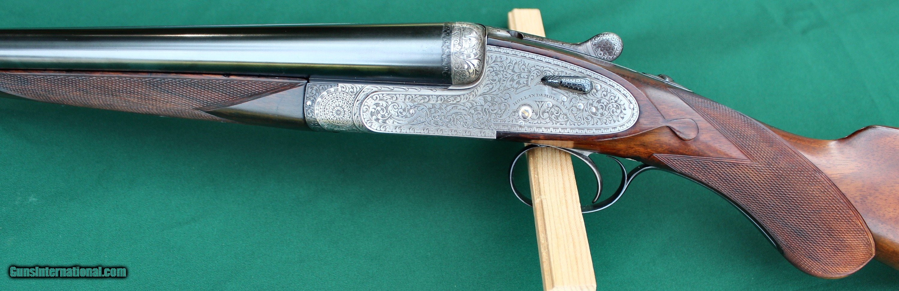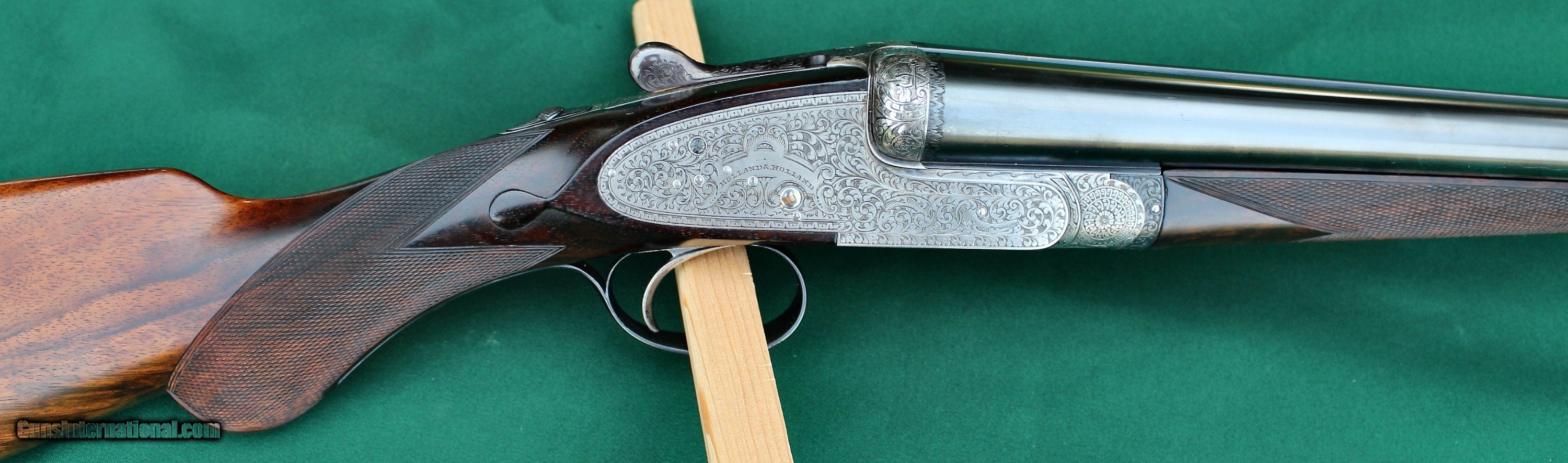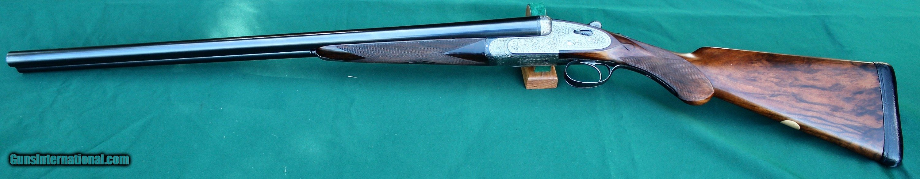 Description: This is a very nice 1936 H&H Royal Brevis cased 12 bore. Serial No. 33388(Full House) . Gun has had the barrels and furniture re-blacked in the London style of quality. The barrel flats show a London Proof date in 1999 with proof at 70mm and 850 bars. Gun functions as it is supposd to with well timed ejectors and strong assisted opening. A Very nice golden age gun at a fraction of new price!!! SOLD SOLD Shotgun Gauge: 12 Gauge Manufacturer: Holland and Holland Model: Royal Brevis Serial Number: 33388 Barrel Length: 26 Bore: Mirror Chambers: 2 3/4 Ejectors: Strong - Well timed Condition: Excellent Metal Condition: Excellent Wood Condition: Very Good Bore Condition: Excellent Barrels: 26 Barrel Type: Whitworth Action: Side Lock Ejector Triggers: Single Non-Selective Stock: Turkish Walnut Stock Dimensions: 1 5/8 x 2 3/4 x 14 Stock Cast: 1/4 off Butt Pad: Leather Weight: 6 lbs. 5.1 oz. Manufacture Date: 1936 Chokes: .028 & .042 Choke Left: 042 Choke Right: .028 Case: Leather Trunk Item Location: WI Proof:Nitro: Yes Minimum Wall Thickness Left: .027 Minimum Wall Thickness Right: .028` |
