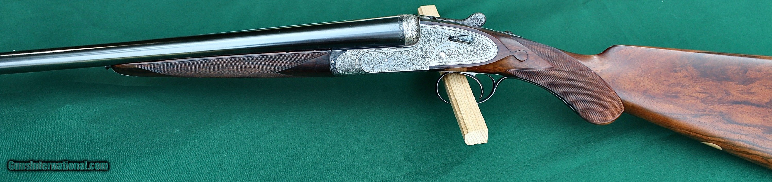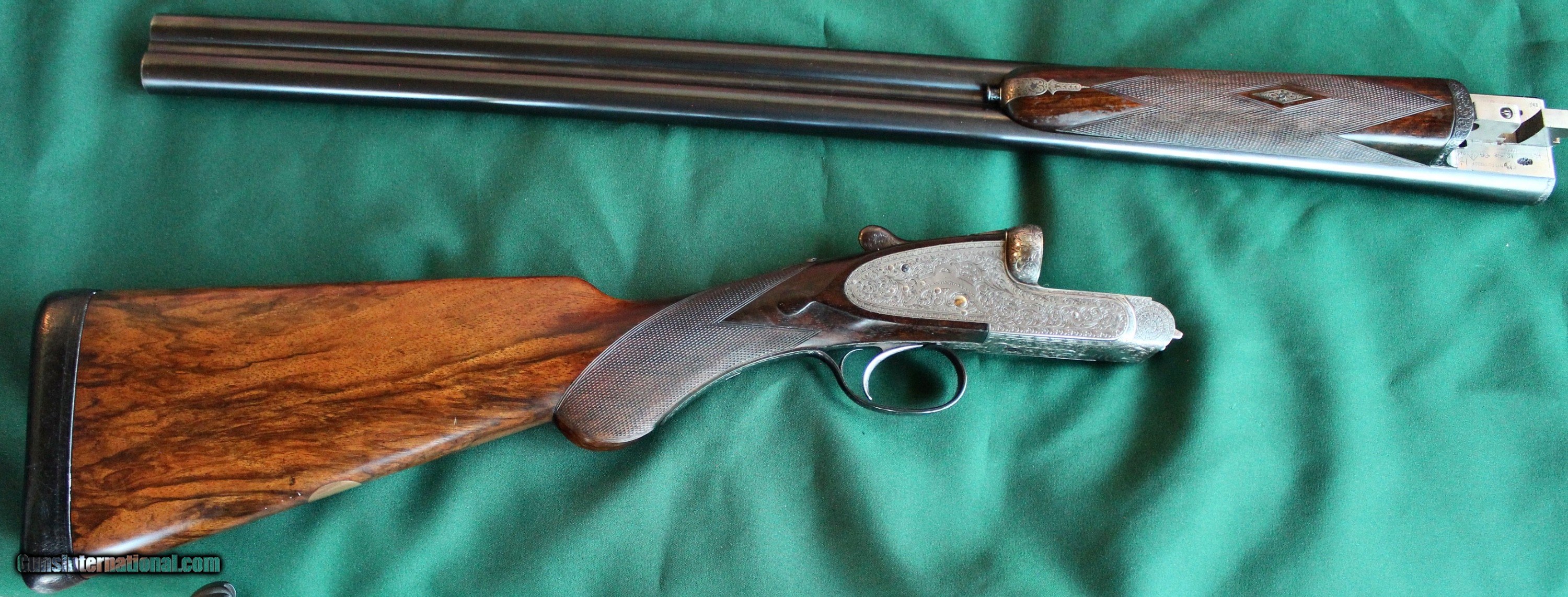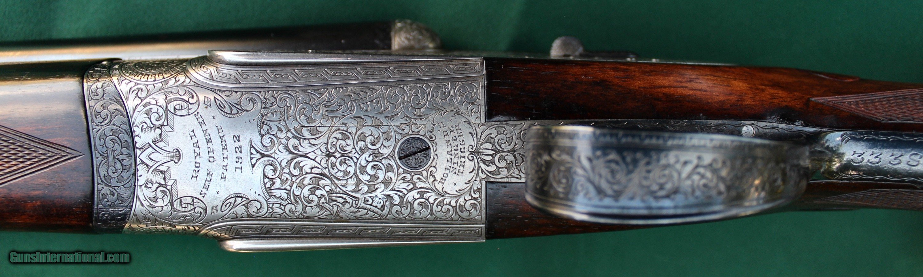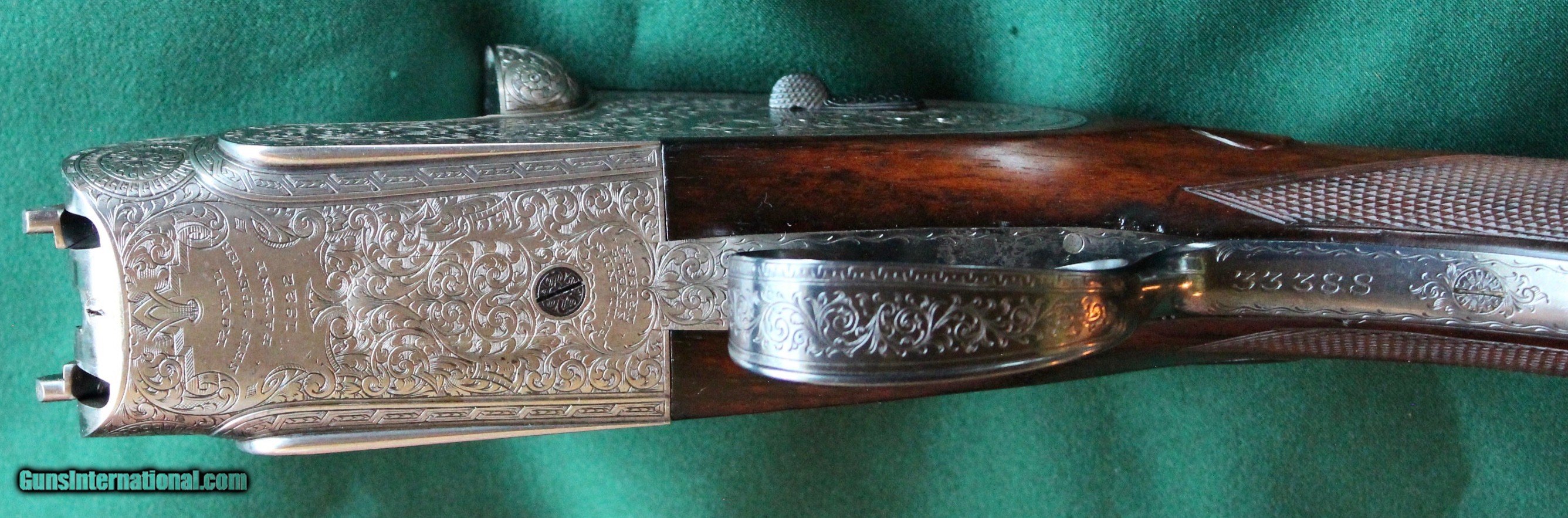 Description: This is a very nice 1936 H&H Royal Brevis cased 12 bore. Serial No. 33388(Full House) . Gun has had the barrels and furniture re-blacked in the London style of quality. The barrel flats show a London Proof date in 1999 with proof at 70mm and 850 bars. Gun functions as it is supposd to with well timed ejectors and strong assisted opening. A Very nice golden age gun at a fraction of new price!!! SOLD SOLD Shotgun Gauge: 12 Gauge Manufacturer: Holland and Holland Model: Royal Brevis Serial Number: 33388 Barrel Length: 26 Bore: Mirror Chambers: 2 3/4 Ejectors: Strong - Well timed Condition: Excellent Metal Condition: Excellent Wood Condition: Very Good Bore Condition: Excellent Barrels: 26 Barrel Type: Whitworth Action: Side Lock Ejector Triggers: Single Non-Selective Stock: Turkish Walnut Stock Dimensions: 1 5/8 x 2 3/4 x 14 Stock Cast: 1/4 off Butt Pad: Leather Weight: 6 lbs. 5.1 oz. Manufacture Date: 1936 Chokes: .028 & .042 Choke Left: 042 Choke Right: .028 Case: Leather Trunk Item Location: WI Proof:Nitro: Yes Minimum Wall Thickness Left: .027 Minimum Wall Thickness Right: .028` |