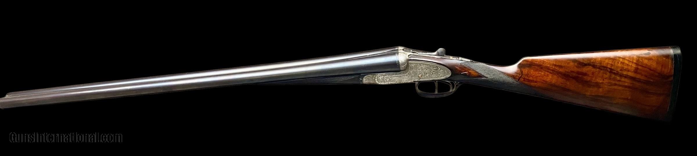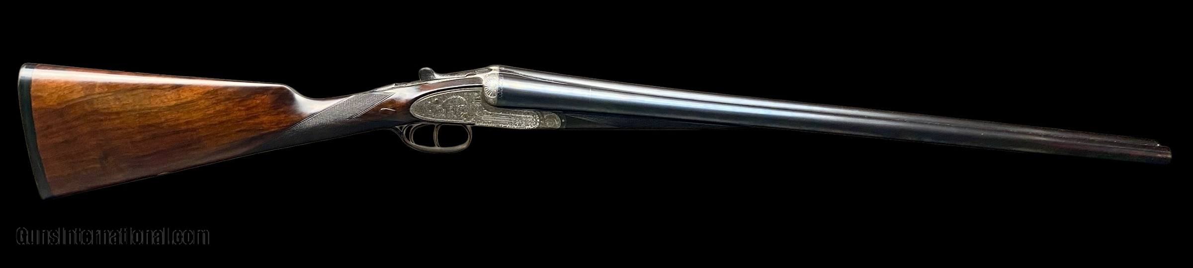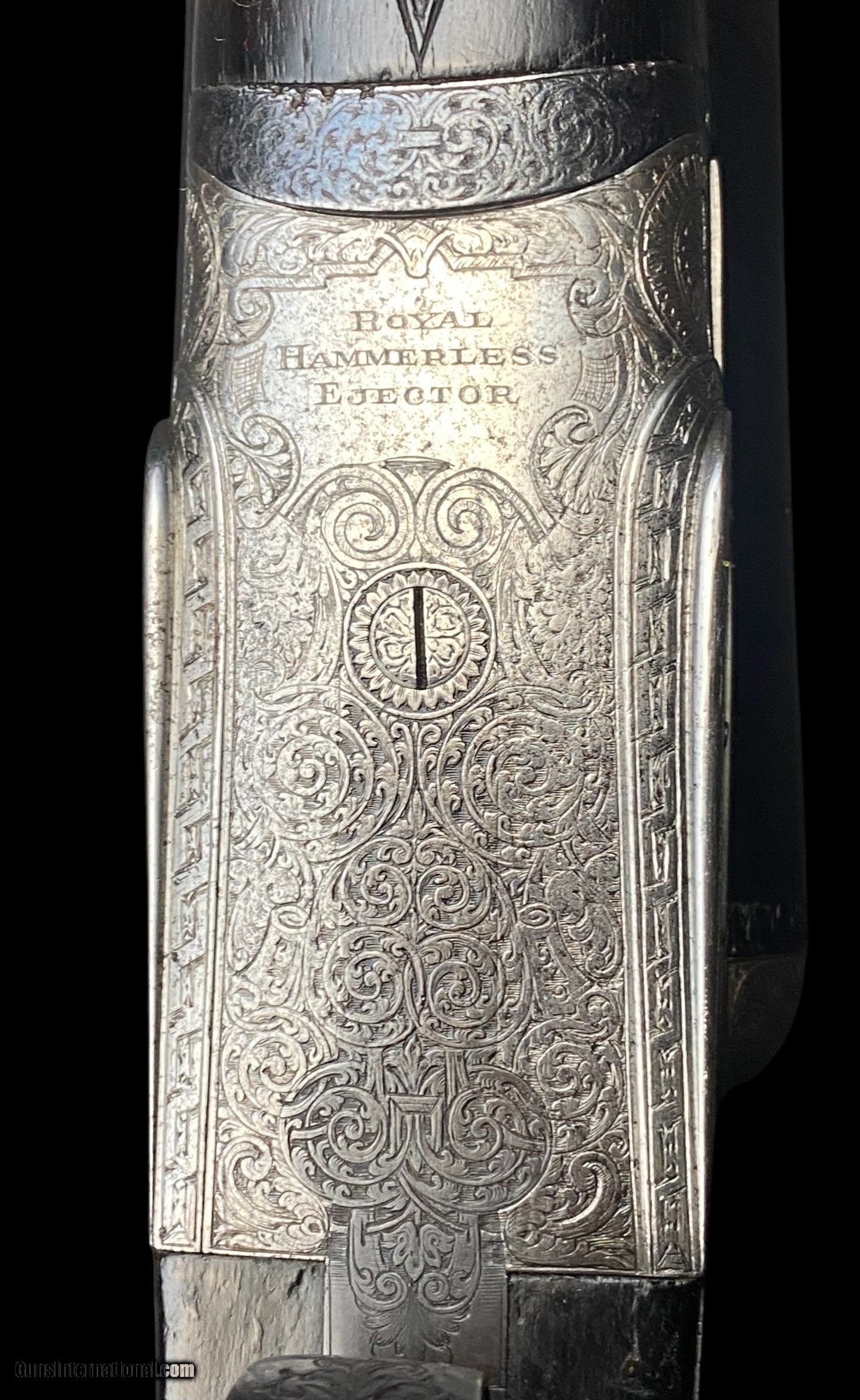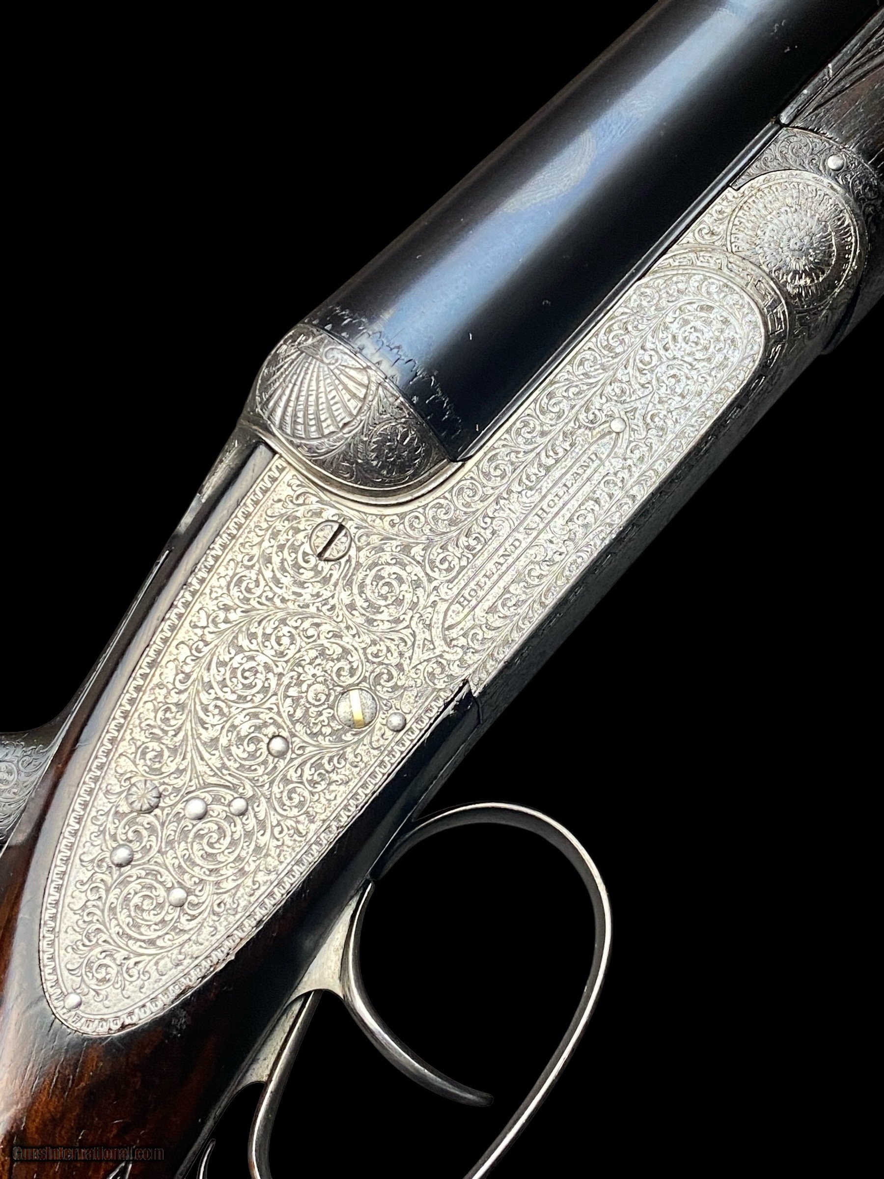 Description: HOLLAND & HOLLAND -- ENGLAND MODEL: ROYAL EJECTOR SIDELOCK MFG - 1893-1896 12GA - 2 1/2" NITRO NEW BARRELS H&H ROYAL EJECTOR HAND ENGRAVED PATTERN WITH LOVELY SHELL ENGRAVINGS ON THE BOLSTERS. BBLS: 27" - MARKED - "HOLLAND & HOLLAND 98 NEW BOND STREET LONDON" W/ MODERN SLEEVED BARRELS & PROOFS CHOKES: 011" / 022" SPECS: R: .721 BORE MIN WALL: .037 L: .720 BORE MIN WALL: .040 DOUBLE TRIGGERS EJECTORS NICELY FIGURED ENGLISH WALNUT STRAIGHT GRIP STOCK AND SPLINTER FOREND CHECKERED HORN BUTTPLATE DIMS: LOP: 14 1/2", DAC: 1 1/2" DAH: 2" WEIGHT: 6LBS 4OZ CONDITION : EXCELLENT OVERALL AS LONDON QUALITY MAINTAINED. BORES CLEAR. EJECTORS IN-TIME. SCANT VERY LIGHT IMPRESSIONS ON WOOD. ACTION TIGHT AND ON-FACE. GENTLEMEN, HERE WE HAVE A BEAUTIFUL H&H ROYAL EJECTOR THAT IS FIT FOR USE AND WITH GREAT DIMENSIONS. THE LONDON SLEEVED BARRELS WERE A $10K UPGRADE AND PROPERLY DONE. AN ANTIQUE STATUS GUN WITH MODERN BARRELS! A FANTASTIC HOLLAND ROYAL AT A FRACTION OF NEW. A TRUE CLASSIC IN THE FIELD. PLEASE CALL NOW! WE HAVE ELEY 2 1/2" SHELLS AVAILABLE!!! PLEASE CALL! FLAT $50 S/H/I CARD FEE APPLIES SOLD Antique: Yes Shotgun Gauge: 12 Gauge Manufacturer: HOLLAND & HOLLAND Model: ROYAL HAMMERLESS EJECTOR Serial Number: 16458 Barrel Length: 27 Chambers: 2.5 Ejectors: YES Condition: EXC Metal Condition: EXC Wood Condition: EXC Bore Condition: EXC Action: SLE Triggers: DOUBLE Weight: 6LBS 4 OZ Proof:Nitro: YES |