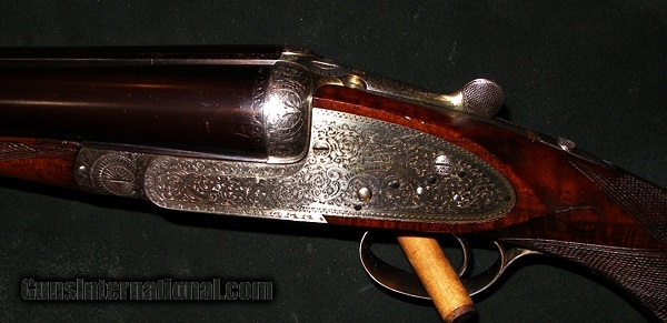 Description: HOLLAND & HOLLAND ROYAL EJECTOR 12GA SIDELOCK S/S SHOTGUN, FULL COVERAGE HOLLAND & HOLLAND SCROLL ON THE COIN FINISHED ACTION, NEW 28" BBLS BY HOLLAND & HOLLAND IN THE EARLY 60'S, 2 3/4" ORIGINAL PROOFS, CHOKED 1/4, 3/4, STANDARD GAME RIB, EJECTORS, H & H SINGLE SELECTIVE TRIGGER, XXXX WALNUT, RK PISTOL, CHECKERED BUTT, SPLINTER FOREND, LOP 14 1/2, 1 1/2, 2 1/4, 6LBS 10OZ, IN MAKER'S BEST LEATHER CASE WITH CANVAS COVER & ACCESSORIES, TIGHT ON FACE, EXCELLENT BORES & WOOD, 98% !!!! SOLD |