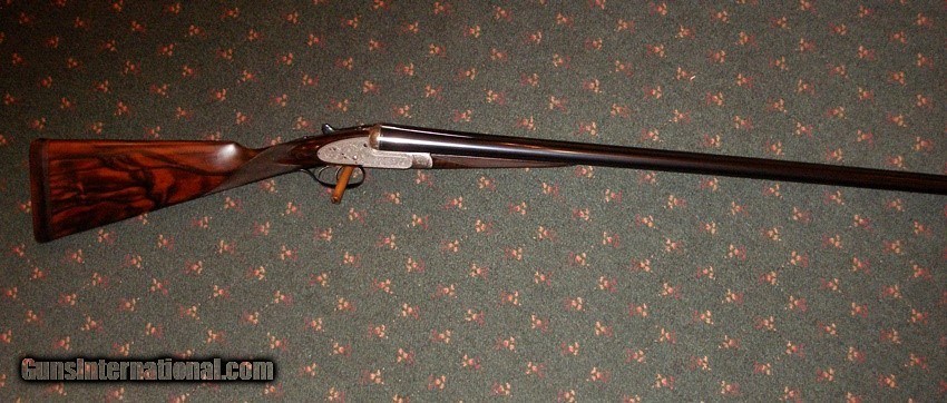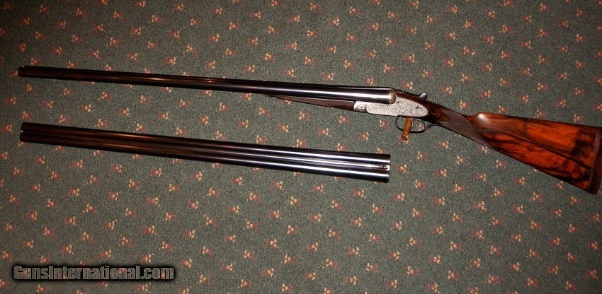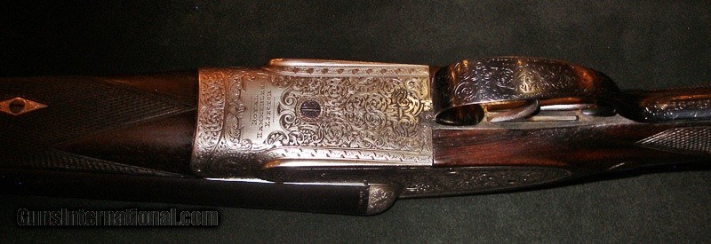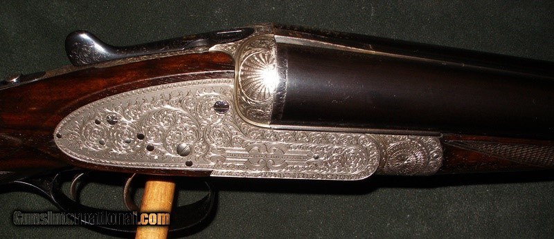 Description: HOLLAND & HOLLAND ROYAL EJECTOR SIDELOCK 12GA, 2 BBL SET ANTIQUE SHOTGUN, 1894 MFG DATE, HOLLAND & HOLLAND FULL COVERAGE SCROLL, CLAM SHELL FENCES, 2 BBL SET: #1: 1988 NEW 30" BBLS BY MAKER, #2: 1987 LONDON PROOFED ORIGINAL 30" BBLS, 2 3/4 BOTH, CHOKED #1: IC 1/2 #2: 1/4 1/2, STANDARD GAME RIB, EJECTORS, DBL TRIGGERS, BEAUTIFUL HIGHLY FIGURED WALNUT, ST/SP, LOP 15 3/4, 1 1/2, 2 3/16, 7LBS 4OZ, ORIGINAL CASE WITH ACCESSORIES, VERY FINE CONDITION, TIGHT ON FACE, EXCELLENT BORES & WOOD! SOLD Antique: Yes Manufacturer: HOLLAND & HOLLAND Model: ROYAL EJECTOR SIDELOCK Chambers: BOTH 2 3/4 Ejectors: YES Condition: VERY FINE, TIGHT ON FACE Wood Condition: EXCELLENT WOOD Bore Condition: EXCELLENT BORES Barrels: BOTH 30", 2 BBL SET Action: S/S Triggers: DBL TRIGGERS Gauge Info: 12GA Stock: BEAUTIFUL HIGHLY FIGURED WALNUT, ST/SP Butt Pad: BEST LEATHER PAD LOP: LOP 15 3/4, 1 1/2, 2 3/16 Rib: STANDARD GAME RIB Weight: 7LBS 4OZ Manufacture Date: 1894 MFG DATE Chokes: #1: IC 1/2 #2: 1/4 1/2 Engraving: H & H FULL COVERAGE SCROLL, CLAM SHELL FENCES Case: ORIGINAL CASE WITH ACCESSORIES Item Location: SAFARI OUTFITTERS LTD., SALT POINT, NY 12578 PHONE: 845-677-5444 |