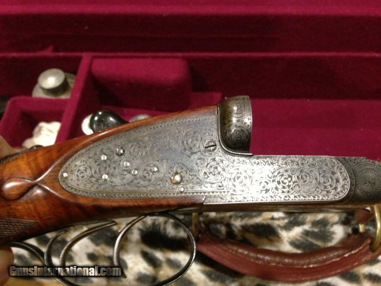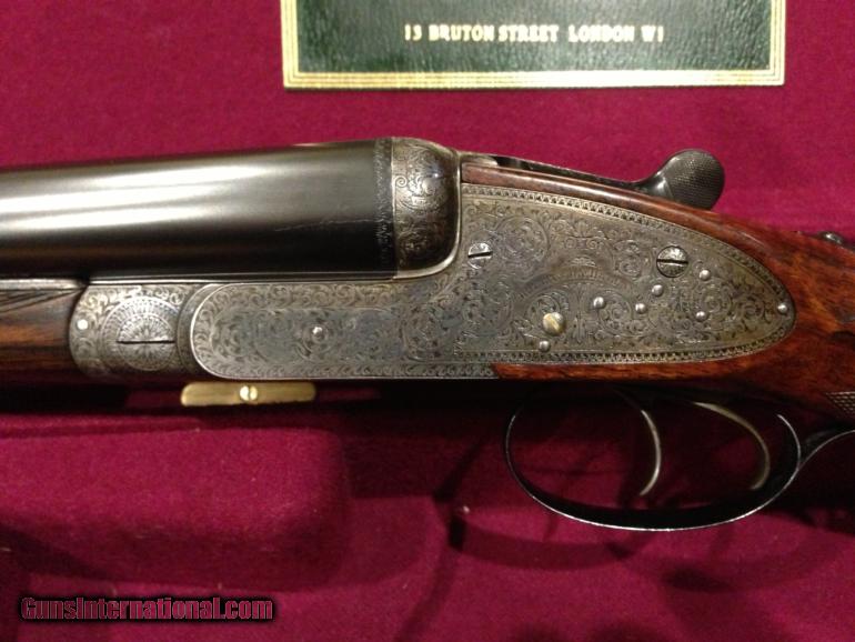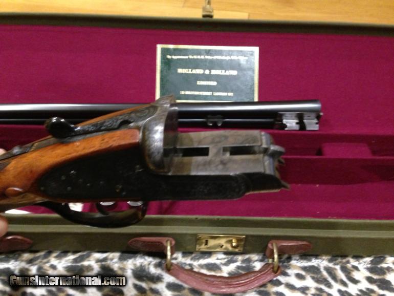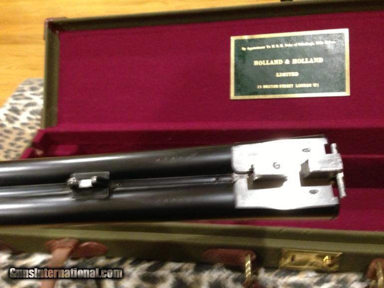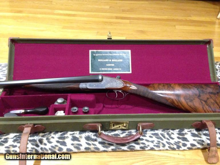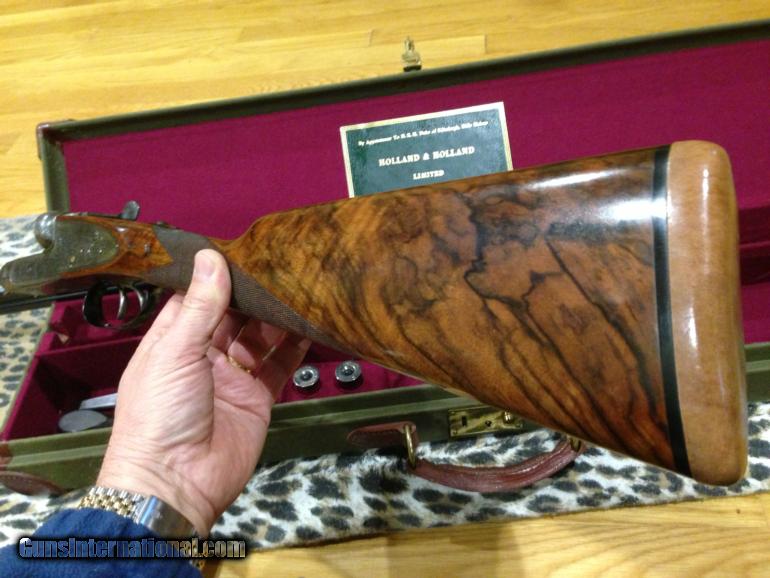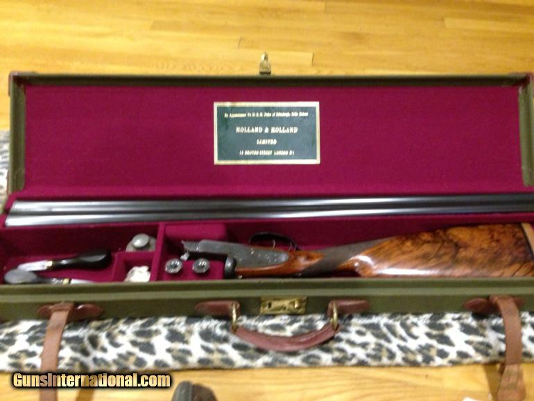 Description: This is a 12 gauge H&H Royal Sidelock Ejectors the shotgun is all original in it's original case with accessories, 30" barrel mirror bores with 07-09 chokes, 2-1/2" chambers and ejectors, the original stock is exhibition grade with a 14-1/2" LOP to original leather pad. Condition is better then 95% with only a very few small handling marks. Any question please e-mail me SOLD |