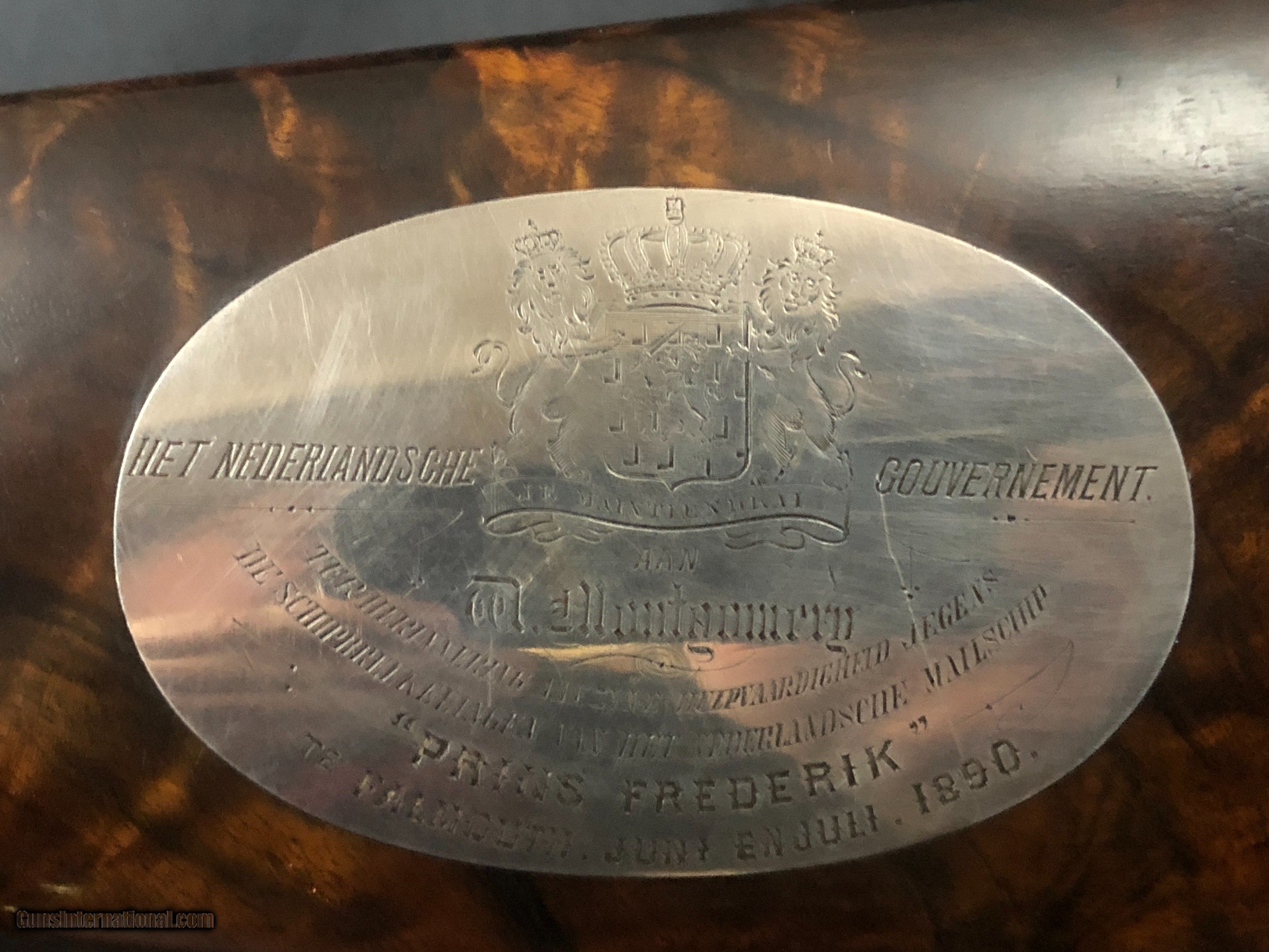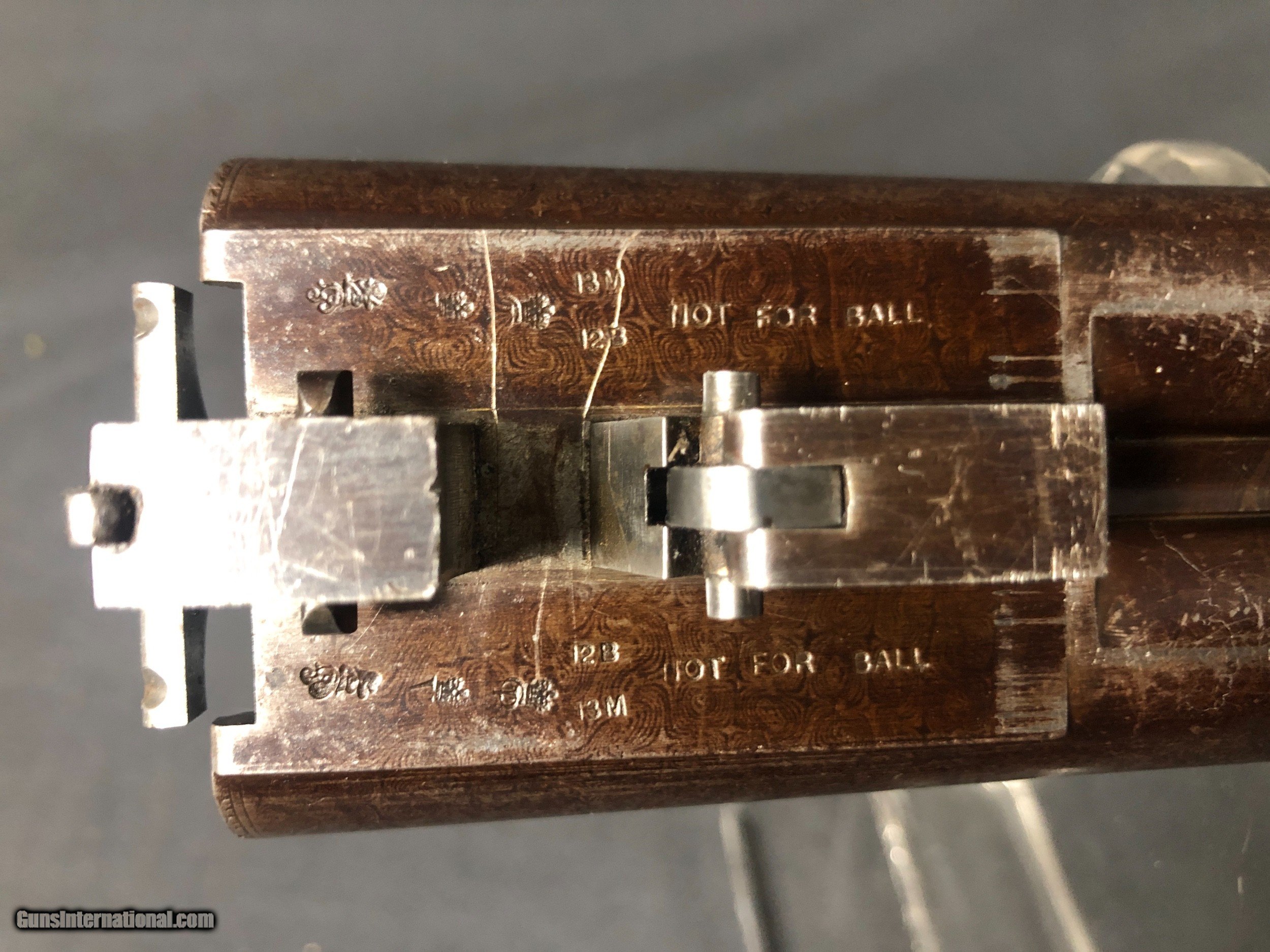 Description: SOLD !!! A unique and interesting seldom found configuration that is a piece of history. See attached artical for the story ot the Prins Frederik. A great gun from one of London's top makers. See photos for great condition! Please call Mark 715-814-1295 Pack and ship $45 LAYAWAY: Layaway is available with 1/3 down of final total price including shipping/insurance within 7 days . Balance due in 45 days. Layaway Sales and guns modified at time of sale are FINAL with no refunds, no inspections, no returns. Chokes my be opened to your choice at time of sale for $50 per barrel . SOLD Antique: Yes Shotgun Gauge: 12 Gauge Manufacturer: HOLLAND & HOLLAND Model: SIDELEVER HAMMERGUN Barrel Length: 31IN Chambers: 2 1/2 IN Condition: GREAT Bore Condition: BRIGHT Barrel Type: DAMASCUS Stock Comb: 1 1/2IN Stock Heel: 2 1/4IN Butt Pad: WOOD CHECKERED LOP: 14 1/2IN Weight: 7 LBS 3OZ Choke Left: MOD Choke Right: CYLINDER Case: MAKERS CASE Proof:Black: YES Minimum Wall Thickness Left: .021 Minimum Wall Thickness Right: .024 |