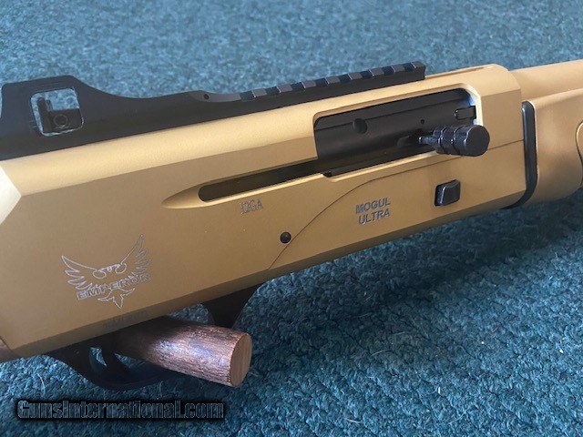 Description: Emperor, 12ga, 3", Mogul Ultra, gold color, 18 1/2" barrel, hardwood handle, also has rear stock, semi auto, HiVis sights, adjustable comb, picatinny rail top and bottom, choke cylinder, semi auto. Serial No.20MGK973. For further information and faster service call John at 941-748-7318. SOLD |
