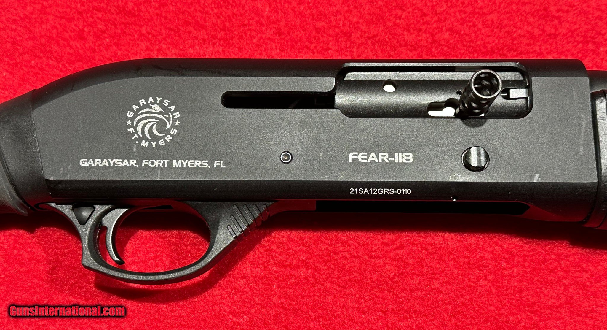 Description: Guns Listing ID: 573386 For Sale is a Pre-Owned Garaysar Fear-118 Firearm chambered in 12 gauge, in Good Condition. Specifications: • Model: Garaysar Fear-118 Firearm • Caliber: 12 Gauge — compatible with 2¾\" and 3\" shells (confirm chambering) • Action: Semi-automatic, gas-operated • Barrel Length: ~14\" — compact for maneuverability • Overall Length: Under 27\" — classified as a firearm, not a shotgun • 4+1 Rounds • Condition: Good — light wear, clean bore, fully functional • Finish: Matte black tactical coating Manufacturer: GARAYSAR Model: FEAR 118 Condition: Used - Non-Certified Barrels: 14" BARREL Action: SEMI AUTOMATIC Gauge: 12 GA Finish: black Price: $499.99 Contact Seller |