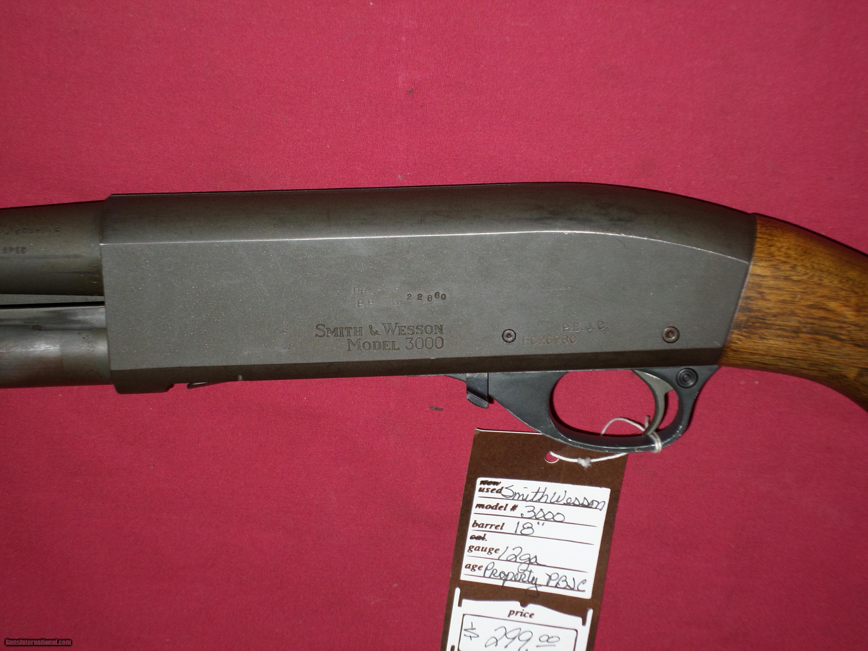 Description: SOLD For sale, Smith & Wesson Model 3000 Pump Shotgun, 12 Ga., 18" bbl, all original. SOLD To see more of our inventory, visit deerhunterguns,com No charge for Credit Cards No Sales to California. Like us on Facebook: Deer Hunter Guns SOLD |