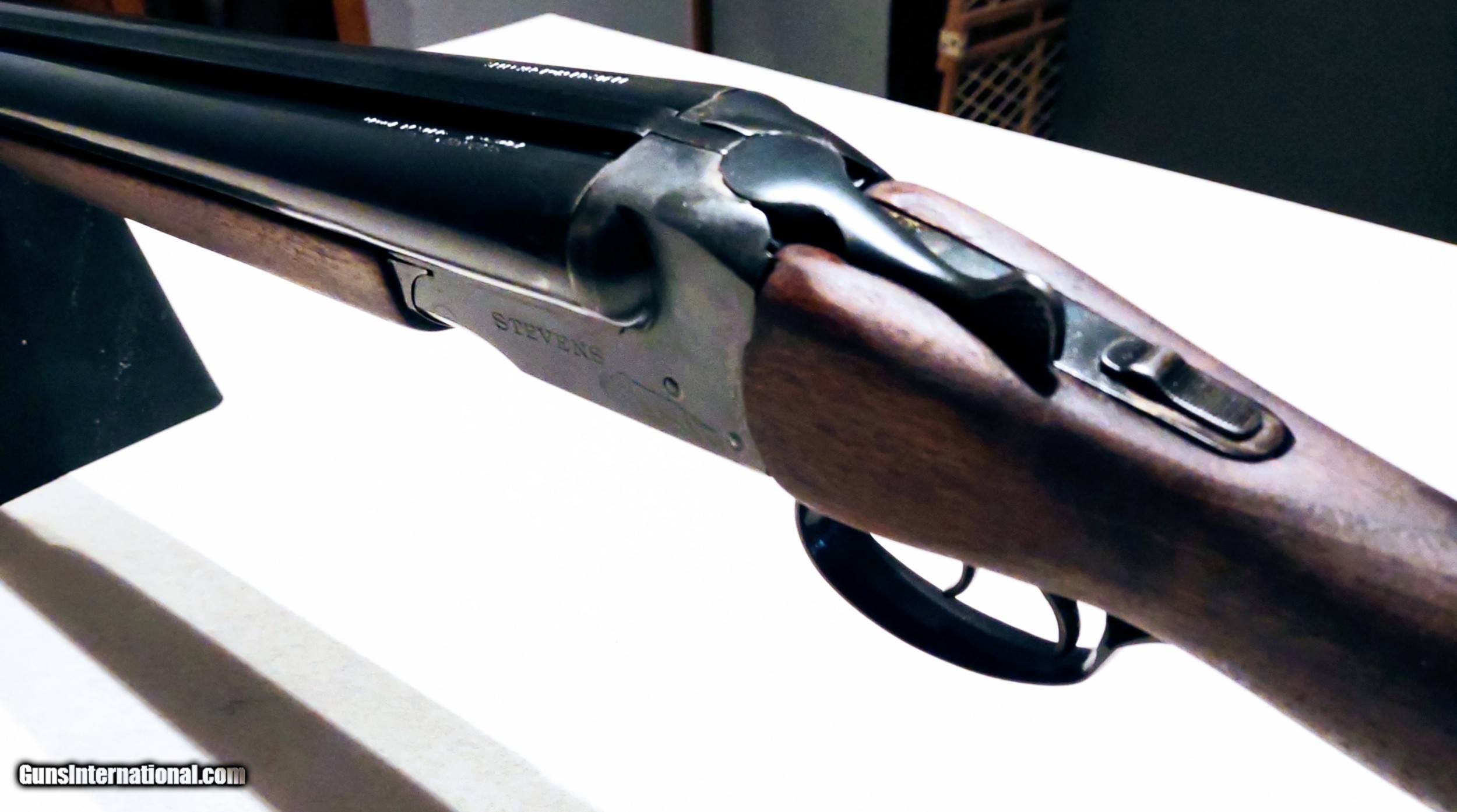 Description: Stevens 12 guage Coach Gun , Black walnut furniture ,d straight stock with19" Barrels , very old in excellent condition. SOLD |