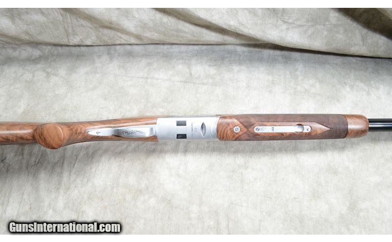 Description: This field gun features very nice walnut stock and fore arm, soft rubber recoil pad, extended chokes and tasteful engraving on the stainless receiver and stock hardware. It is a handsome gun and will look good in the field or in casual trap competitions. 12 Gauge SOLD Chambers: "2 rounds, 3 inch chamber. Metal Condition: LNIB. Wood Condition: LNIB. Bore Condition: LNIB. Barrels: 28 inch Triggers: Factory single selective trigger. Stock Dimensions: LOP 14-3/8 INCHES; DAMC: 1-3/4 INCHES; DAH: 2-1/4 INCHES... relative to top of the rib. Fore End: Matching walnut. Butt Pad: Soft rubber pad. Weight: 7 lb - 11 oz Sights: Ventilated rib with white bead. Chokes: Extended screw-in chokes. Item Location: Rogers |