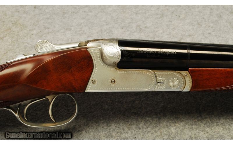 Description: Richly engraved receiver with classic English-Style checkered walnut stock and forestock. 20 Gauge SOLD Chambers: 3 Metal Condition: Excellent Wood Condition: Excellent Bore Condition: Excellent Barrels: 28" Double BBL Triggers: Double Trigger Stock Dimensions: 1-1/2" DAC-2-1/4"DAH Fore End: Checkered walnut Butt Pad: Black Walnut Weight: 6 lb. 5 oz. Sights: Brass Bead Chokes: Removable/ IC Skeet Item Location: Louisville, KY |