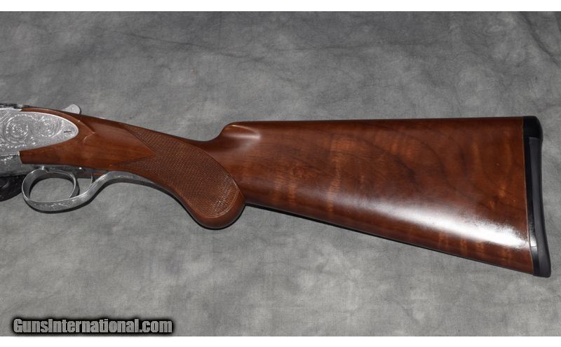 Description: DeHaan custom reworks imported over under shotguns made by Huglu. The wood to metal fit is outstanding. The joining of the Schnabel forearm, the receiver to butt stock, even the butt pad grind is above criticism. The hand engraving is beautiful the result of five or so hours of hand chiseling for the side plates alone on each and every DeHaan The wood has distinct mineral streaks and a satin finish. 20 Gauge SOLD Chambers: 3 inch with extractors. Metal Condition: Very Good, minor handling marks. Wood Condition: Very Good, minor handling marks mainly on checkering. Barrels: 28 inch blued vent ribbed. Triggers: Single, with safety selector. Stock Dimensions: 13.5 inch LOP. 45 inch overall. Fore End: Schnabel style with side checkering. Butt Pad: Rubber and hard plastic. Sights: Single front brass bead. Chokes: Removable choke system, improved cylinder installed in both. Item Location: Chesterfield, MI |