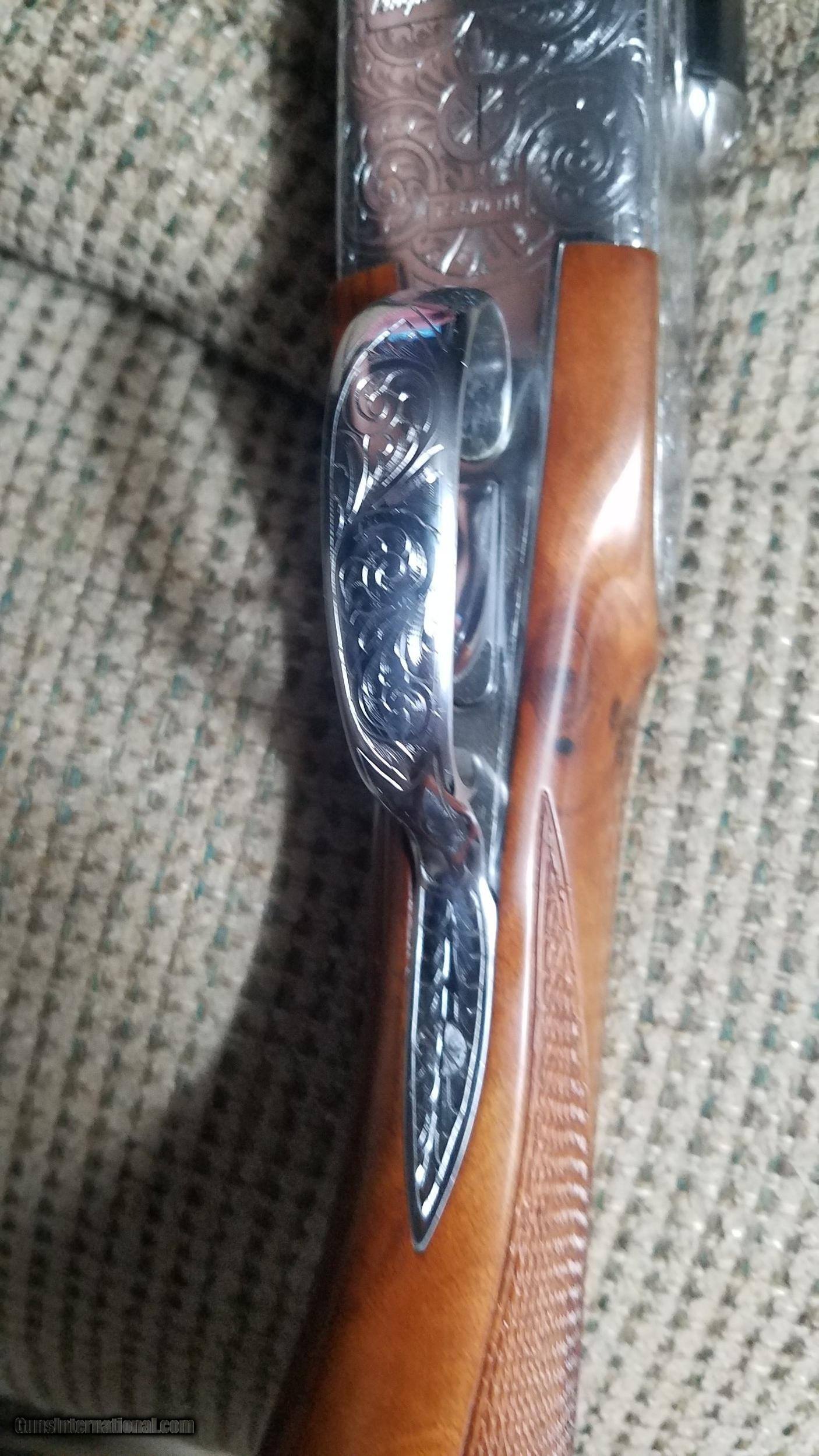Description: Unfired CZ-USA Huglu Ringneck Deluxe 12 ga sxs 28 in barrell with removable chokes and 3 inch chambers. Gun was a special order with selective ejectors and AAA circassian walnut stocks with Prince of Wales grip with checkered butt and long splinter foreend. Gun has single selectable trigger with excellent crisp pull. Gun is 100% factory unfired condition with full set of choke tubes. Great chance to own a one of a kind beautiful $1500.00 SOLD Manufacturer: Huglu Model: Ringneck Deluxe Chambers: 3 in Ejectors: Yes Condition: 100% Metal Condition: 100% Wood Condition: 100% Triggers: Single Gauge Info: 12 Stock Drop: 2 1/2 at heel Stock Comb: 1.5 Stock Heel: 2.5 Fore End: Splinter Butt Pad: Checkered butt LOP: 14.25 Finish: Gloss Weight: 7 lbs Chokes: Removable chokes |