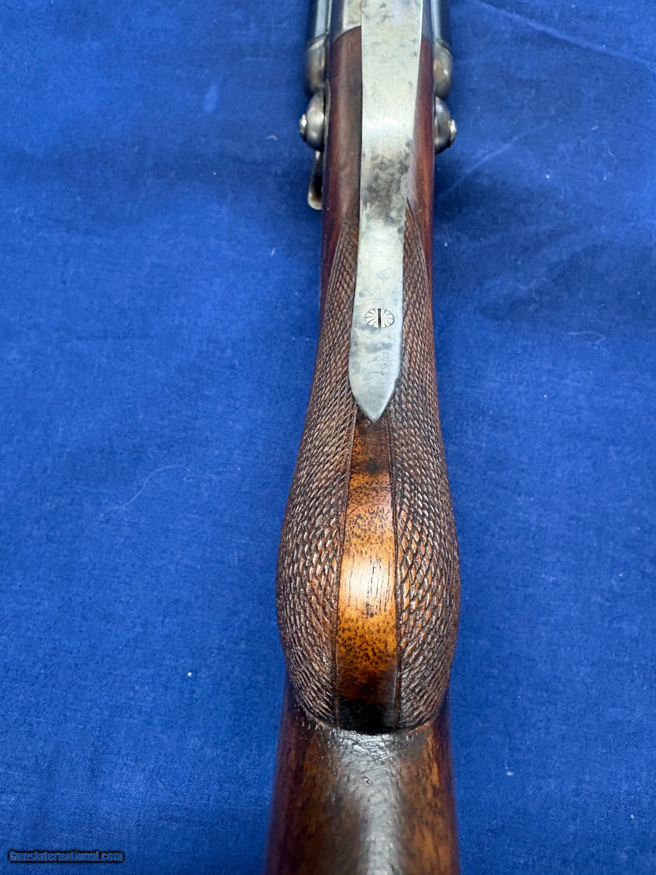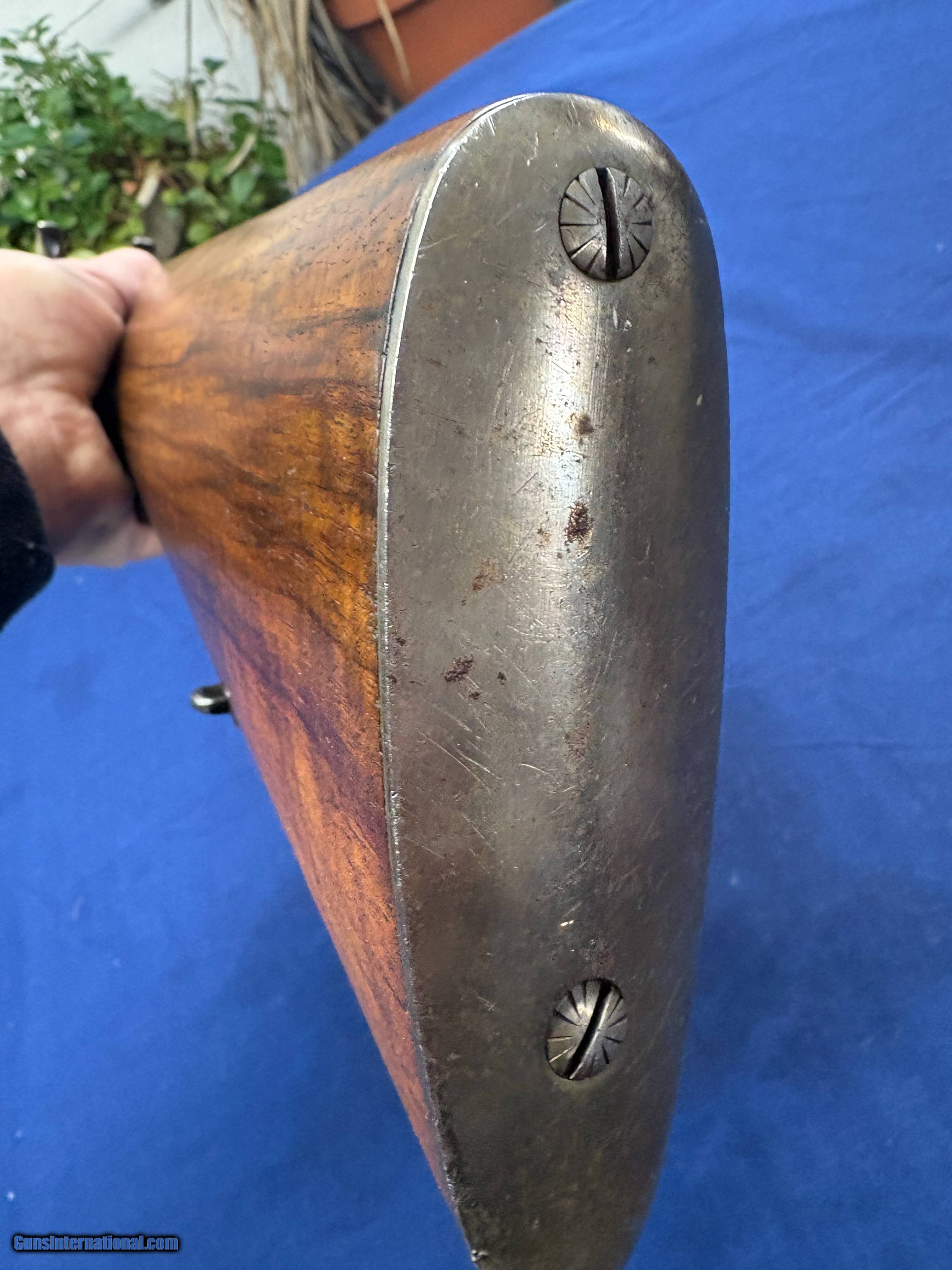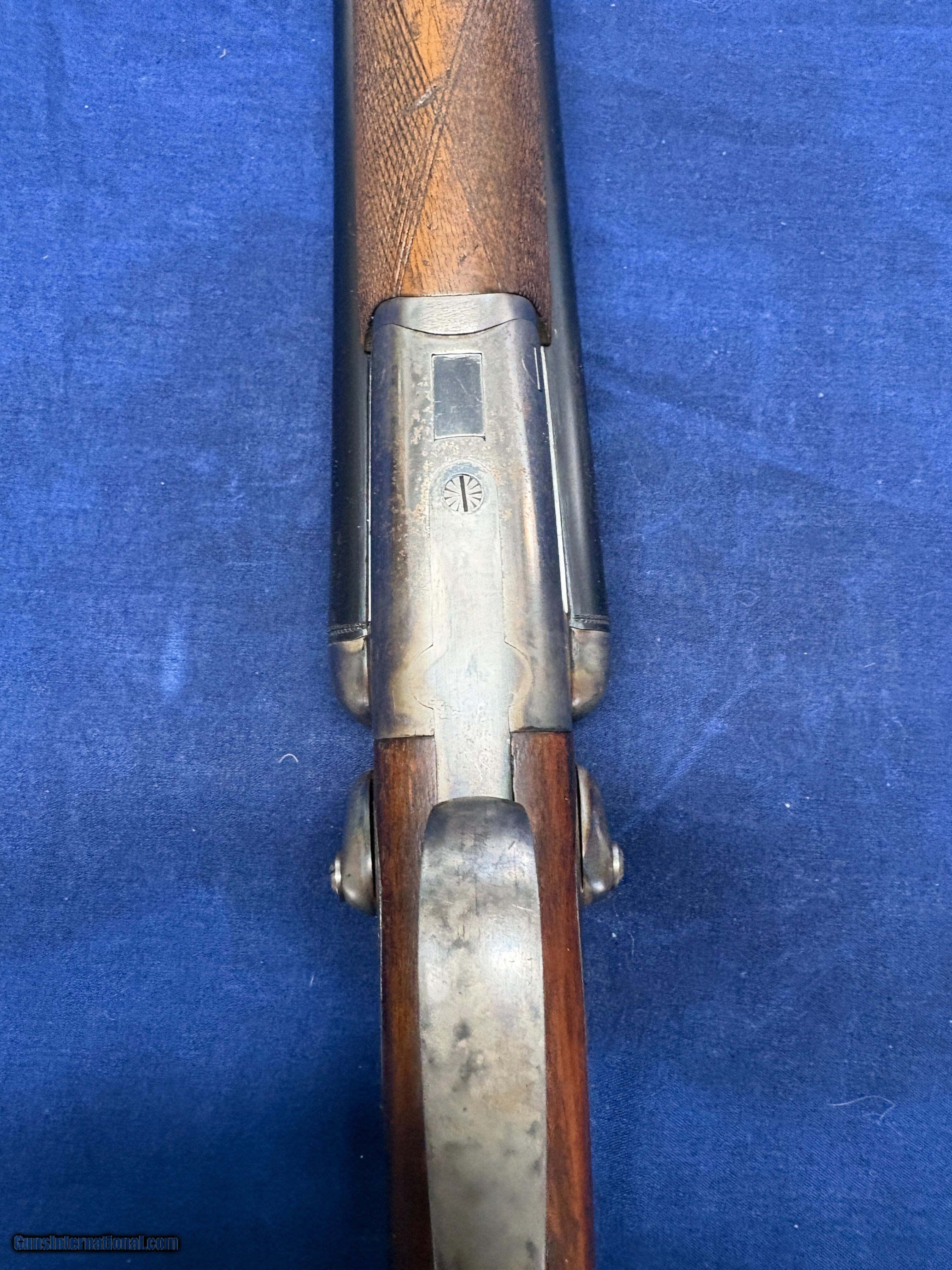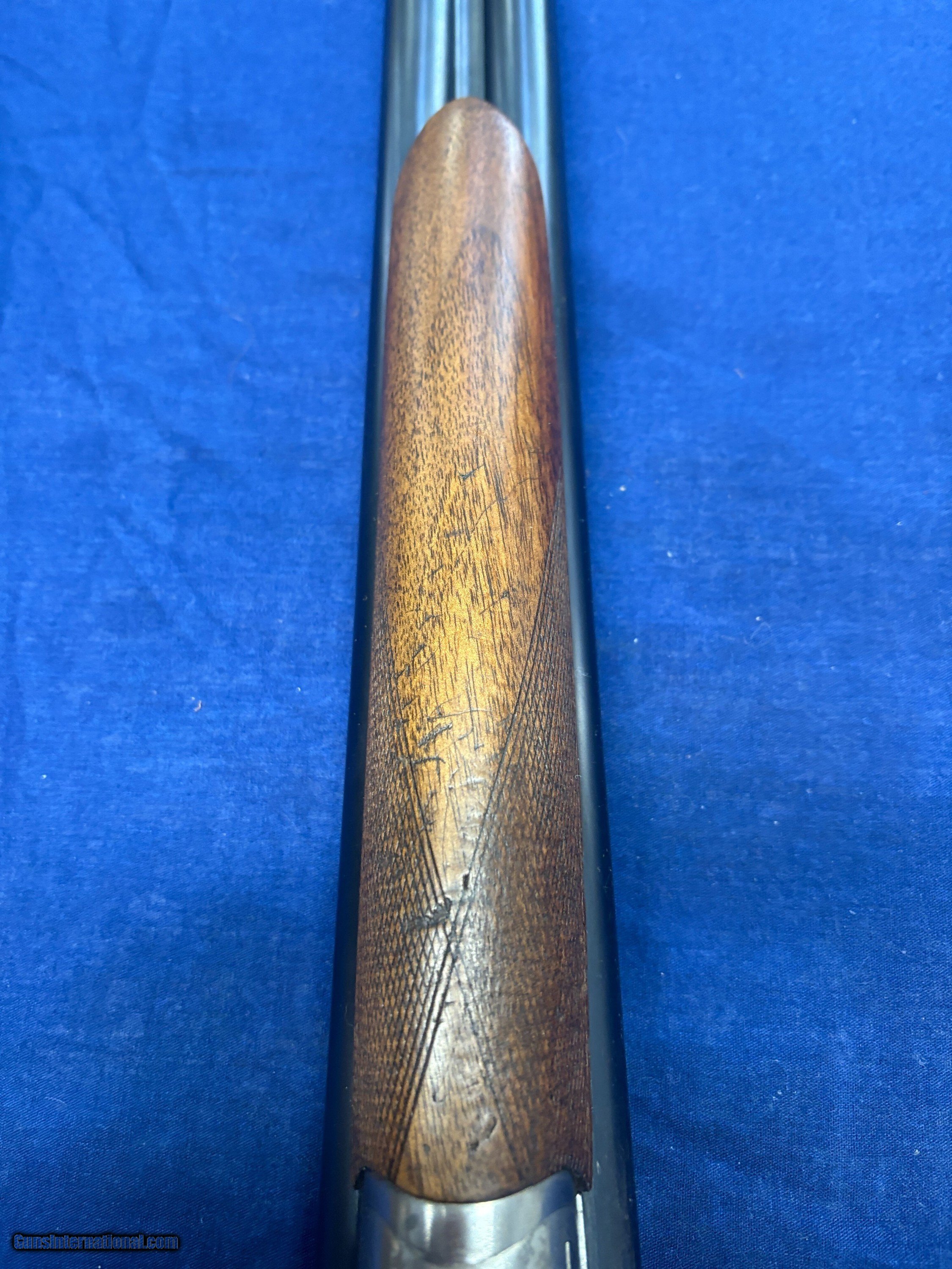 Description: This is a rare 12 gauge Husquvarna Model 51 hammer gun, as made in Sweden, prior to 1970...It is in exceptional excellent overall condition...The 27 1/2" barrels are choked mod and imp mod. 2 3/4" chambers, with excellent bores...Features fine back action lock work, as copied from the original JP Sauer design...Double under lugs and greener cross bolt make for a strong gun...Length of pull is 14 1/2"over steel butt plate. Stock drips are 1 5/8 and 2 5/8 inches...Weighs 6 7/8 pounds...Nice to see a solid hunting gun this old, this good... Curio/Relic: Yes Price: $850.00 Contact Seller |