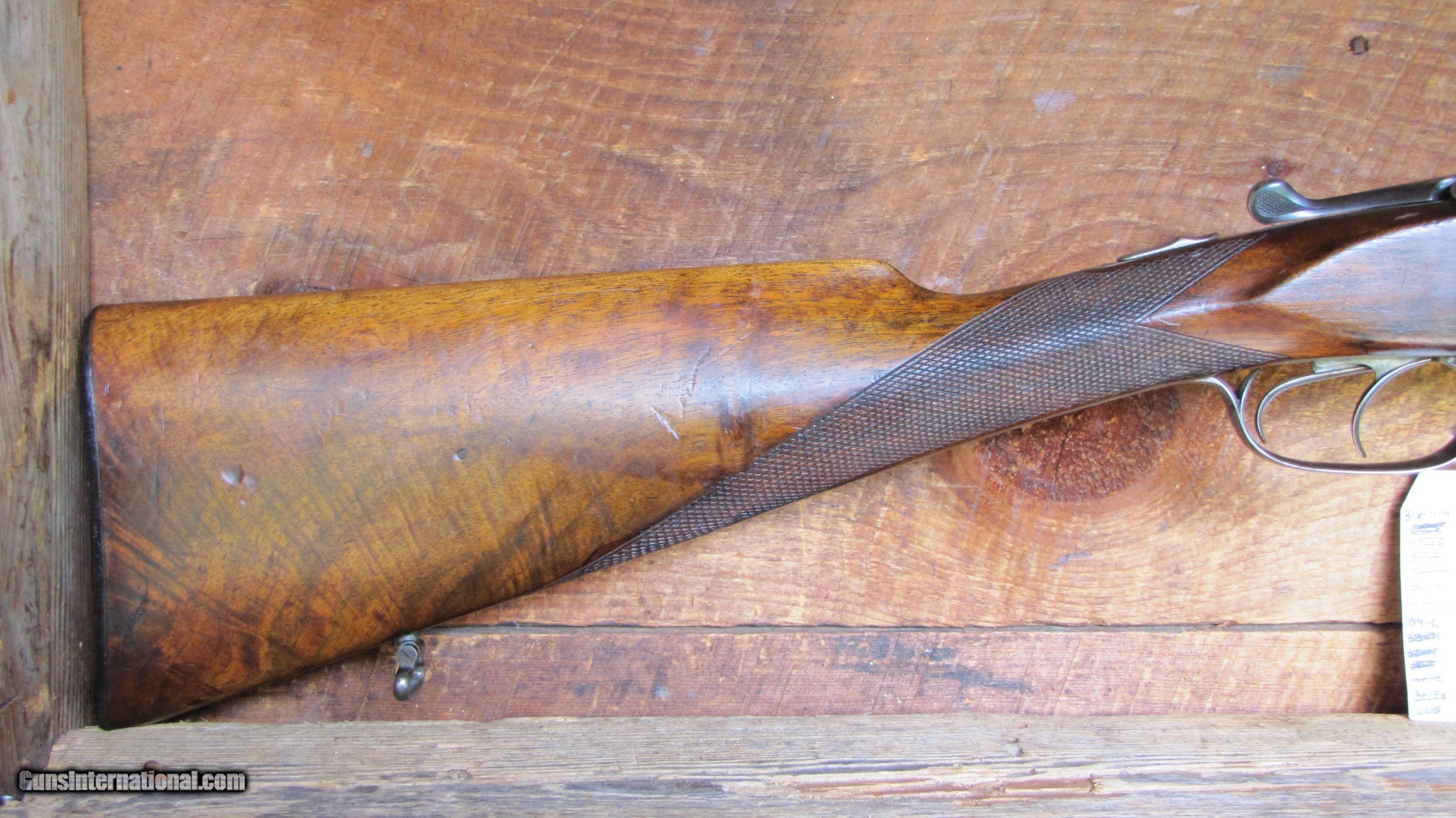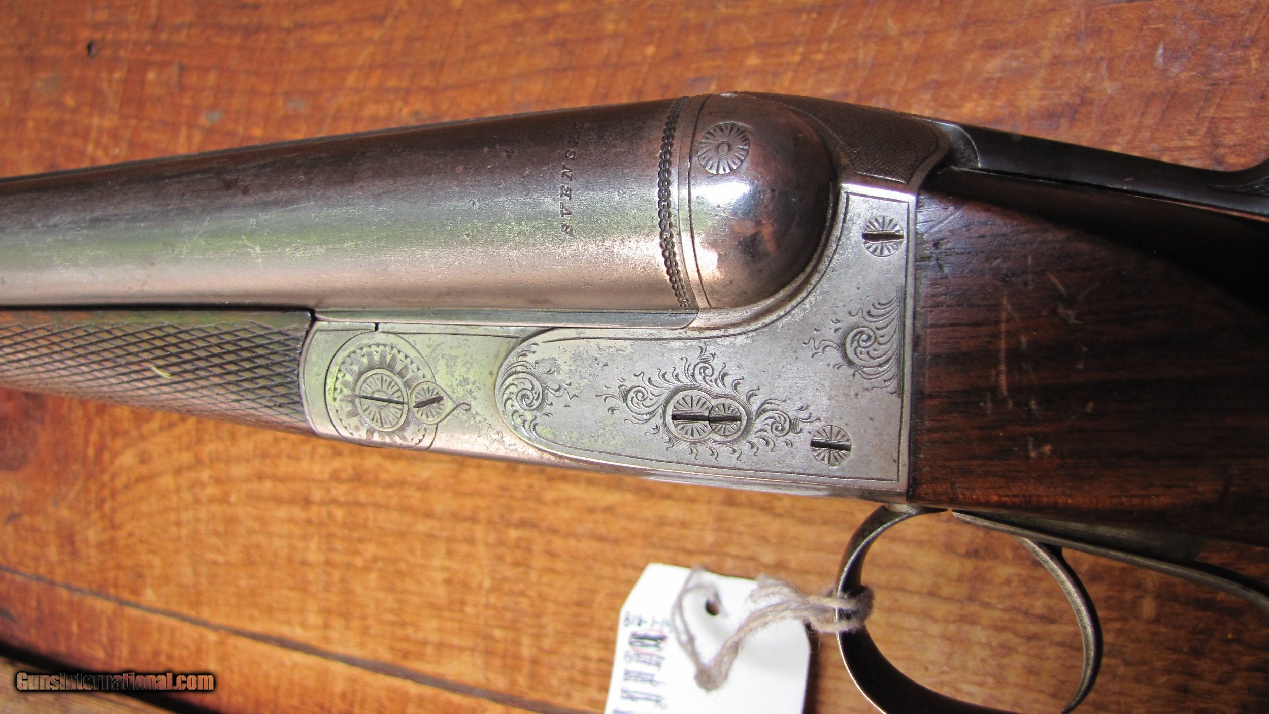 Description: Here is a Husqvarna 310 A SXS Shotgun chambered for 12 Ga 2-3/4" shells. The barrels are 29" long and are choked FULL and EXTRA FULL. The lock up has a tiny bit of wiggle and the action is smooth. The bores are shiny with some patchy areas of dark spots. The butt plate has some chips missing from the bottom and the wood has a chip at the toe. The weight is 6 lbs 14.5 oz. . The LOP to the front trigger is about 14.5". and the drop at the heel is about 2-3/8". Slight cast for right hand shooter about 1/4". Nice Swedish SxS from a great maker. We are required to charge 8.25% Sales Tax for Texas residents. There is a 3.5% fee if paying by credit card. SOLD Shotgun Gauge: 12 Gauge Manufacturer: Husqvarna Model: 310 A Serial Number: 144020 Barrel Length: 29 Condition: Good Metal Condition: Good Wood Condition: Good Bore Condition: Fair |