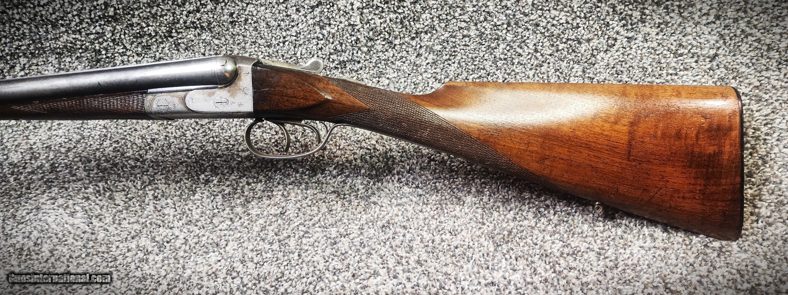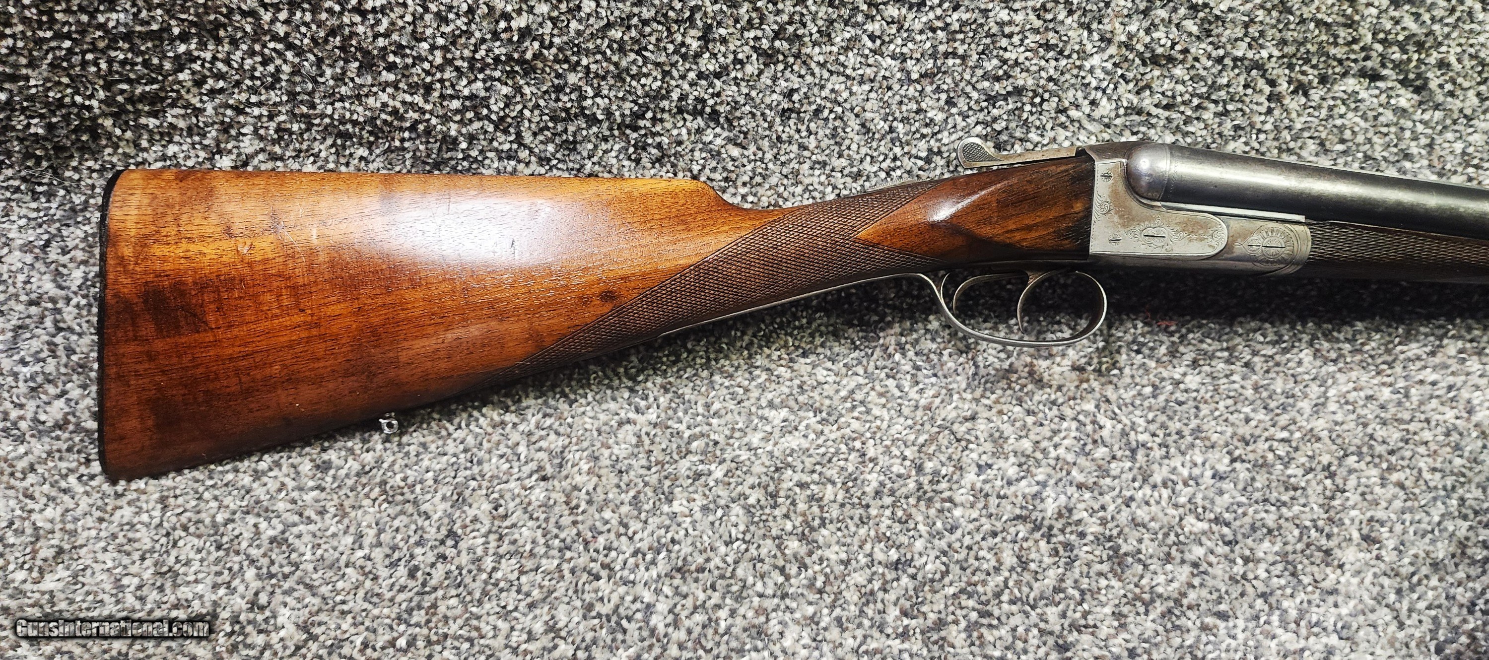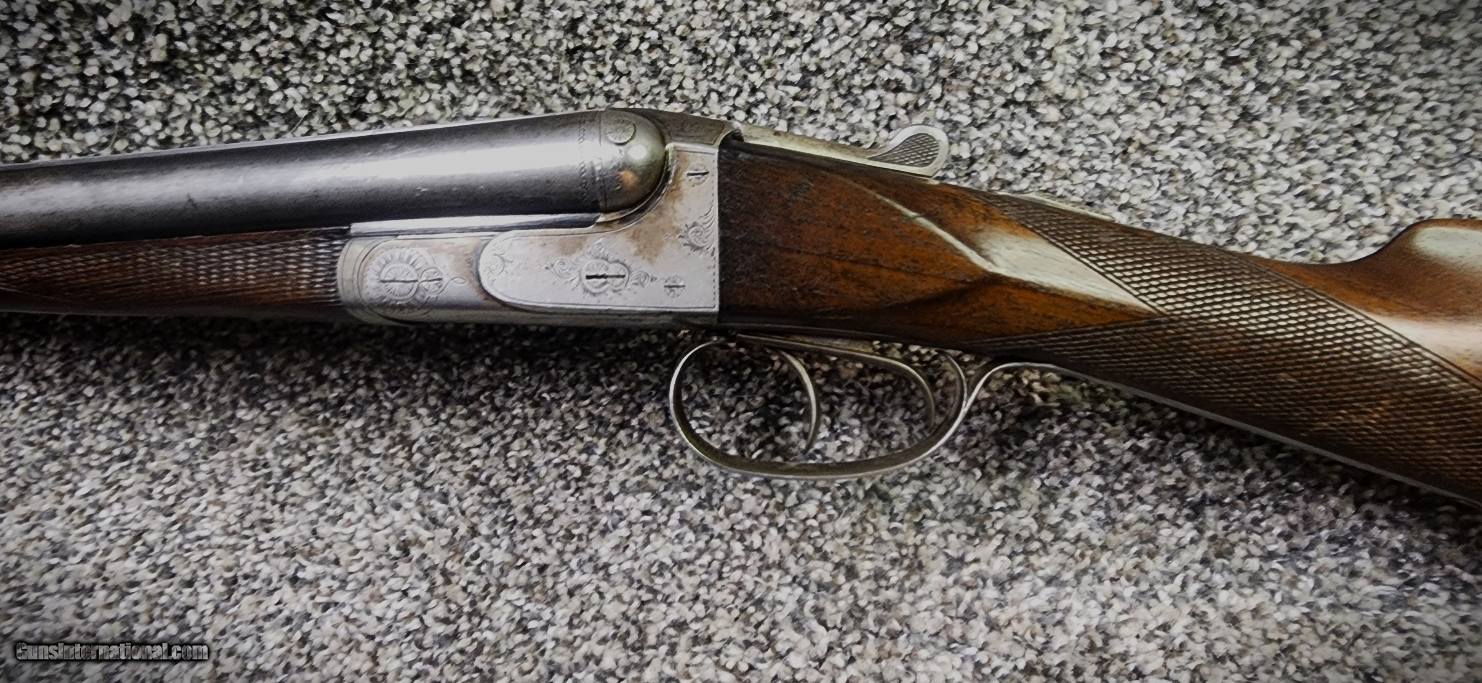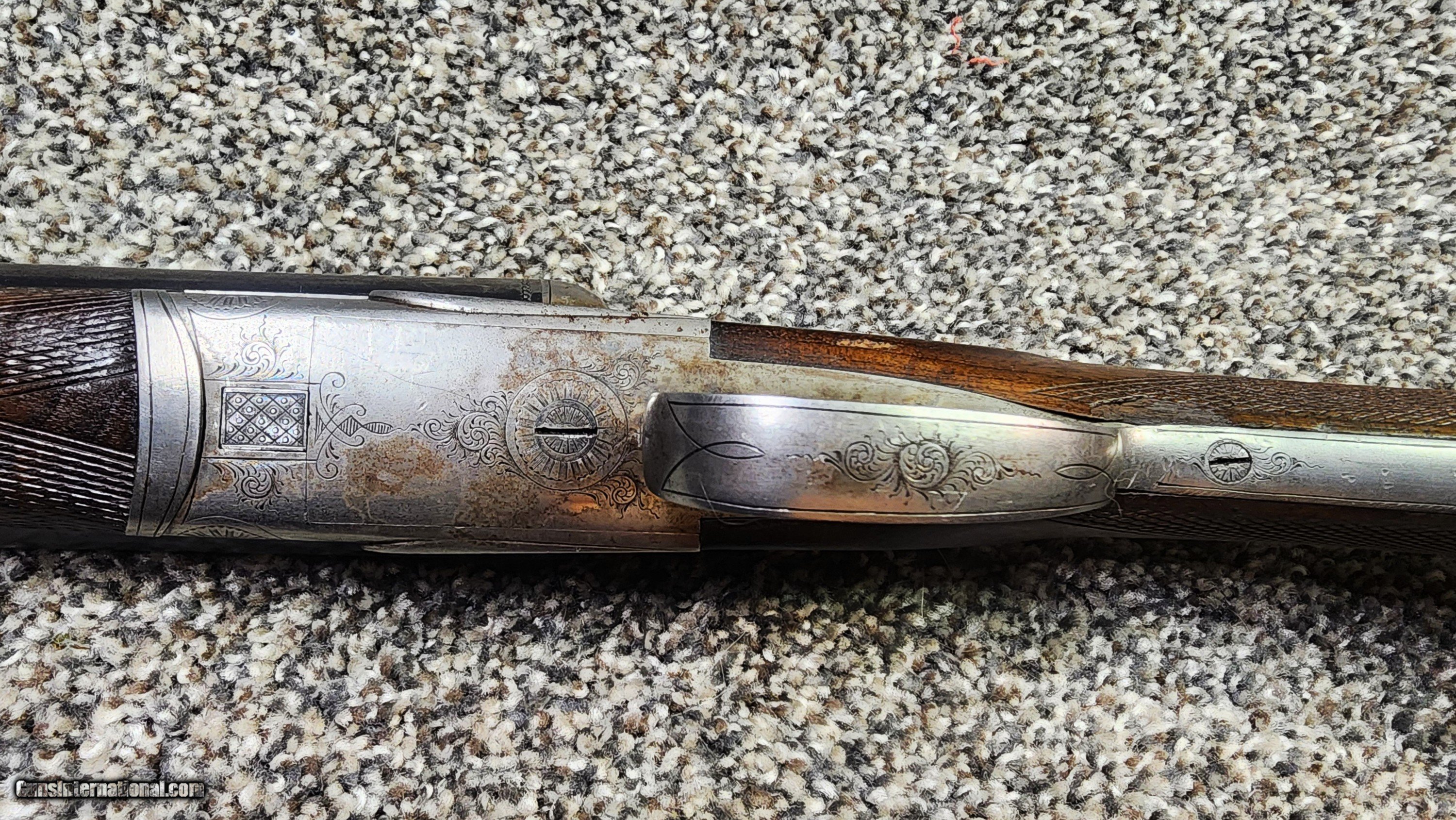 Description: Hard to find Husqvarna 310AS in 16ga, made in 1919. These are hiqh quality boxlocks made on Sauer crossbolt actions, with Swedish Special Steel barrels. This very good original condition example has 29.5" barrels choked im/xf, with 2 5/8" chambers and very good bores, would polish to excellent. Barrels ring. One light ding 5" from the left muzzle. I wouldn't hesitate to shoot off the shelf 2.75" 1oz loads in this gun. I shot a few rounds of trap and skeet with it and scored in the 20's. I also patterned it, and both barrels shoot exactly to point of aim. Strong action with tight lever right lockup with forend on or off. Barrel flats have rhunes that look like swastikas, but actually signify hammer forged barrels. Husqvarna discontinued using this during WWII. Solid wood, no cracks on buttstock, although forend does have a crack near the tip. Stock has a chip down by the tang. Both easy fixes. . Great shooting gun that weighs 6 lbs 8oz. This gun has it all, no issues, and would make an excellent restoration candidate and wonderful all around bird or clays gun. I can do the restoration work at extra cost. Feel free to inquire. 3 day inspection. You will love this gun! FFL/C&R required, $50 UPS ground shipping to lower 48, AK and HI extra. To pay by card, please call me directly at 253.241.8190. Thanks. SOLD Curio/Relic: Yes Shotgun Gauge: 16 Gauge Manufacturer: Husqvarna Model: 310AS Barrel Length: 29.5 Chambers: 2 5/8 Ejectors: extractor Condition: Very Good Bore Condition: Very Good Barrels: Swedish Special Steel Action: Boxlock non ejector Stock Dimensions: 1 9/16 x 2 5/8 x 14 7/8 Stock Cast: Cast off Butt Pad: Original bone plate Weight: 6lbs 8 oz Manufacture Date: 1919 Choke Left: xf Choke Right: im Proof:Nitro: Yes |