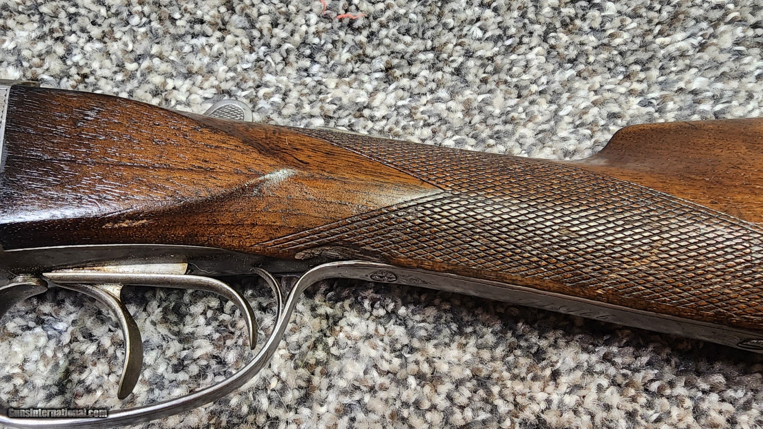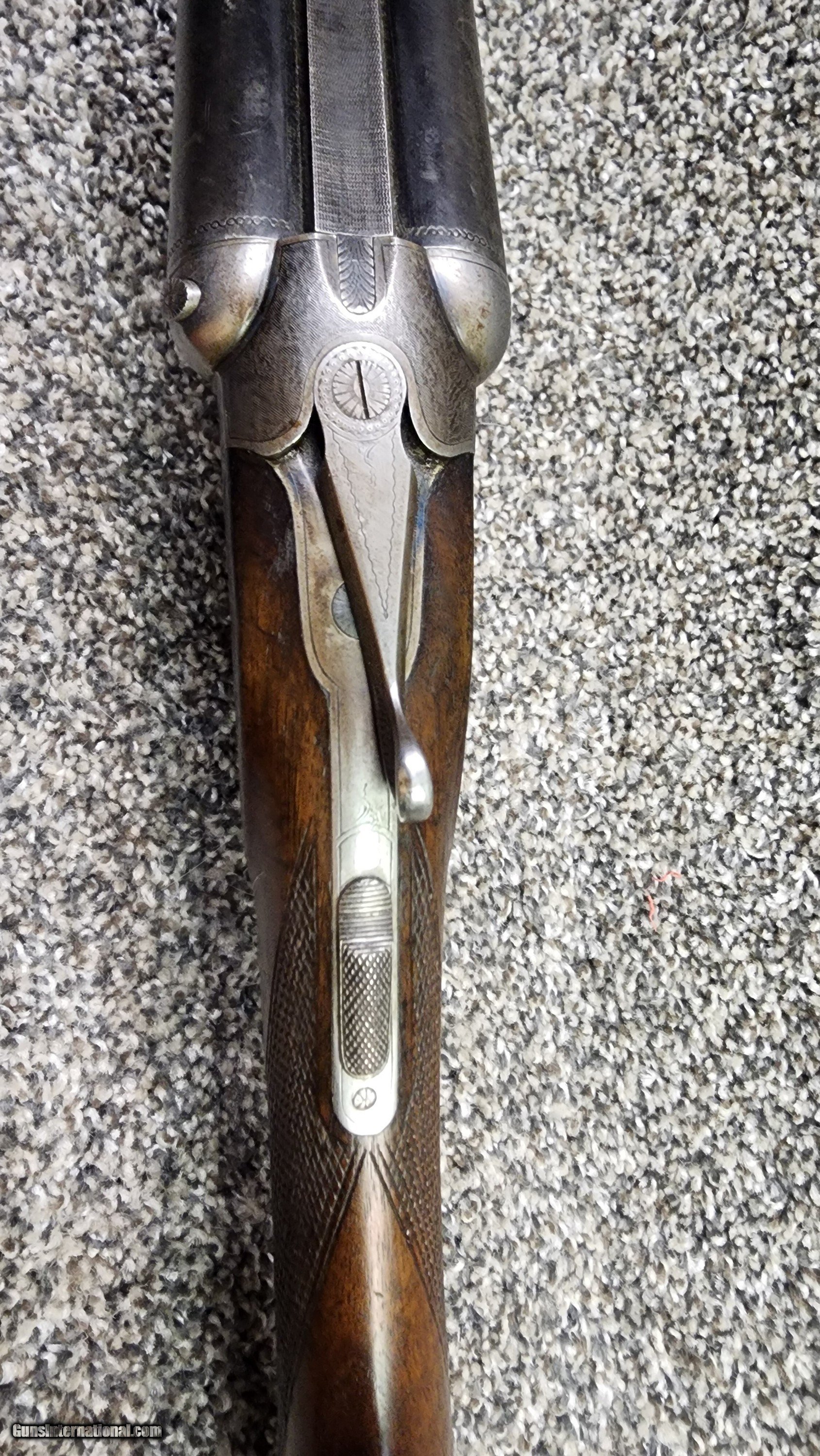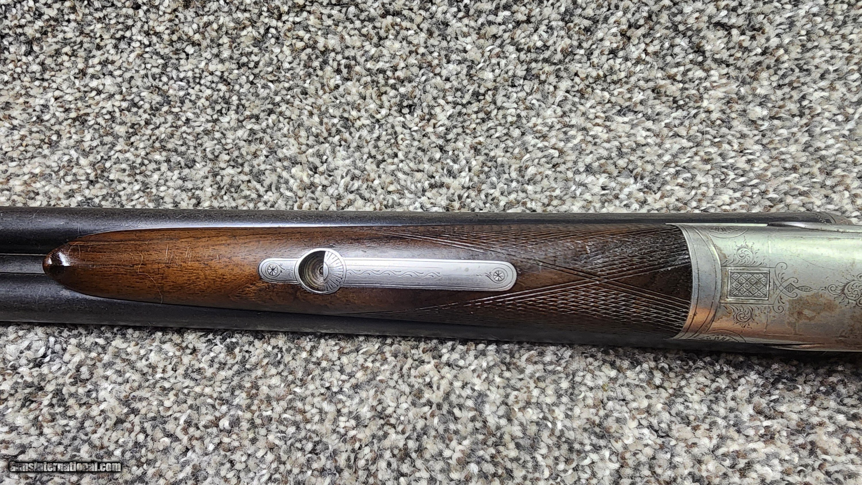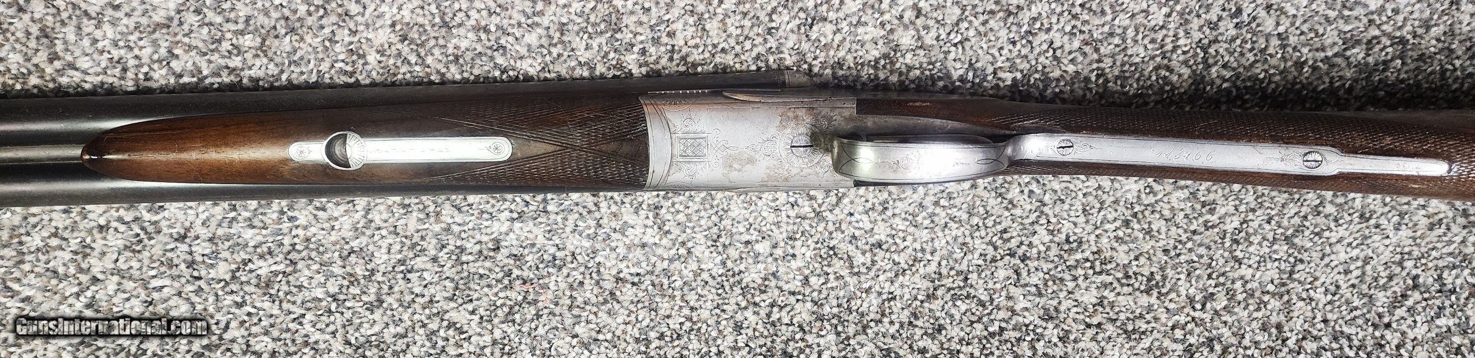 Description: Hard to find Husqvarna 310AS in 16ga, made in 1919. These are hiqh quality boxlocks made on Sauer crossbolt actions, with Swedish Special Steel barrels. This very good original condition example has 29.5" barrels choked im/xf, with 2 5/8" chambers and very good bores, would polish to excellent. Barrels ring. One light ding 5" from the left muzzle. I wouldn't hesitate to shoot off the shelf 2.75" 1oz loads in this gun. I shot a few rounds of trap and skeet with it and scored in the 20's. I also patterned it, and both barrels shoot exactly to point of aim. Strong action with tight lever right lockup with forend on or off. Barrel flats have rhunes that look like swastikas, but actually signify hammer forged barrels. Husqvarna discontinued using this during WWII. Solid wood, no cracks on buttstock, although forend does have a crack near the tip. Stock has a chip down by the tang. Both easy fixes. . Great shooting gun that weighs 6 lbs 8oz. This gun has it all, no issues, and would make an excellent restoration candidate and wonderful all around bird or clays gun. I can do the restoration work at extra cost. Feel free to inquire. 3 day inspection. You will love this gun! FFL/C&R required, $50 UPS ground shipping to lower 48, AK and HI extra. To pay by card, please call me directly at 253.241.8190. Thanks. SOLD Curio/Relic: Yes Shotgun Gauge: 16 Gauge Manufacturer: Husqvarna Model: 310AS Barrel Length: 29.5 Chambers: 2 5/8 Ejectors: extractor Condition: Very Good Bore Condition: Very Good Barrels: Swedish Special Steel Action: Boxlock non ejector Stock Dimensions: 1 9/16 x 2 5/8 x 14 7/8 Stock Cast: Cast off Butt Pad: Original bone plate Weight: 6lbs 8 oz Manufacture Date: 1919 Choke Left: xf Choke Right: im Proof:Nitro: Yes |