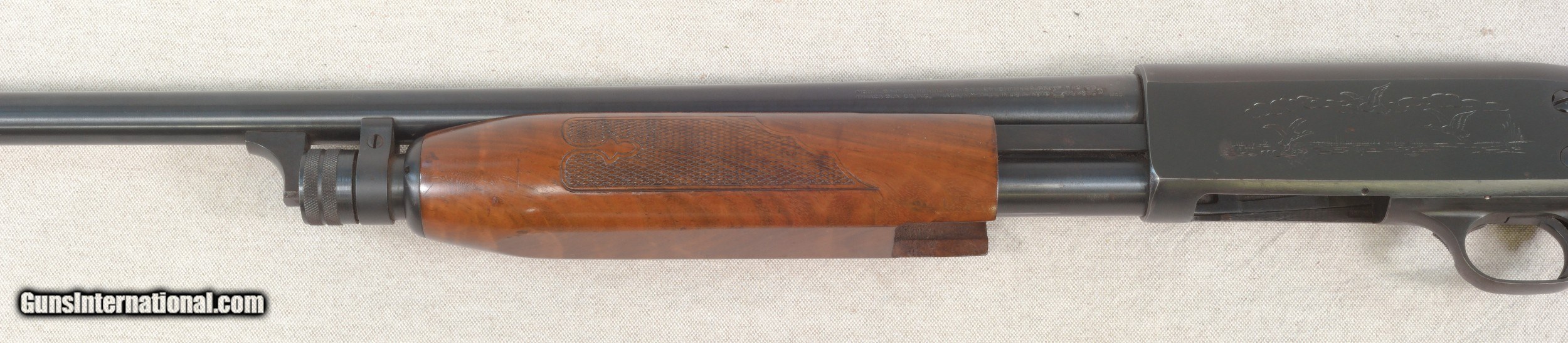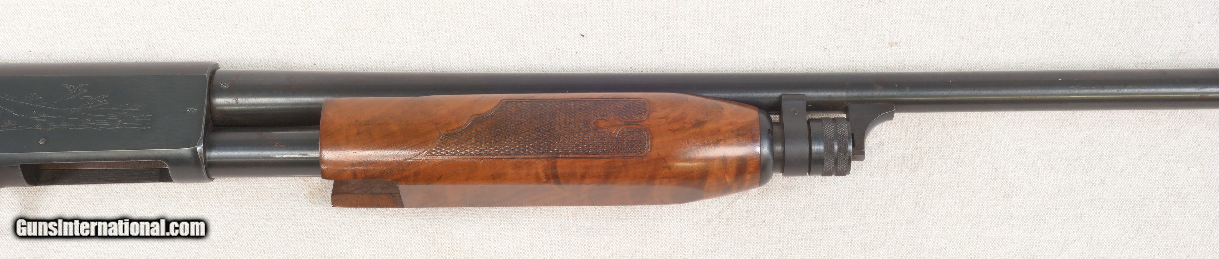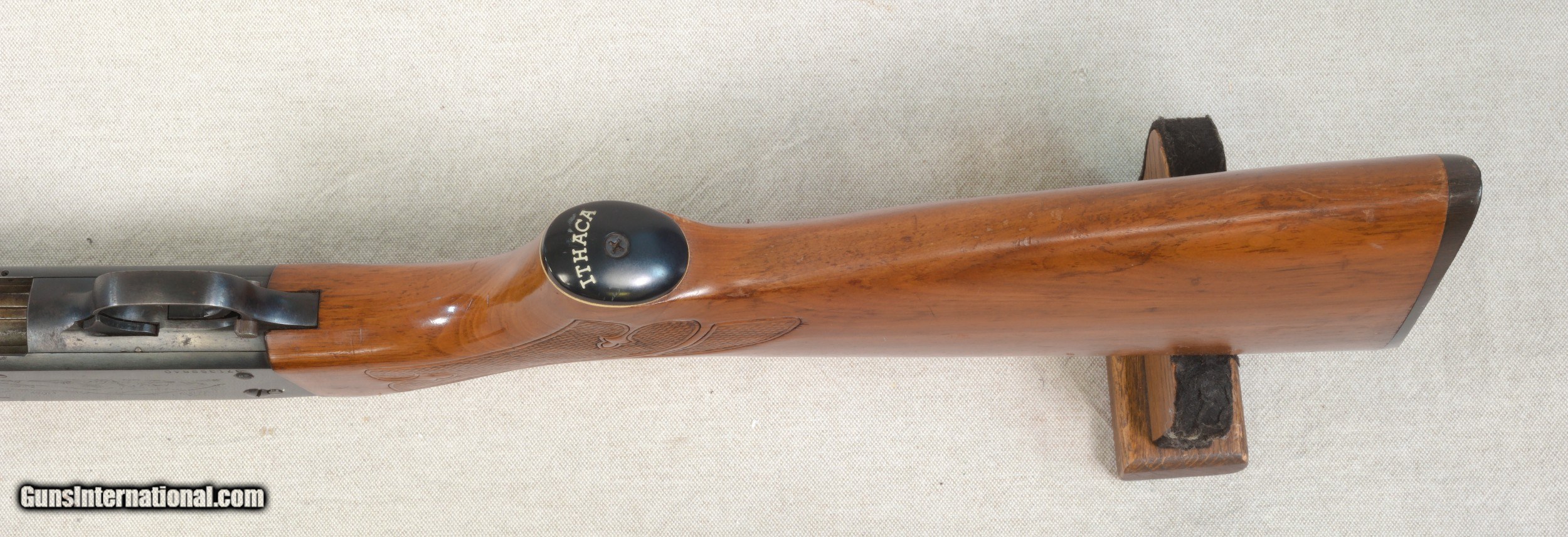 Description: Here we have an honest workhorse of a pump shotgun - an Ithaca Model 37 16 gauge. The Ithaca Model 37 is a true American classic. It’s the lone survivor of the pre-World War II pump-action shotguns—the Winchester Model 12 and Model 97, and the Remington 31. What set the 37 apart was its action. The model 37 ejects empty shells at the bottom. Bottom ejection has several benefits: Empties are ejected at the shooter’s feet (and not at a buddy), the action is better protected from debris and bottom-ejecting guns work well for left-handed shooters. This particular example is in good overall condition. The finish has a few spots of light wear and some high edge wear. The 28 inch barrel has a good bore and is choked fixed modified. The front bead sight is missing but that wouldn't be hard to fix. The left side of the receiver has a waterfowl scene and on the right is an upland scene. PRICE: $**SOLD** We are Antique & Modern Firearms in Lexington, KY, a dealer of fine firearms since 1974. To Inquire please phone us at 859-276-1419 Mon-Fri 9am to 5pm We Buy, Sell, and Trade Firearms & Knives. Have an Individual Firearm, Firearms Collection, or Firearms Estate to sell, let us know, and we can buy or consignment sell it for you. NOTE: No additional fee for a Credit Card payment SOLD Shotgun Gauge: 16 Gauge Manufacturer: Ithaca Model: 37 Featherlight Serial Number: 371359840 Barrel Length: 28 inches Chambers: 2 3/4 inch Condition: Good Metal Condition: Good Wood Condition: Good Bore Condition: Good Action: Pump LOP: 14 inches Chokes: Fixed Modified |
