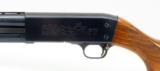 Ithaca 37 12 Gauge shotgun. Deluxe pump action with 26” vent rib screw choke barrel and checkered walnut stock. Excellent condition.