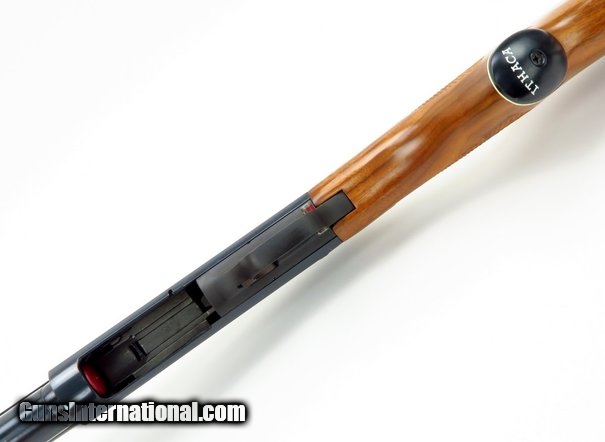 Description: Ithaca 37 12 Gauge shotgun. Deluxe pump action with 26” vent rib screw choke barrel and checkered walnut stock. Excellent condition.