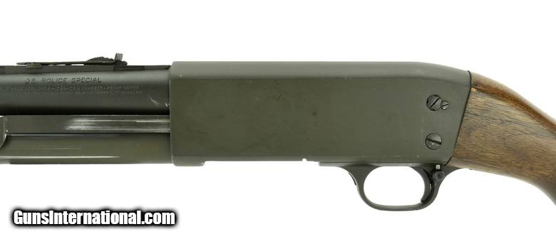 Description: Ithaca 37 FL Police Special 12 Gauge shotgun. Original police riot gun with parkerized finish and extended magazine tube. Near excellent condition with light wear.