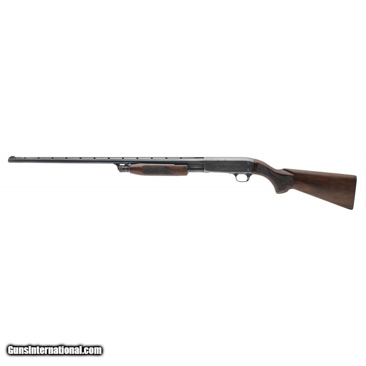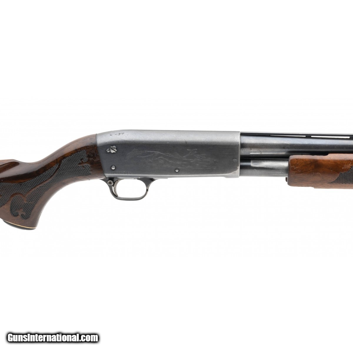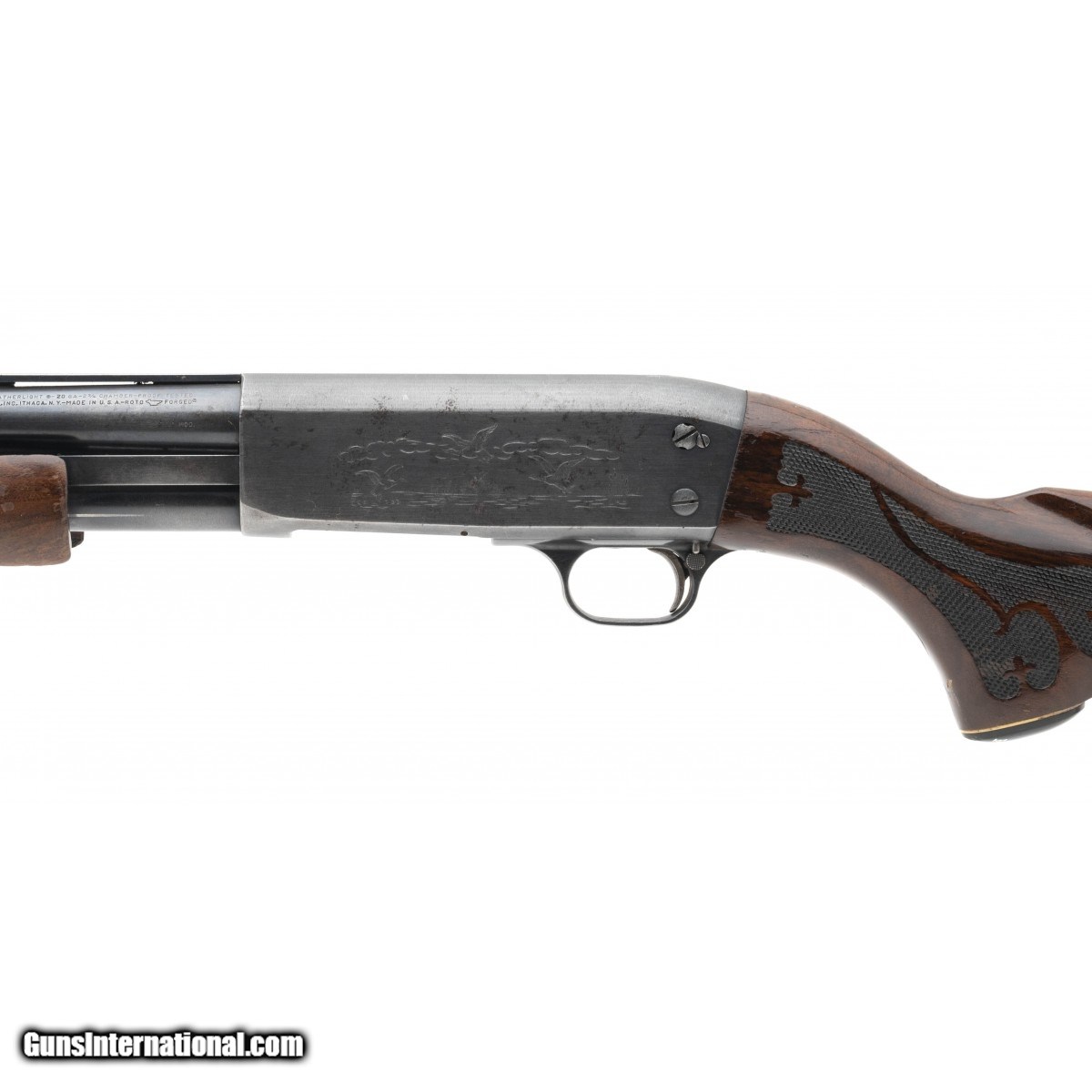 Description: " SN:371102635. Manufactured circa 1970, 20 Gauge with a 27"" barrel. Bore is in excellent condition. Pump action shotgun with vent rib barrel, improved modify choke, fiber optic front sight and engraved receiver. Overall condition is very good with bluish greyish patina. SOLD Curio/Relic: Yes |