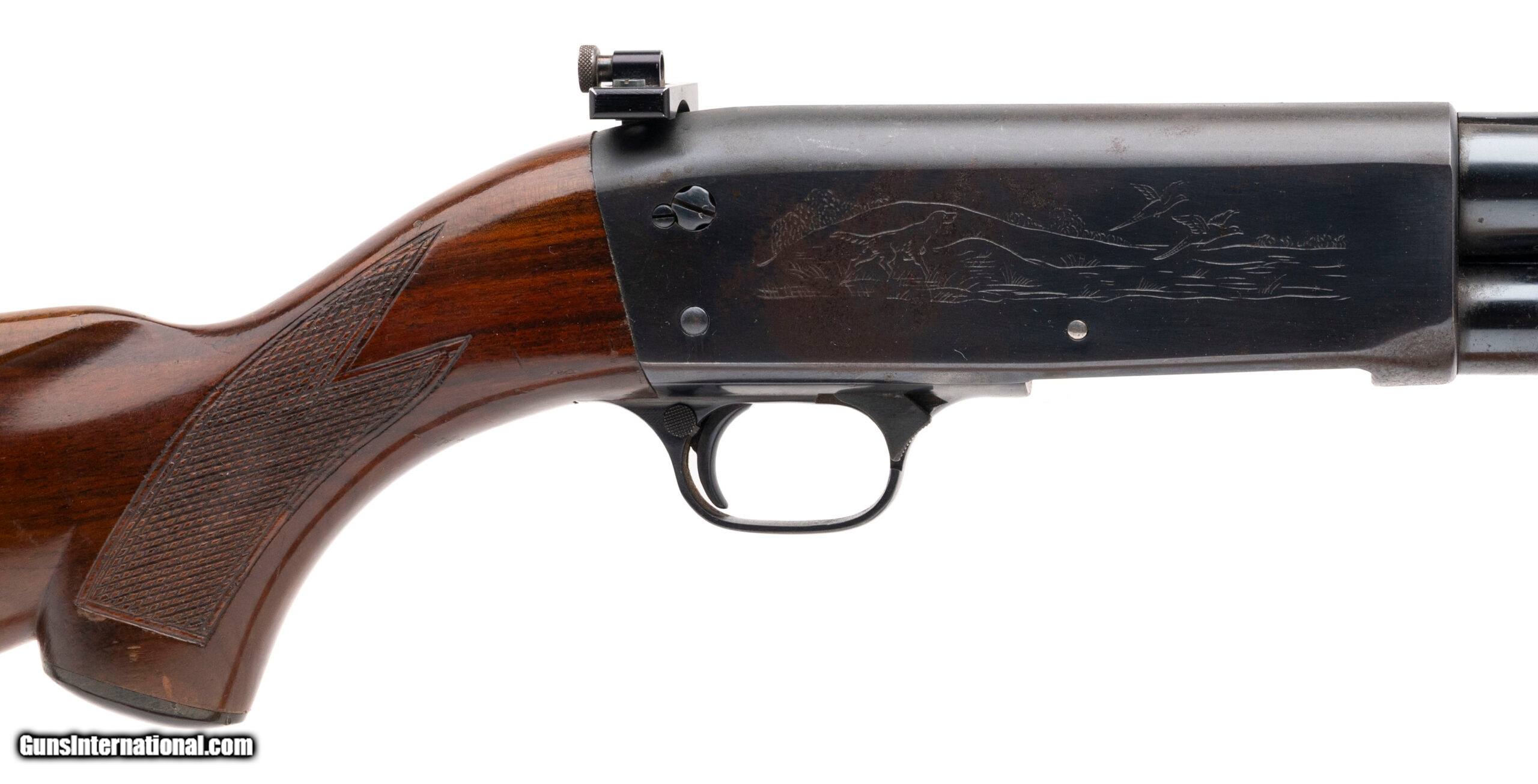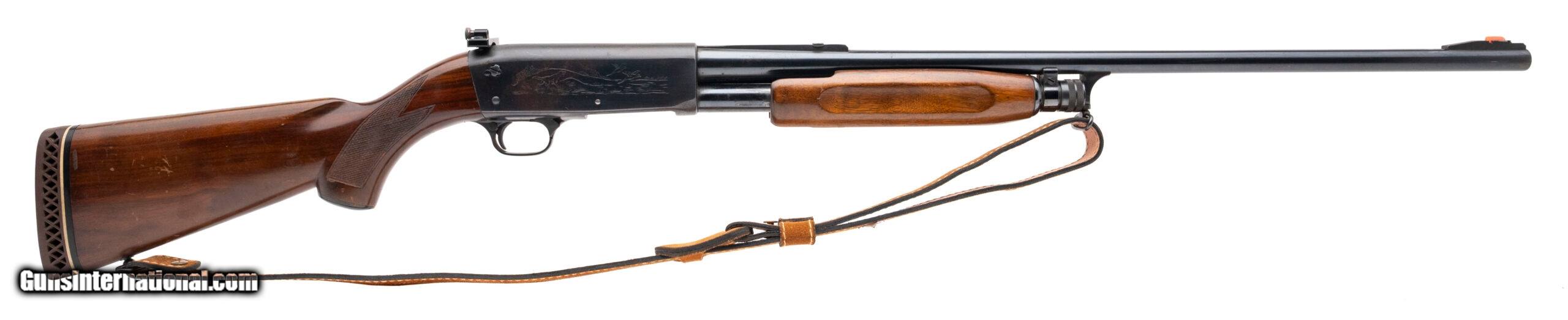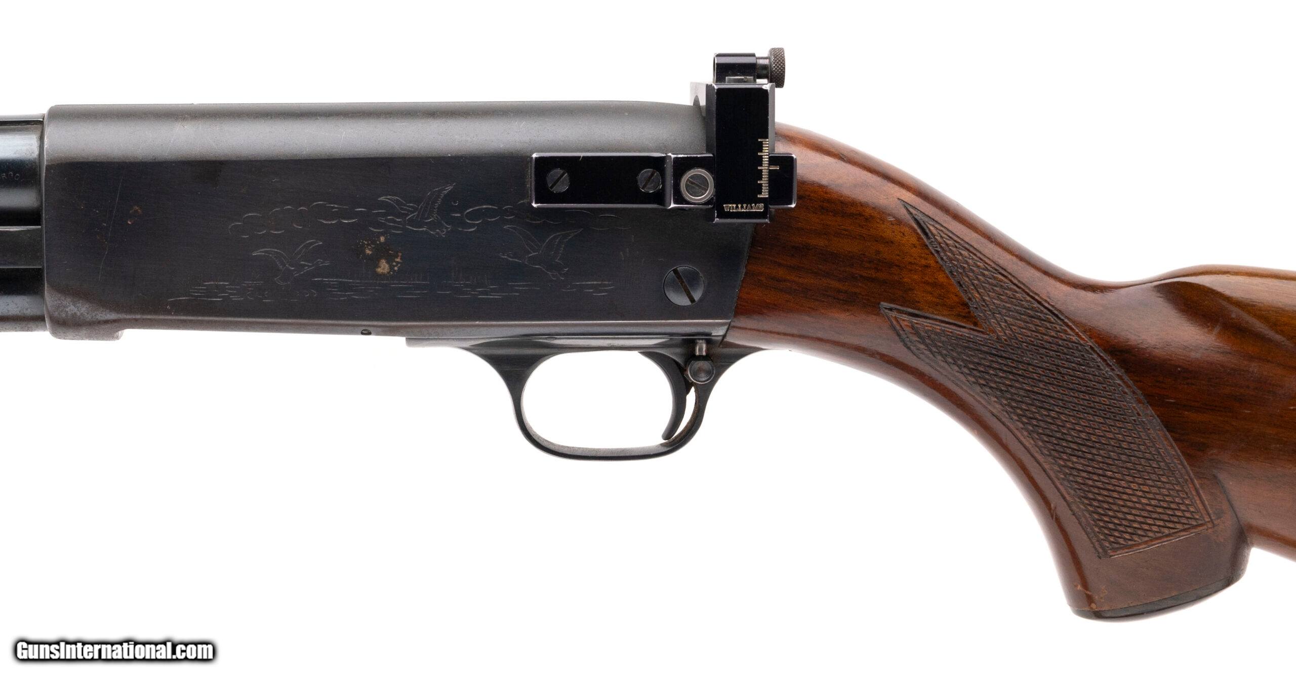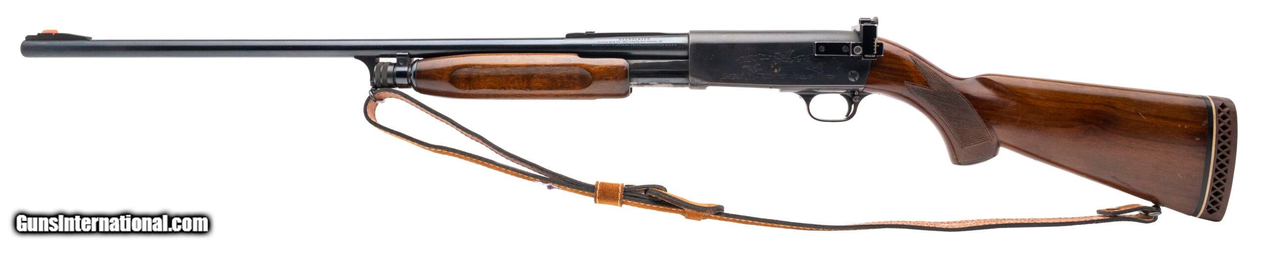 Description: "SN: 780775 made circa 1961. 20 gauge pump action smooth bore slug shotgun with a 26" round barrel with ramped front sight, quarter rib with dovetail filler and a Williams peep sight mounted to the rear of the action. Walnut furniture with a 13.25" LOP to a Pachmayr recoil pad. Some patina on the right side of the action but other than that just some normal handling marks from field use. Overall in good condition. Price: $495.00 Contact Seller |