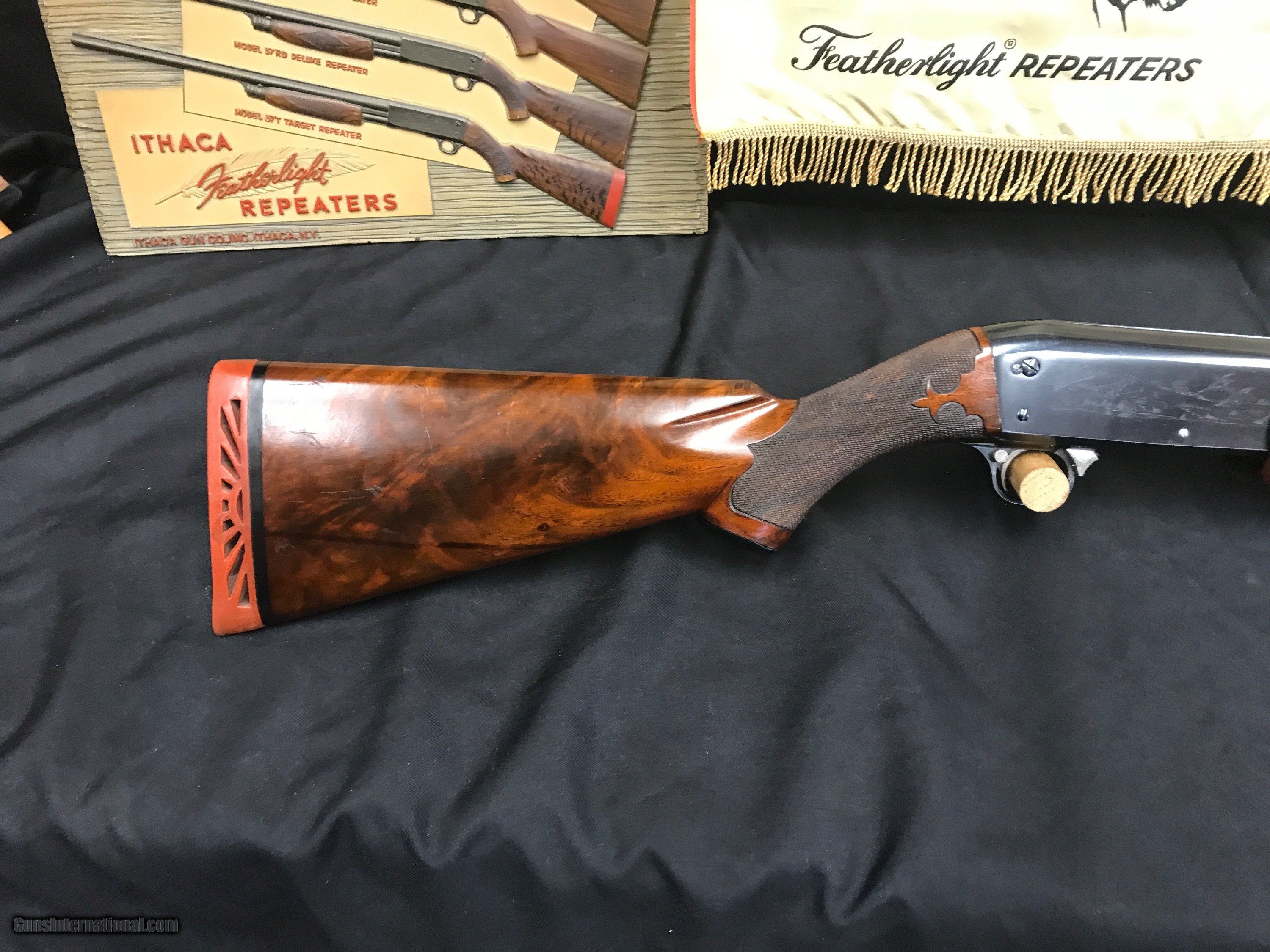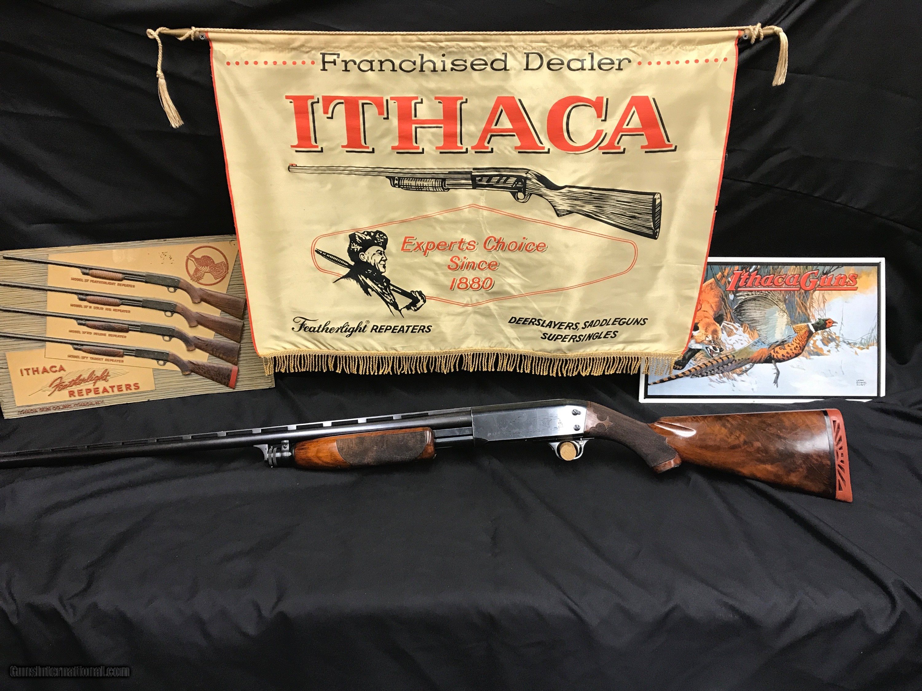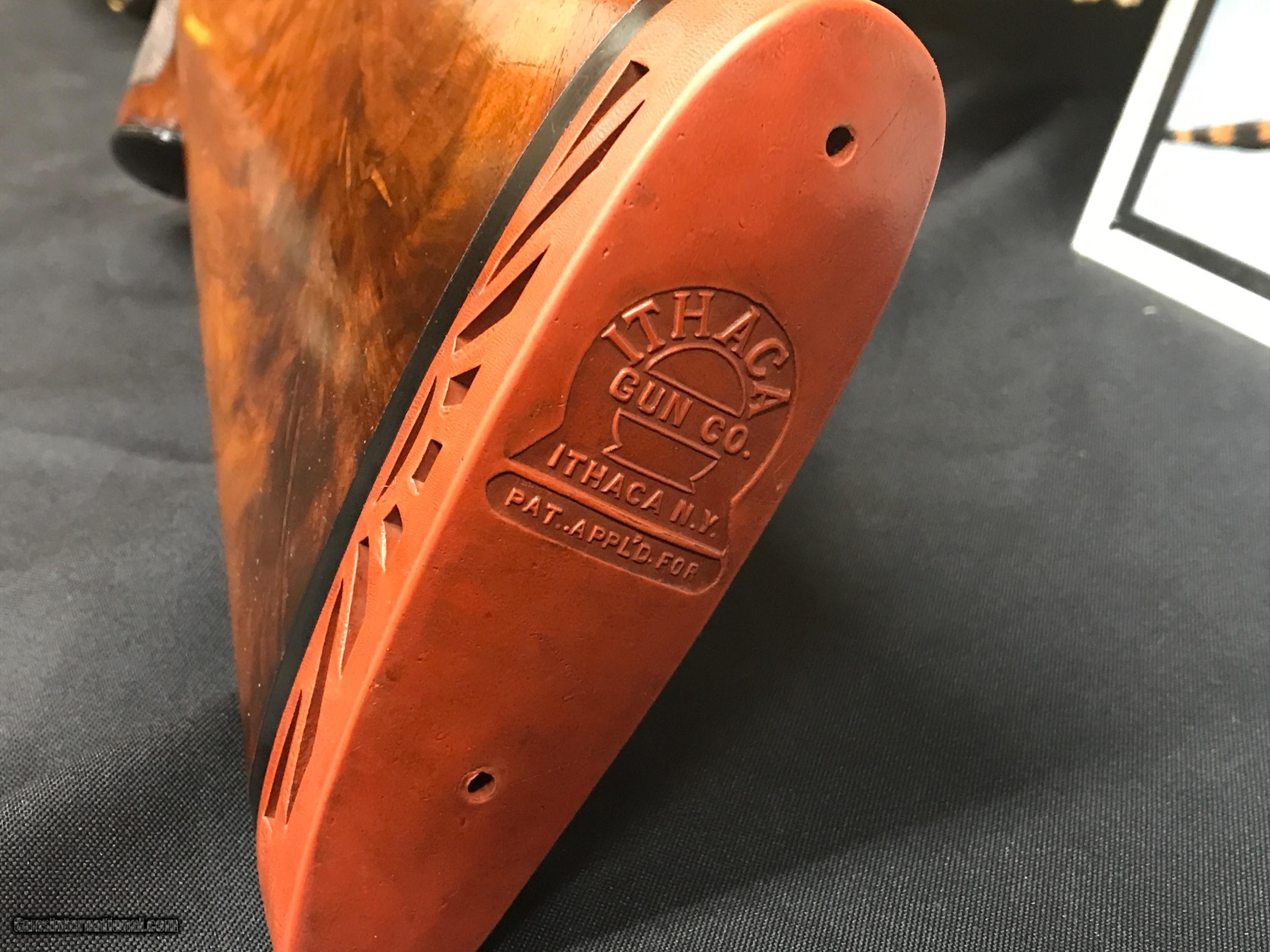 Description: We have a 1940 Ithaca16 Ga Pre War Trap , this is nearly an impossible gun to find , it features a 28'' Imp/cyl barrel with original ivory beads , the checkering is sharp, the wood has the original finish with no cracks or splits , bluing is the original Ithaca high gloss finish with no dents or rust . Again this gun is nearly impossible to find in this configuration and condition . Any questions please call or e-mail 607-227-4088 . Insured shipping 75.00$ to lower 48 , offers will be considerd . Thank You SOLD |