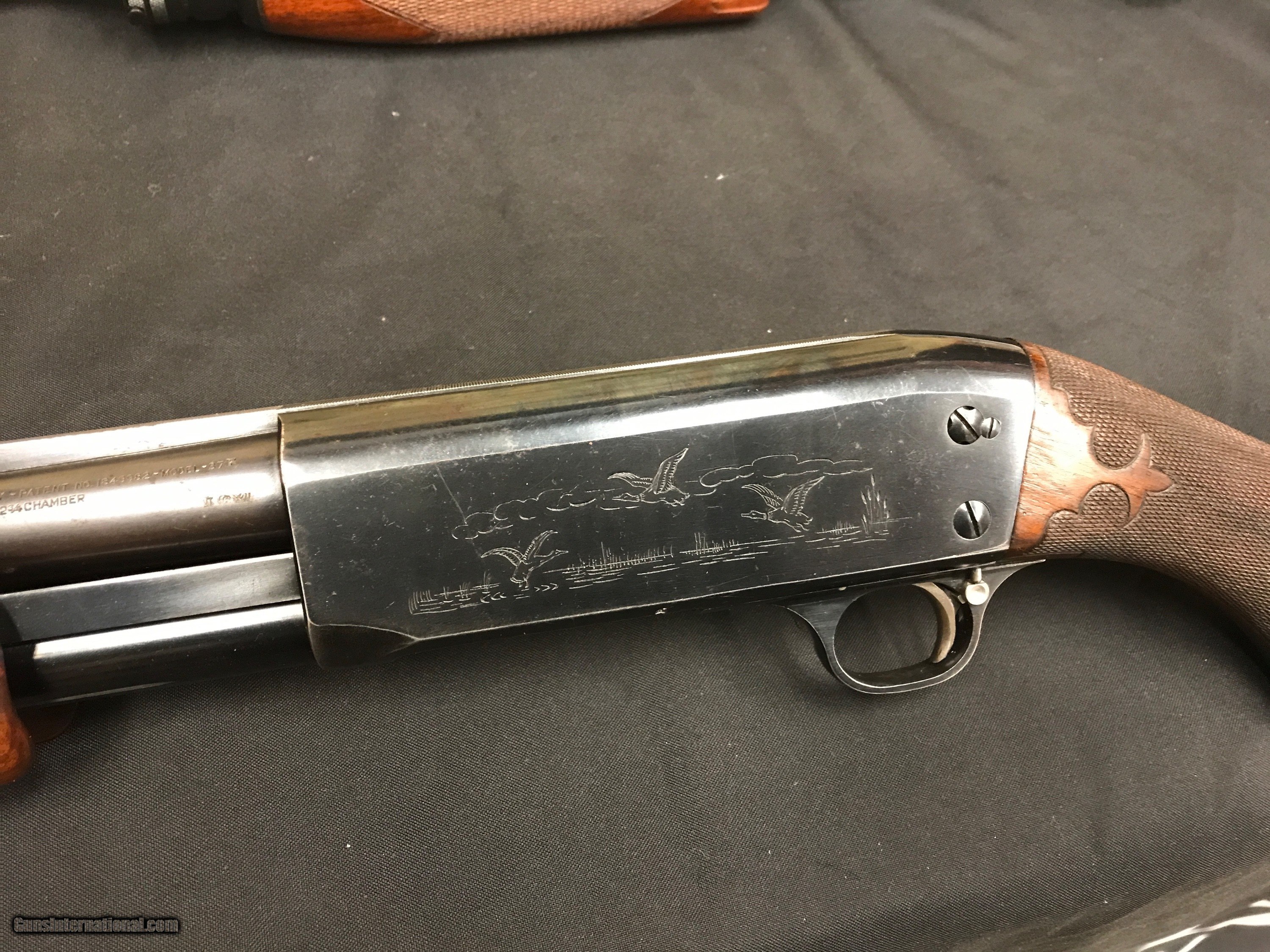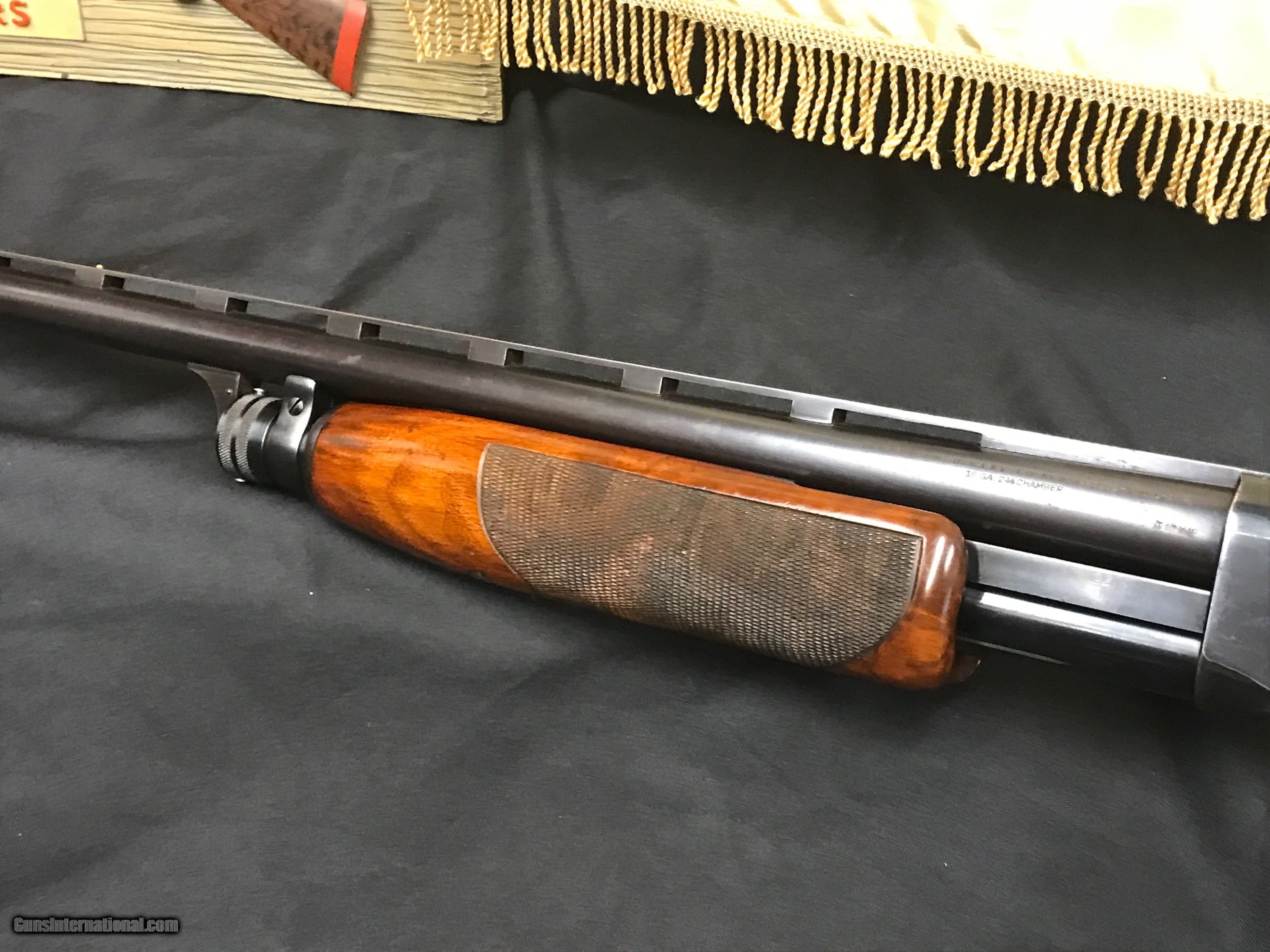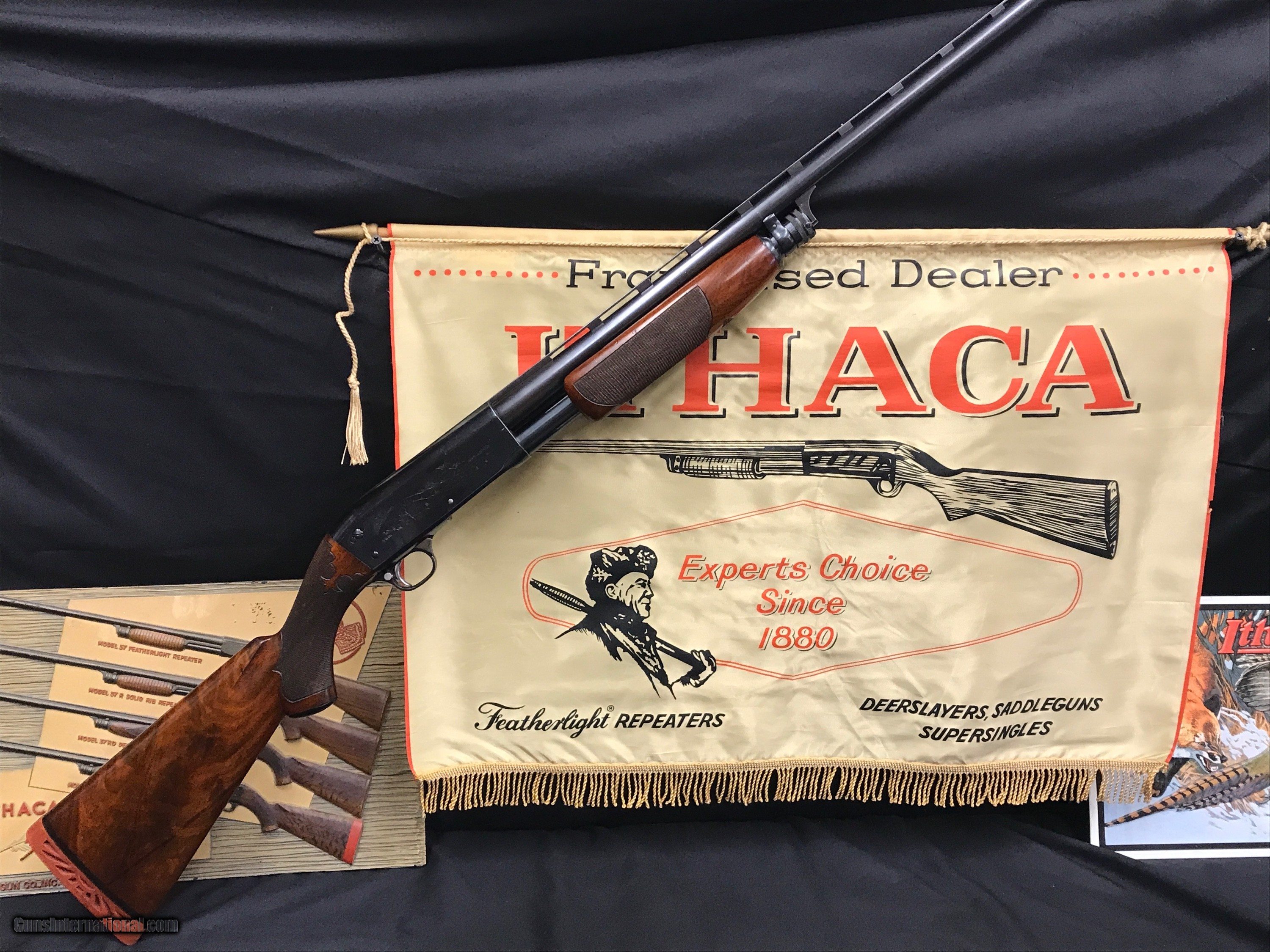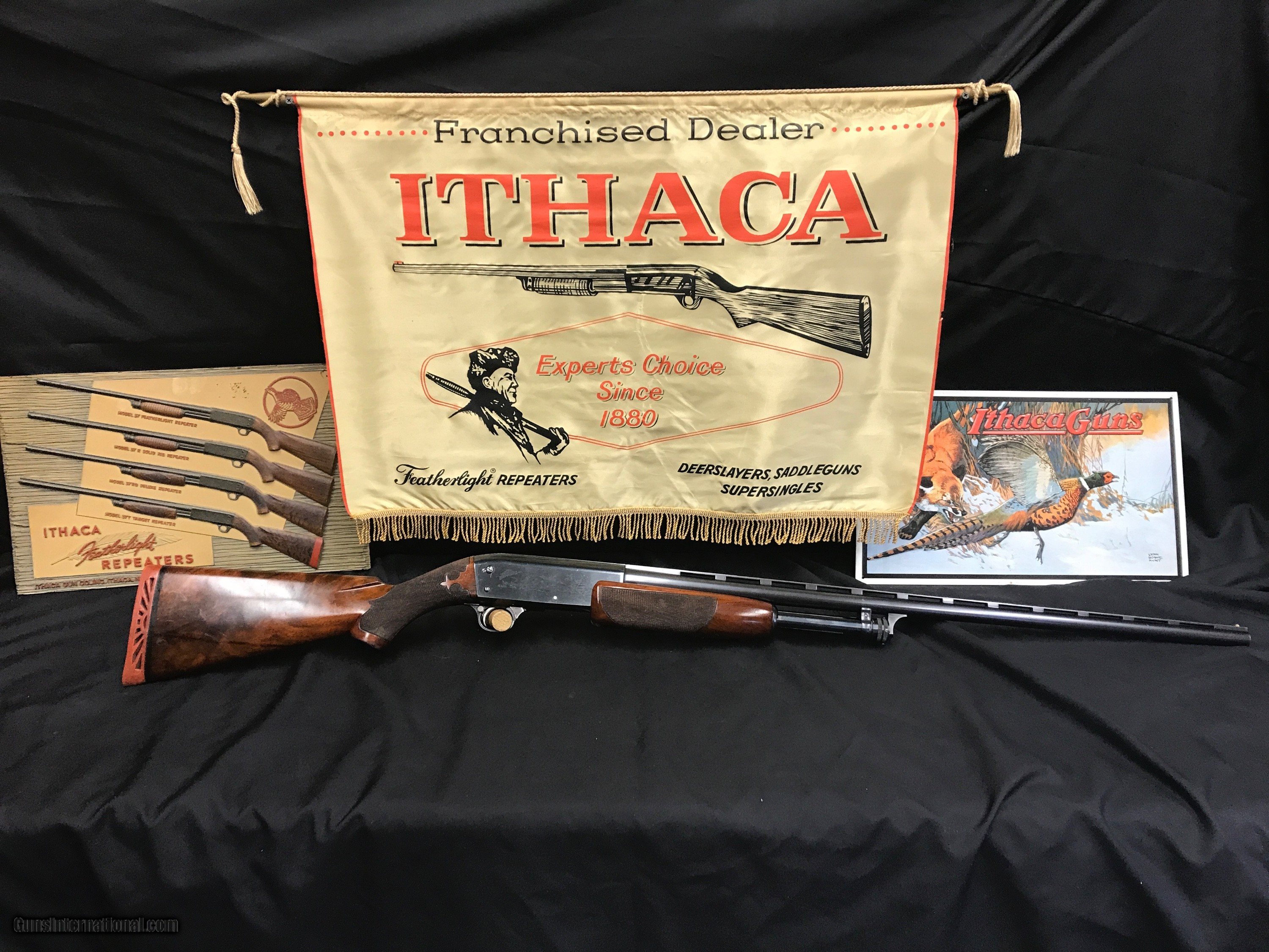 Description: We have a 1940 Ithaca16 Ga Pre War Trap , this is nearly an impossible gun to find , it features a 28'' Imp/cyl barrel with original ivory beads , the checkering is sharp, the wood has the original finish with no cracks or splits , bluing is the original Ithaca high gloss finish with no dents or rust . Again this gun is nearly impossible to find in this configuration and condition . Any questions please call or e-mail 607-227-4088 . Insured shipping 75.00$ to lower 48 , offers will be considerd . Thank You SOLD |