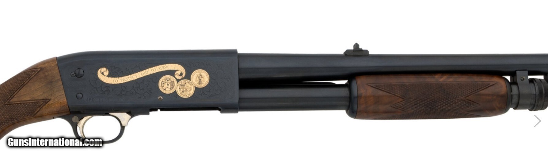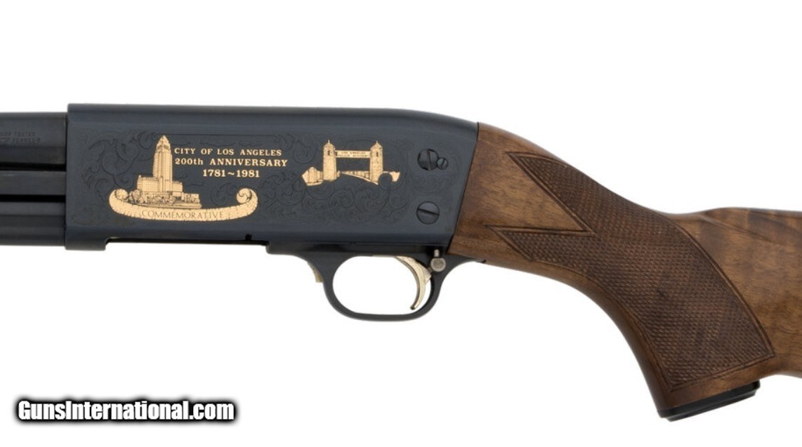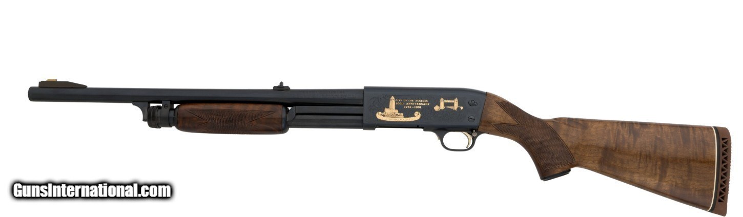 Cased and Engraved & Gold Inlaid 12 Gauge Ithaca Model 37 L.A.P.D. 200th Anniversary Commemorative Slide Action Shotgun with extra 18 1/2-inch barrel.