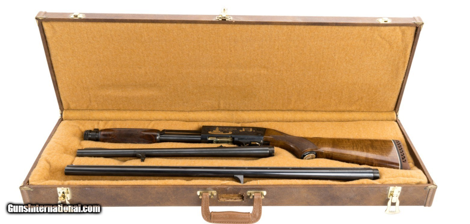 Description: Cased and Engraved Ithaca Model 37 L.A.P.D. 200th Anniversary Commemorative Slide Action Shotgun. Serial no. LAPD-1139 [receiver], 12 gauge, 28-inch barrel with ventilated rib and fixed front sight. Blued finish. Elaborately scroll engraved receiver with numerous scenes accented in gilt. Right side reads: TO PROTECT AND TO SERVE along with three LAPD related crests. Left side marked: CITY OF LOS ANGELES / 200TH ANNIVERSARY / 1781-1981 / COMMEMORATIVE. Checkered walnut pistolgrip stock and fore-end slide. Badge style grip cap reading: POLICE OFFICER / LOS ANGELES POLICE. Ventilated rubber recoil pad. Sold along with extra 18 1/2-inch barrel with fixed front and rear sights. Each barrel stamped L.A.P.D. COMMEMORATIVE. Contained in leather wrapped fitted carrying case. Top of case marked: LOS ANGELES POLICE DEPARTMENT / TO PROTECT AND TO SERVE. Condition: Excellent. Overall showing very light handling wear. Action crisp. Strong bores. Shotgun Gauge: 12 Gauge Manufacturer: Ithica Model: 37 Price: $3,500.00 Shipping: $100.00 Buy Now Pay with